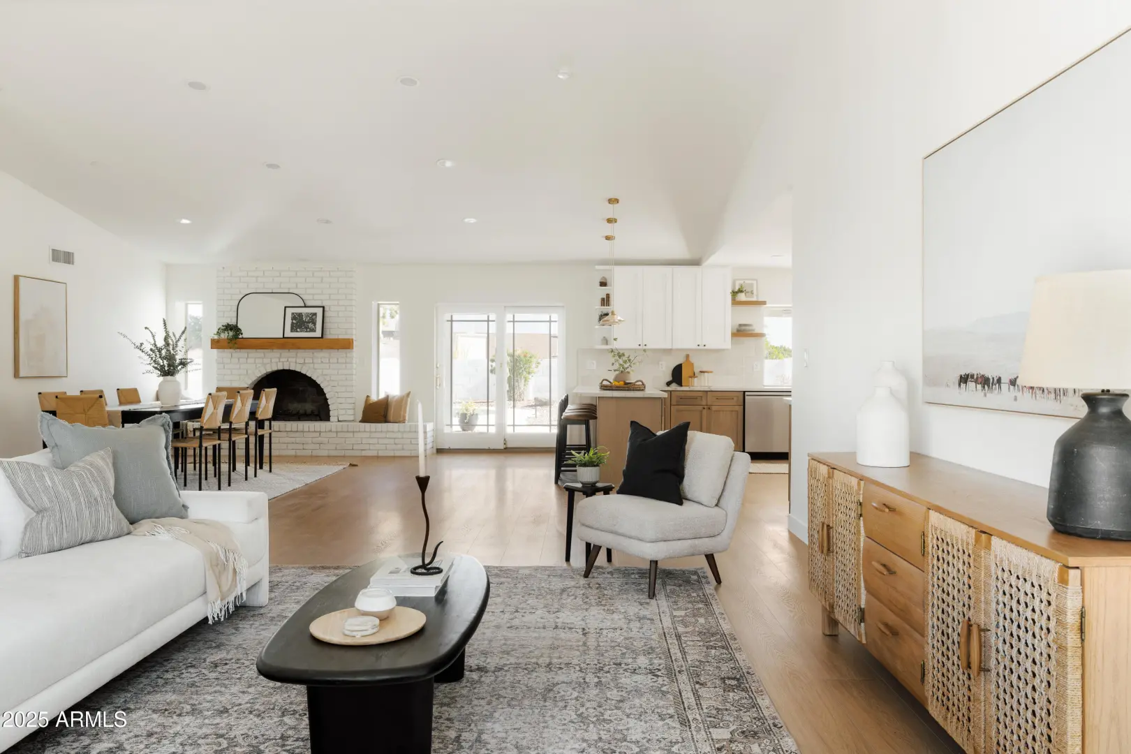 Welcome to Desert Vista, where panoramic mountain views meet desert living in a PRIME Phoenix location. This home is nestled just steps from the Phoenix mountain preserve and minutes away from highway access. This home has been refreshed and redesigned to create an open concept floorplan all while keeping thoughtful, warm touches throughout. Natural light fills this residence, creating a seamless flow between the living room, dining space, and kitchen of your dreams. This redesigned kitchen features all brand new stainless steel appliances, quartz taj countertops, two-toned custom cabinetry, a beverage station and a peninsula with enough seating for 5!