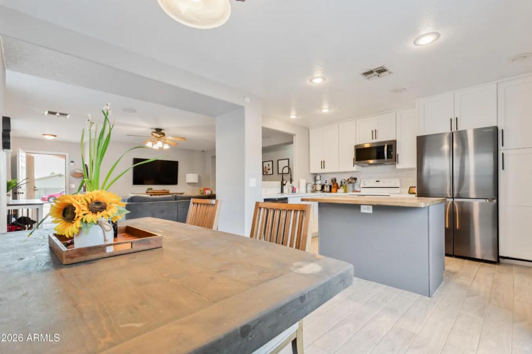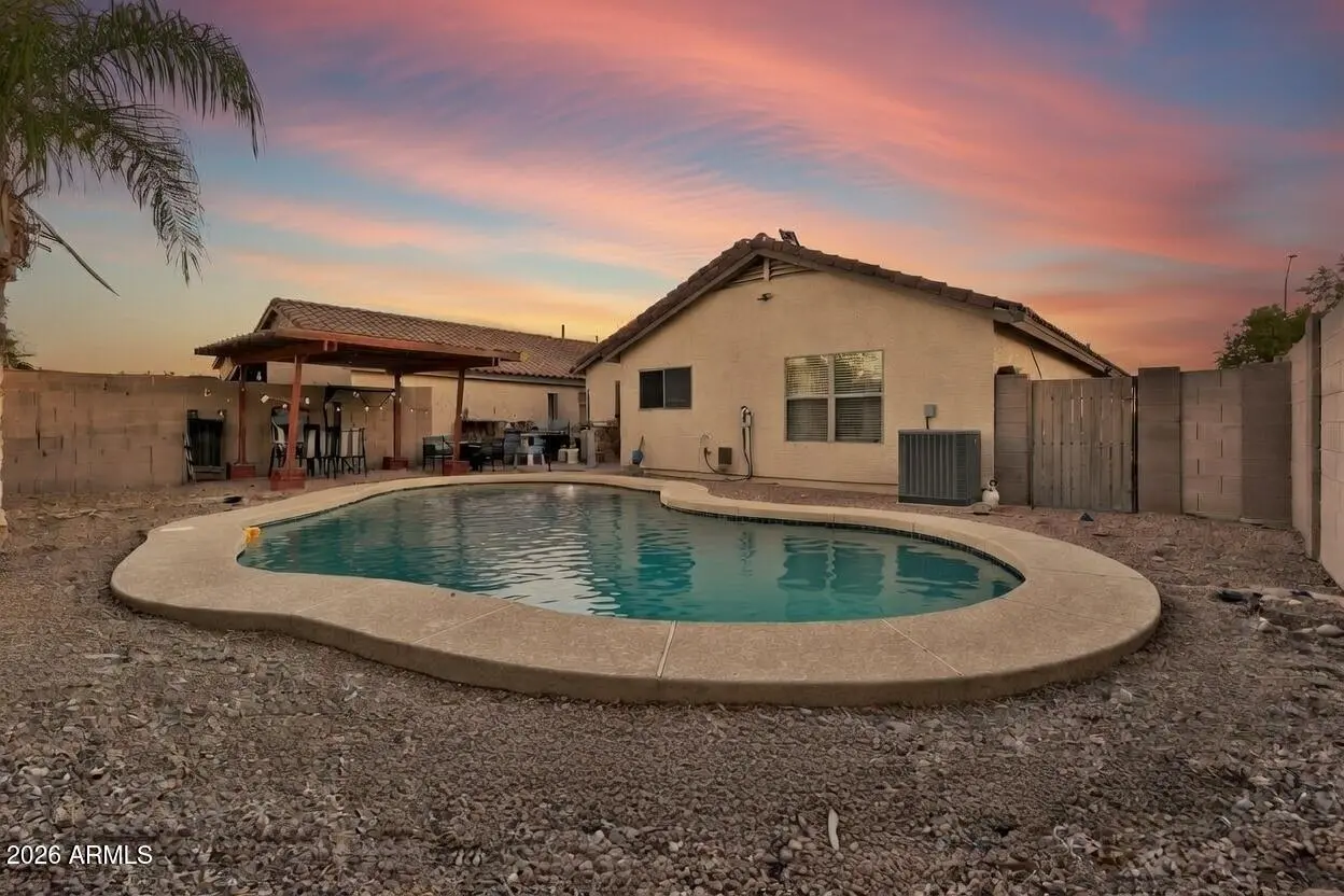 Welcome home to Sunland Ave! This lovely single family home has upgrades everywhere! Step inside to a bright, open, and effortlessly flowing floor plan with beautiful porcelain tile throughout. The kitchen showcases white quartz countertops, white shaker cabinets, custom backsplash, Samsung bespoke appliances, and a perfectly positioned butcher block wood plank island. The master bedroom is the STAR of the show, with gorgeous white and gray tiles flowing into a tastefully upgraded ensuite bathroom with an oversized walk-in closet loaded with smart organization. Out back, your private yard with RV Gate access is Arizona living at it's best - built-in BBQ, a shaded pergola, and a sparkling pool with new pool equipment. Owned solar panels, new HVAC keep energy costs down year round!