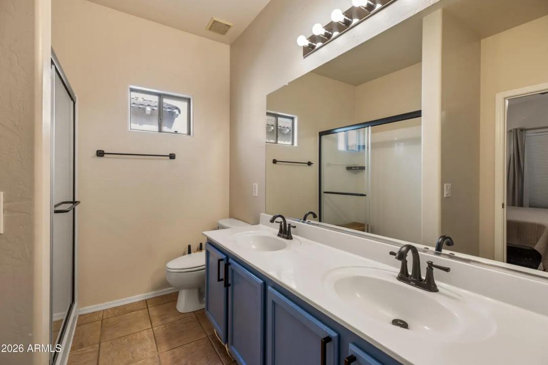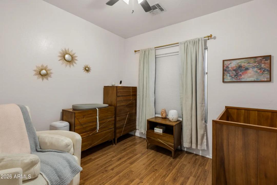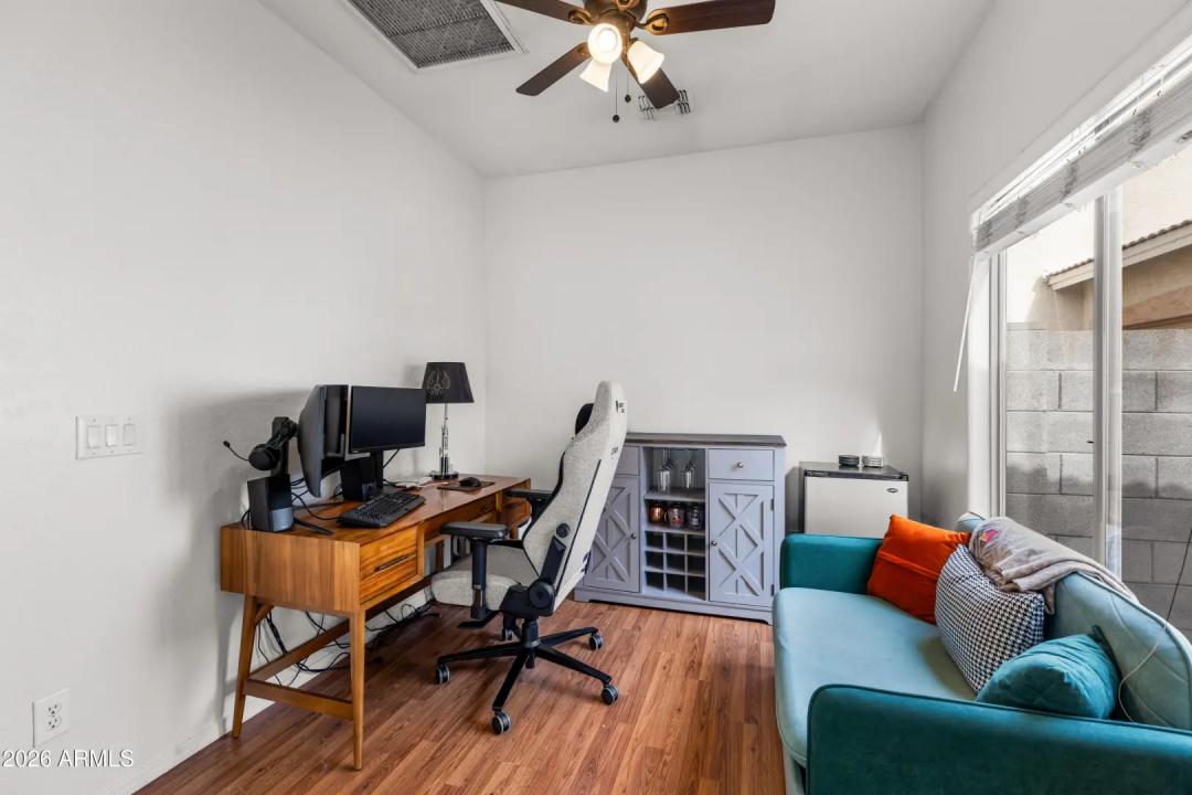 Welcome to this beautifully updated single level home in a desirable gated Glendale community. Offering 1,174 sq. ft. of thoughtfully designed living space, this 2 bedroom, 2 bath residence features dual ensuite bedrooms, each w/ walk-in closets, plus a versatile den ideal for a home office or flex space. The kitchen shines w/ brand-new 2025 granite countertops, stylish backsplash, new appliances, updated light fixtures and ceiling fans. Additional upgrades include a brand-new 2025 HVAC system w/ transferable warranty, interior paint completed in 2022, a new shower door in one primary bath, and fresh rock landscaping in the backyard for easy maintenance. Enjoy the convenience of a 2 car garage and quick access to Loop 101 and I-17, ASU West, hospitals, shopping, dining, and entertainment