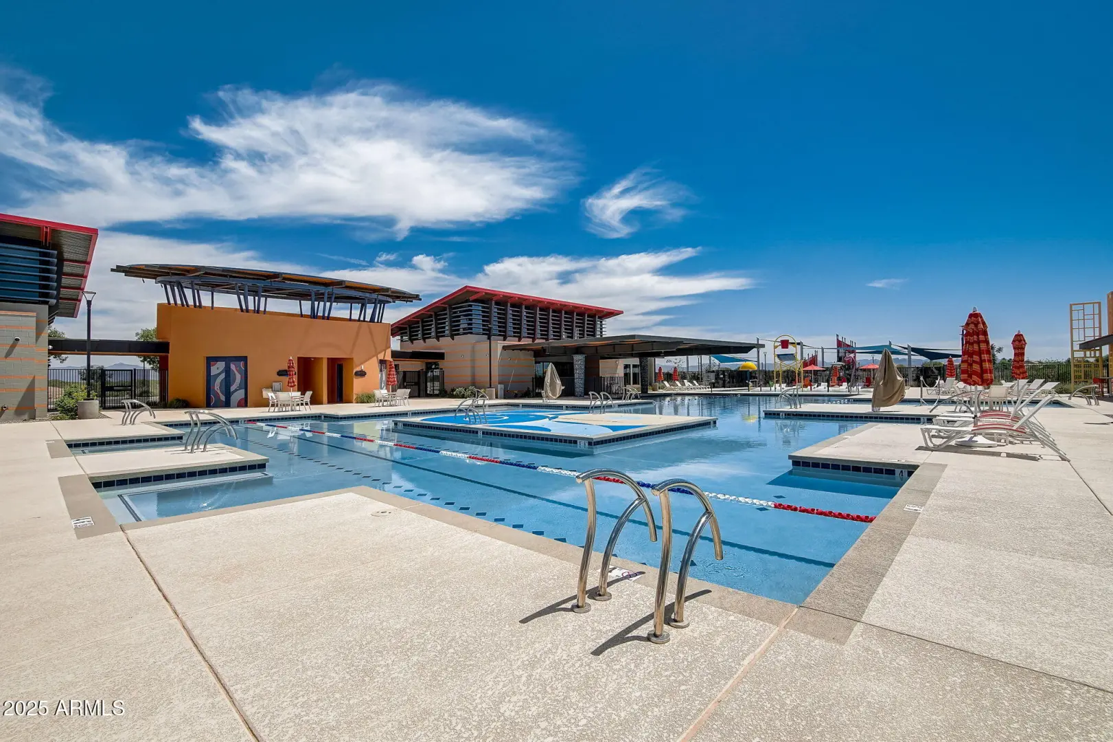 Beautiful NEW Home in in the highly desirable San Tan Valley area, close to major cities. Quick Move In . PRIME NORTH/SOUTH Exposure lot bordering common area, overlooking scenic desert views. Featuring countless upgrades such as 9' ceilings, Shaw Ceramic Tile Floors, Granite countertops in the kitchen. Whirlpool Stainless steel appliances and white cabinetry. Energy-efficient features throughout, Wi-Fi & programmable thermostat, and electric range. Spacious walk-in closet in owner's suite! Front yard landscaping with irrigation included and generous covered patio in the backyard. Minutes from hiking trails and scenic mountain views! Fantastic amenities such as a kids pool, splash pad, fitness loop, clubhouse, fitness studio, industrial kitchen, outdoor patio with fire pits and