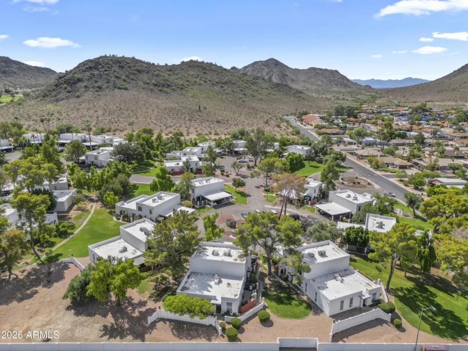 Fantastic opportunity to own a fully updated 2-bedroom residence in the desirable Gold Key Racquet Club community. This contemporary-style home features a mix of wood and tile flooring throughout. The updated kitchen showcases granite countertops, tile backsplash, and two-tone cabinetry, with a separate storage and laundry area. Both generously sized bedrooms are located upstairs, providing privacy and separation from the main living areas. Enjoy a spacious, fenced yard—ideal for outdoor living, pets, or entertaining. The community offers lush greenbelts, well-maintained common areas, mountain views, and immediate access to nearby hiking trails. Conveniently located minutes from I-17 and SR-51, and under 30 minutes to Sky Harbor Airport, Desert Ridge, and Downtown Phoenix.