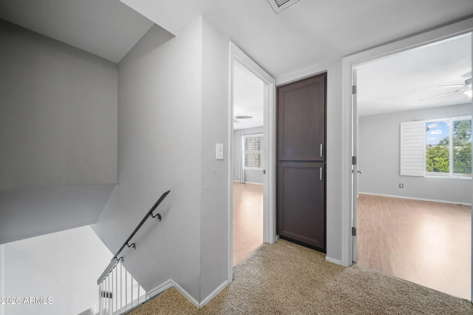 Fantastic opportunity to own a fully updated 2-bedroom residence in the desirable Gold Key Racquet Club community. This contemporary-style home features a mix of wood and tile flooring throughout. The updated kitchen showcases granite countertops, tile backsplash, and two-tone cabinetry, with a separate storage and laundry area. Both generously sized bedrooms are located upstairs, providing privacy and separation from the main living areas. Enjoy a spacious, fenced yard—ideal for outdoor living, pets, or entertaining. The community offers lush greenbelts, well-maintained common areas, mountain views, and immediate access to nearby hiking trails. Conveniently located minutes from I-17 and SR-51, and under 30 minutes to Sky Harbor Airport, Desert Ridge, and Downtown Phoenix.