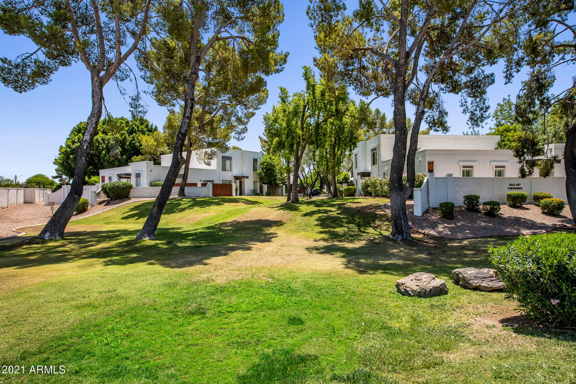 Located near Phoenix North Mountain Preserve, this 2 bedroom gem is tucked into the beautiful Gold Key community with hiking and biking trails near by. Remodeled in 2019 you will enjoy the porcelain tile flooring, French doors, 4'' base boards, and designer two tone interior paint. Outside admire the mature trees in the community and enjoy your spacious back patio with artificial turf.