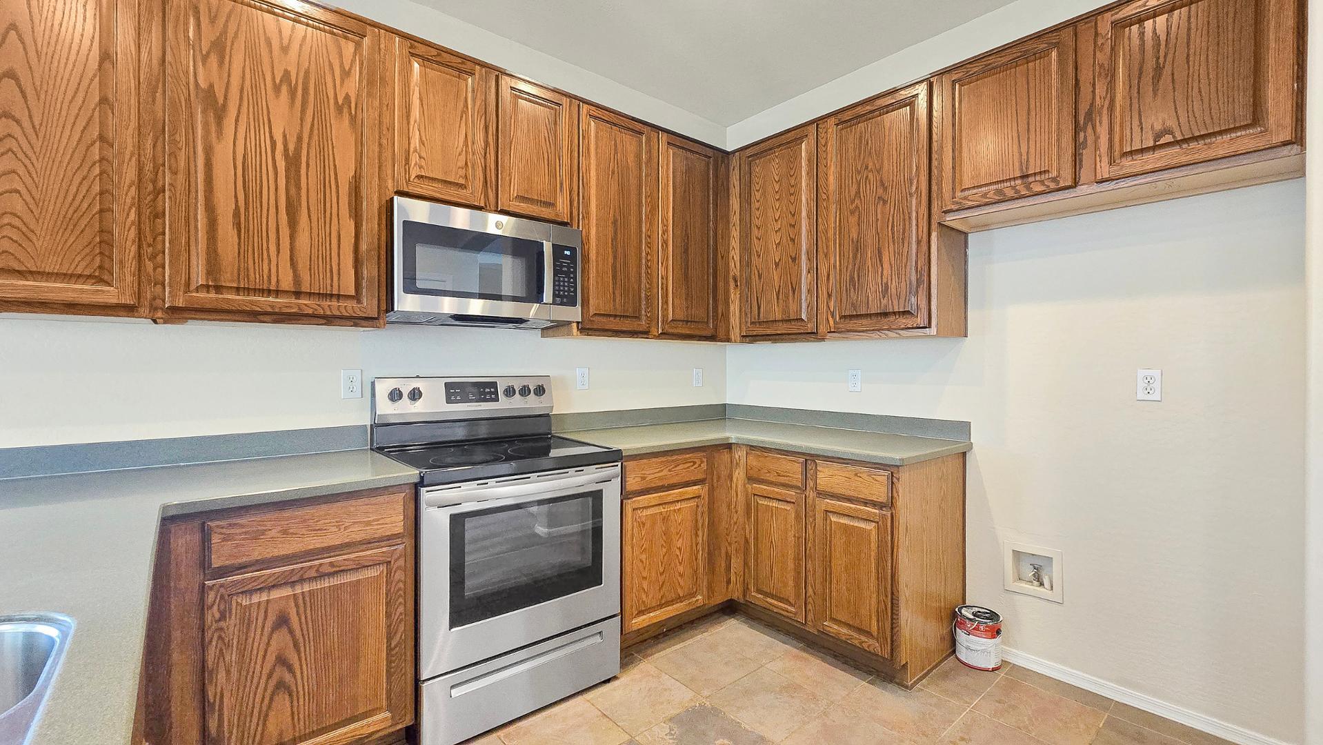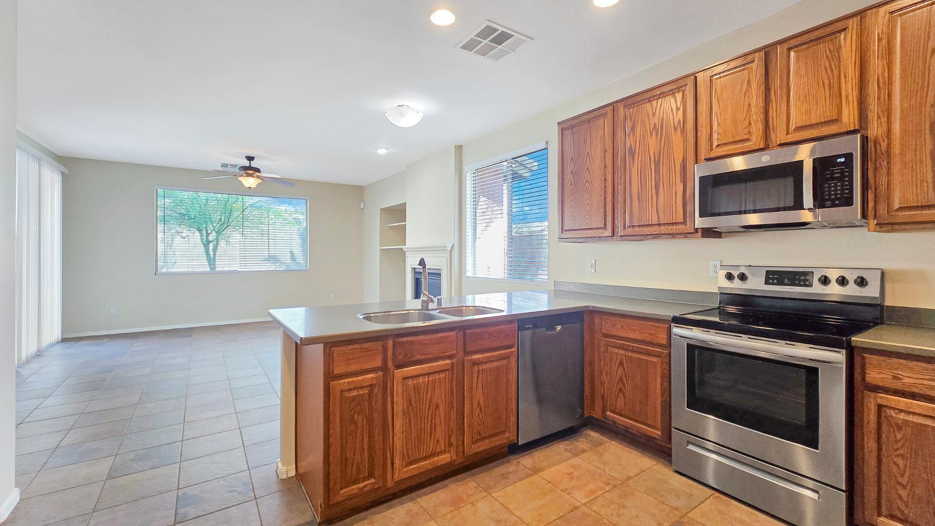This home has all new carpet and lots of sq ft for the money. Enjoy fresh paint throughout and tile in the living and dining areas. Priced right! The eat-in kitchen features brand new stainless steel appliances. Master suite amenities include a walk-in closet and a separate tub and shower. Covered patio out back extends to a fire pitenjoy late nights roasting marshmallows. Get access to all the amazing amenities in Estrella Mountain ranch for just a one time $100 fee. 72 acres of lakes, parks, paths and trails, heated pools, spas, fitness centers, residents clubs, a marketplace and medical commons! Troon managed gold course is also in the community.