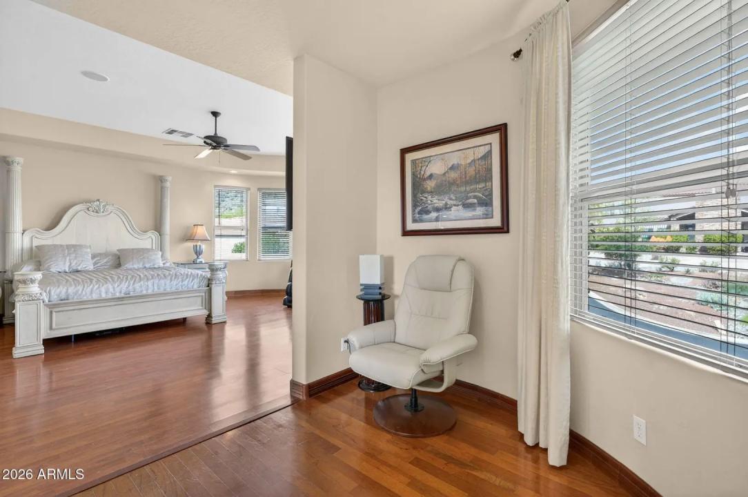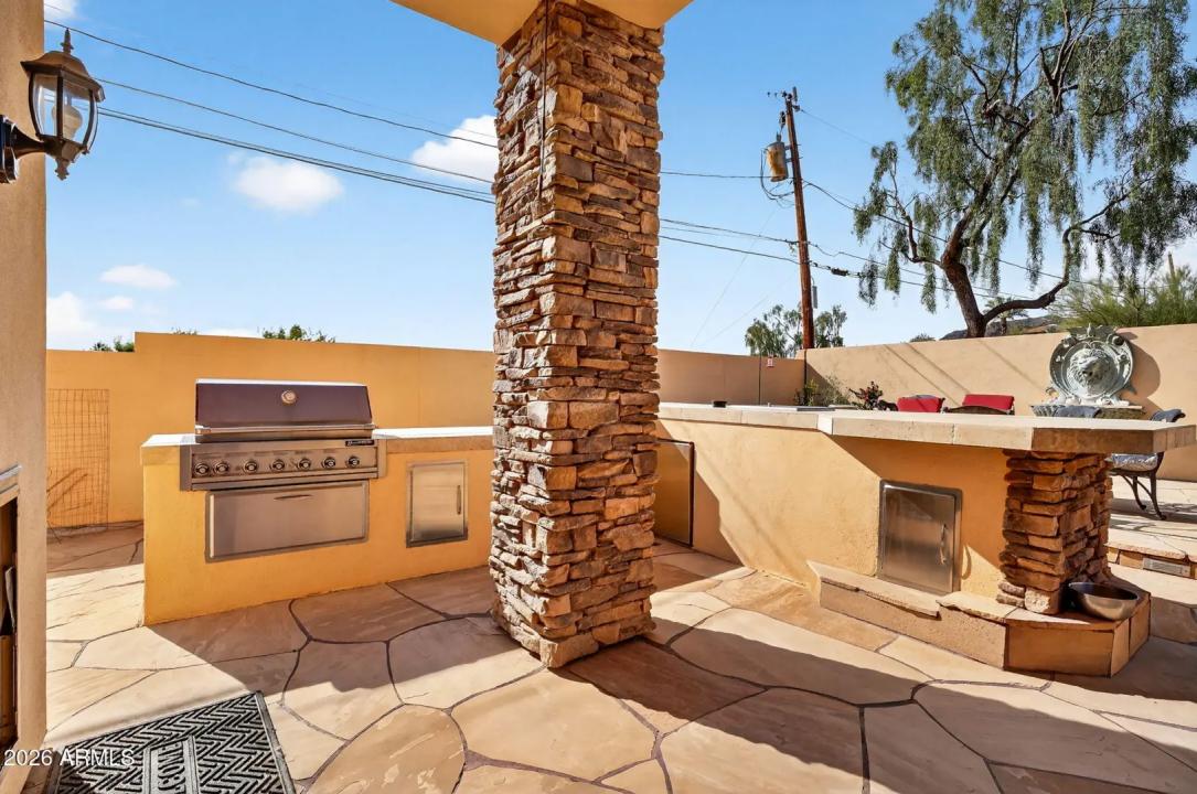 One-of-a-kind custom home nestled within the private gated enclave of Legends at Pointe Tapatio Cliffs, backing to the Phoenix Mountain Preserve. Spanning nearly 3,900 sq ft, that exudes timeless elegance & exceptional pride of ownership. The custom front door framed by Cantera stone welcomes you into a grand foyer leading to a formal dining room or optional library featuring built-in cabinetry and fireplace. Rich architectural details include polished travertine floors with stone inlays, spacious lay out, plantation shutters and beautiful wood work in all the right places. Click on the blue ''More...'' button for more description.