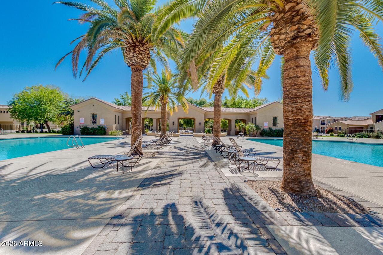 **MAX OF 2 CARS** 4-Bed/3.5-Bath townhouse with two masters - Secondary bdrms & laundry upstairs. Washer, Dryer & Refrigerator included with lease. Easy care tile flooring in main living spaces, carpet in all bedrooms. Private courtyard/yard and attached 2-car garage. Gated community features large private clubhouse with full kitchen, dining/sitting spaces, private theater & gym. 2 pools & jacuzzis outside with 4 gas grills! Easy access to 101, 202 & US-60 frwys. Minutes to ASU, shopping, dining & entertainment. Max of 2 cars per HOA parking policy, max of 2 pets (60 lbs combined - NO CATS).