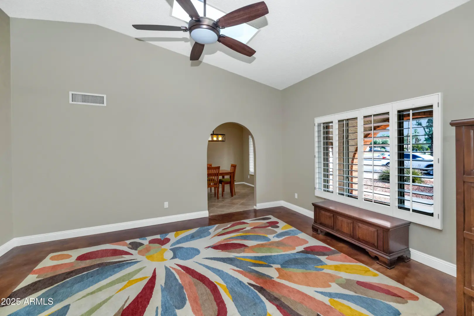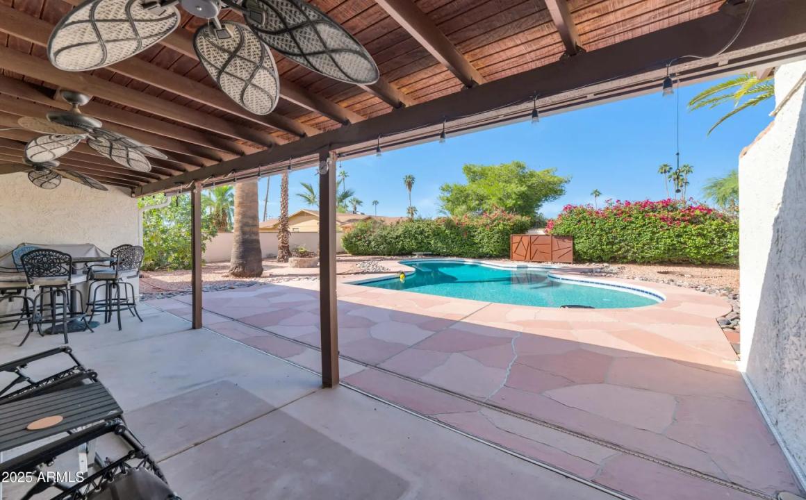 Welcome to this 4-bedroom, 2-bath home that has been lovingly cared for and thoughtfully updated over the years. The home offers a comfortable split floor plan with both formal living and dining areas plus a separate family room that opens to the backyard. The kitchen features plenty of cabinet space, a large pantry, and an inviting eat-in area that's perfect for casual meals or morning coffee. The primary suite is spacious and private, with direct access to the covered patio, a walk-in closet, and a spacious bathroom. Three additional bedrooms are located on the opposite side of the home, ideal for family or guests. Step outside to a backyard made for Arizona living—complete with a sparkling pool, mature landscaping, a garden area, and plenty of room