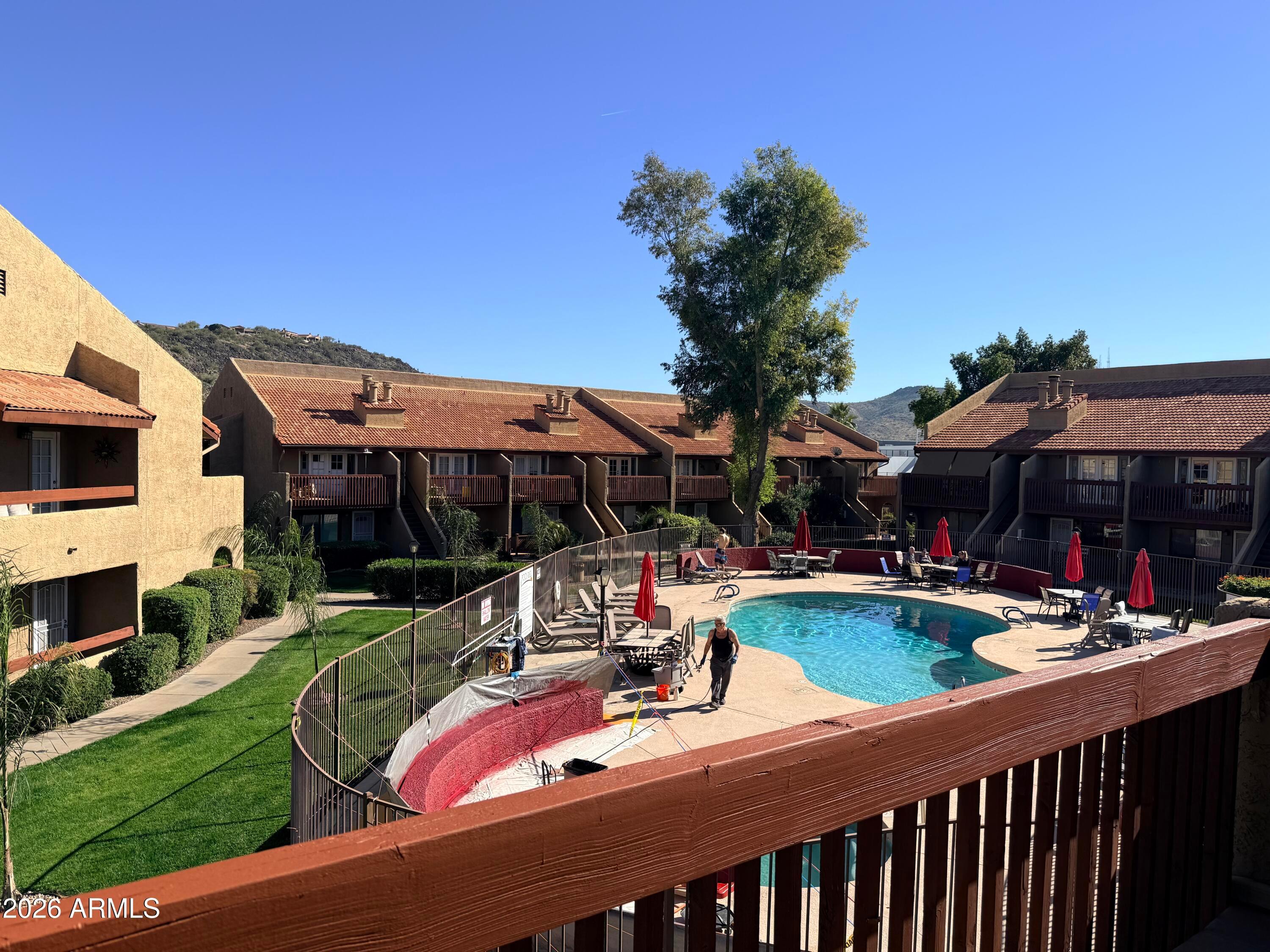 Upgraded 2-bedroom unit stands out from the rest. Travertine tile and Luxury Vinyl planks in living and bedrooms, matching travertine bath surrounds and countertops that give the home a clean, high-end feel. Custom maple cabinets and stainless steel appliances complete the modern looking kitchen. What really sets this unit apart: two private balconies???a rare find. The main balcony overlooks the community pool and spa and offers direct, unobstructed views of Moon Mountain. Interior is bright, modern, and thoughtfully updated. The community is well-maintained and packed with amenities, including a heated pool and spa, multiple barbecue areas, a clubhouse with fitness center, and a game room with pool tables. This location is hard to beat???just minutes from the Hwy I17 and Hwy 101.