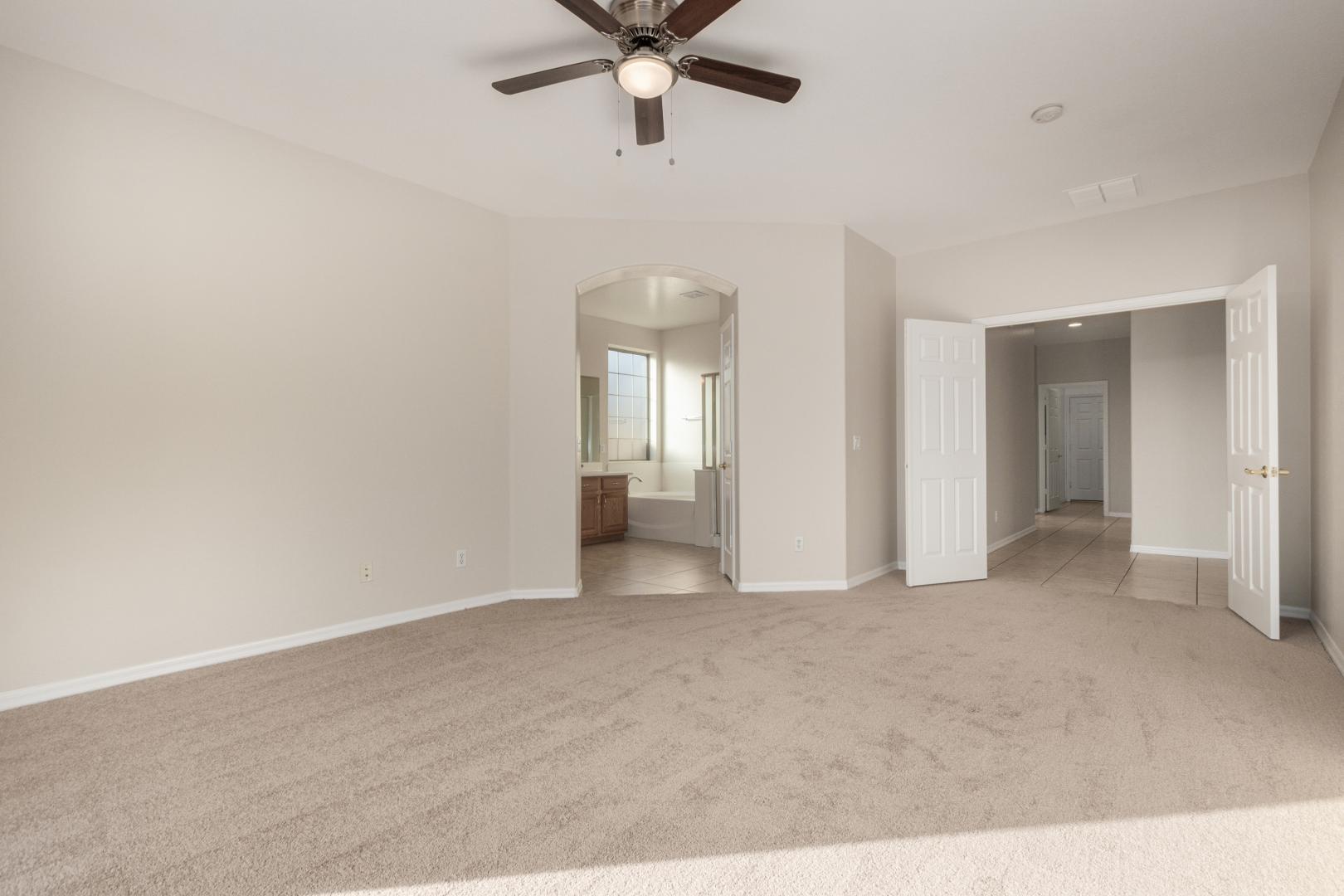 Amazing location in the heart of Palm Valley Golf Community! NEW 2 tone paint, NEW carpet, NEW appliances & NEW ceiling fans! 3 bedrooms plus a den that can easily be converted to a bedroom. Spacious owner's suite features a dual sink vanity, separate shower and garden tub and walk-in closet. 3 car garage. Premium culdesac lot and much more! ALSO FOR SALE at $450,000. LEASE TO OWN OPTION.