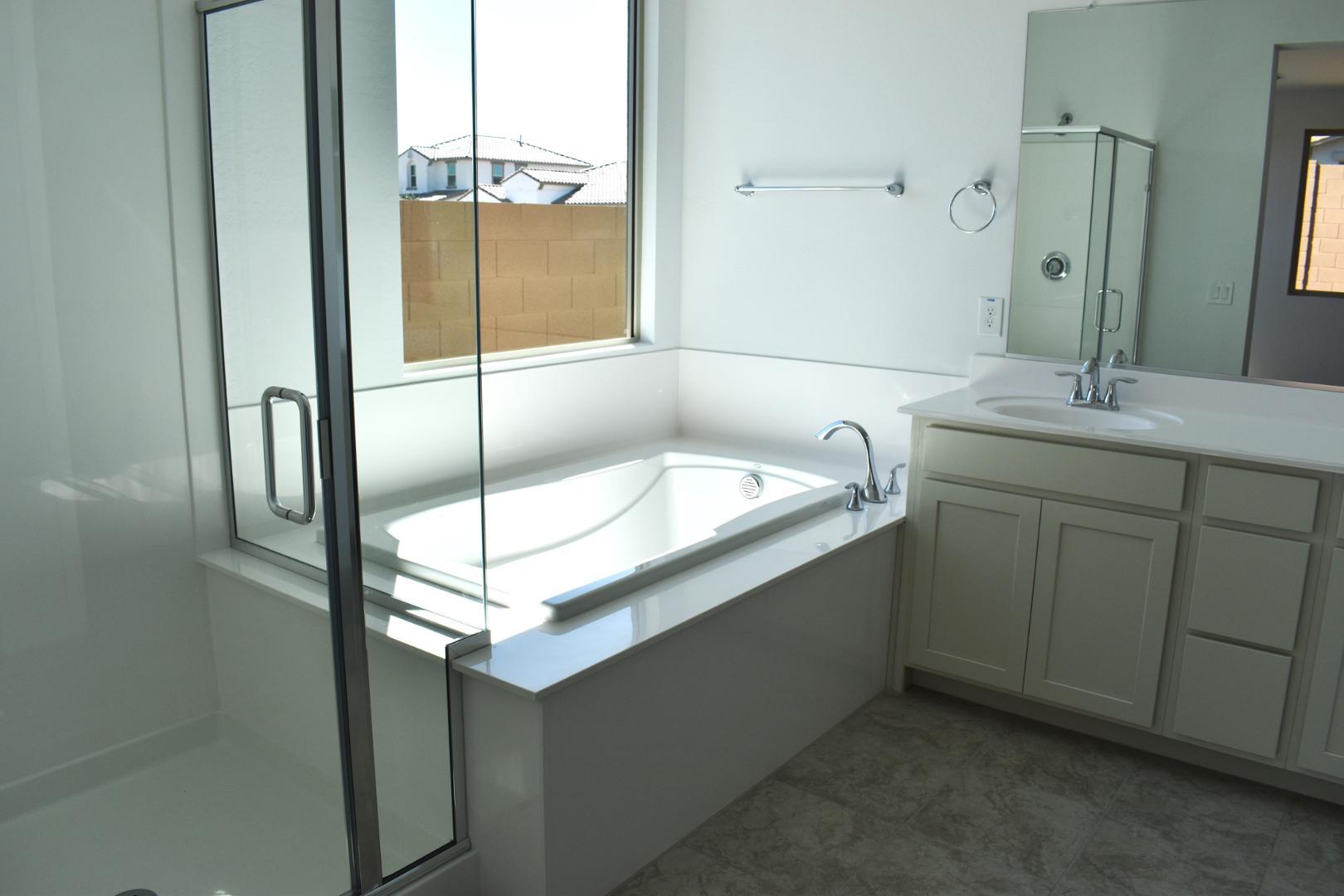 4 BEDROOM, 3 BATH, NEW BUILT NEVER LIVED IN. featured include upgraded kitchen cabinets with soft closing doors & drawers, dual pane windows, huge master suite with separate tub and walk-in shower. huge closet, and double vanity, upgraded interior doors, optional garage side door to backyard, covered patio, landscaped backyard. gas tankless hot water heater. Close to green belts, new stores, schools and community centers, mountain views and so much more