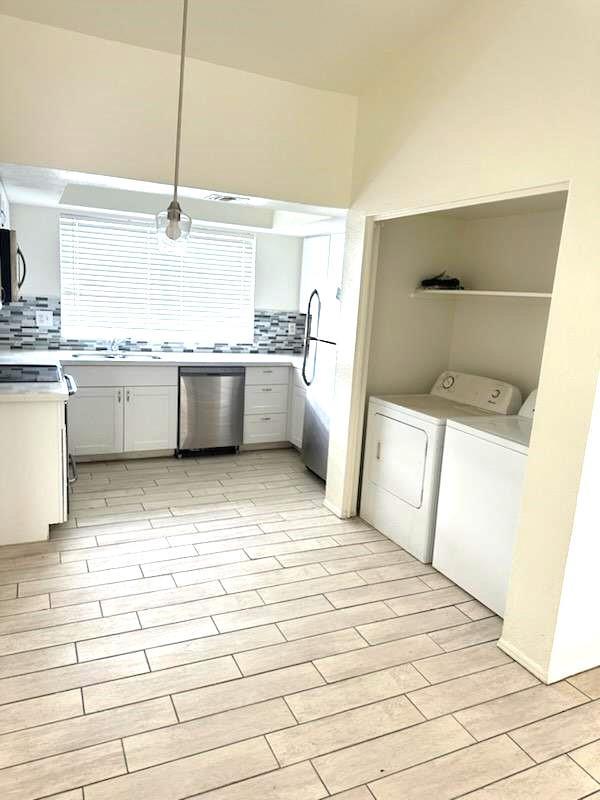 Check out this 2 bed 2 bath apartment. Remodeled kitchen with White Shaker Cabinets, designer backsplash and all SS appliances. Fireplace and washer/dryer in unit. All Tile. We'll kept community, unit located near the pool. Rent $1575 + 39.50 a month for Resident benefit Package. One time $99 admin fee also due at move in.