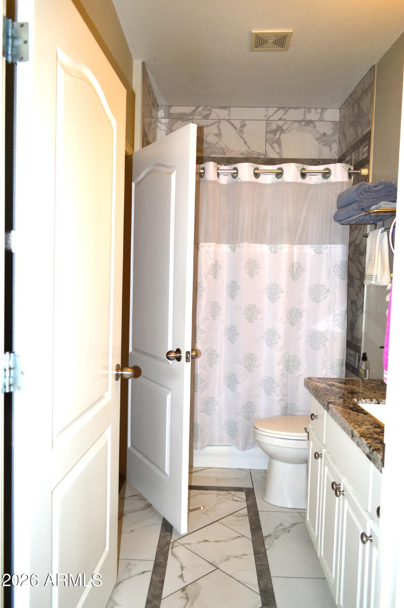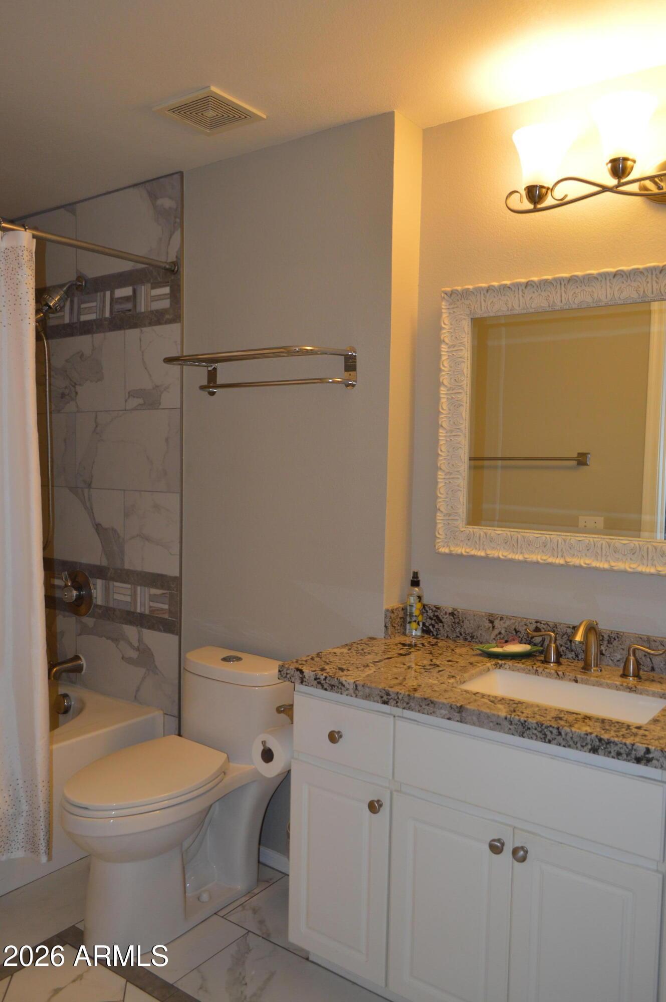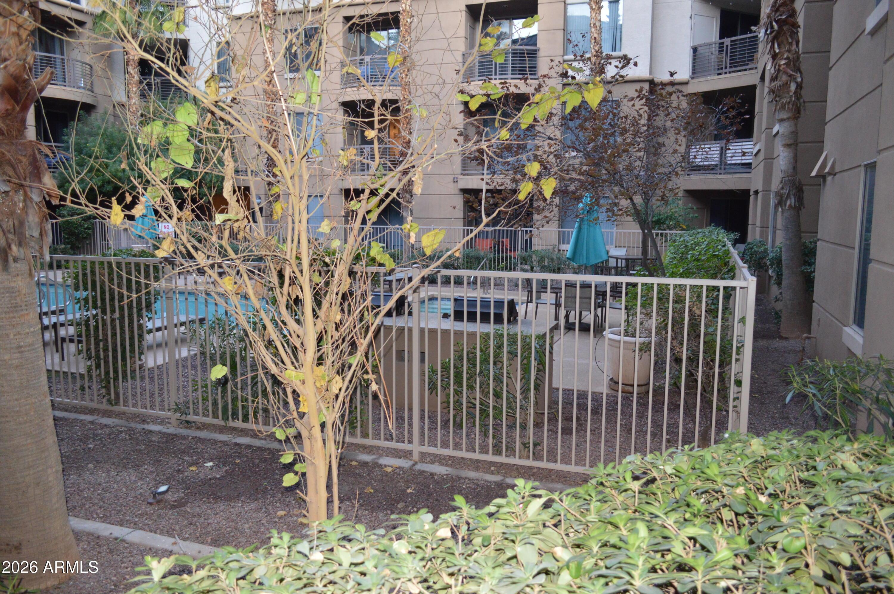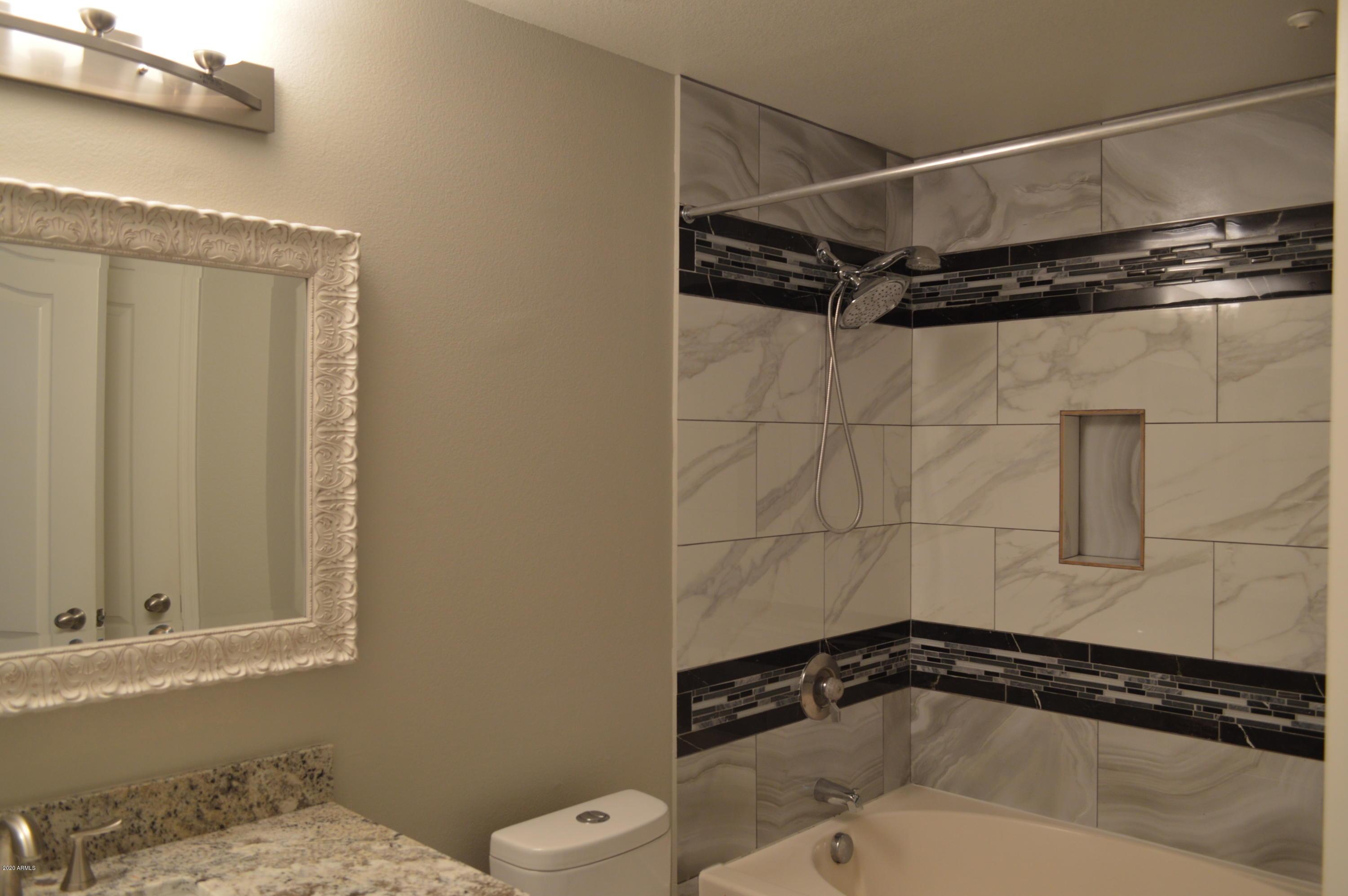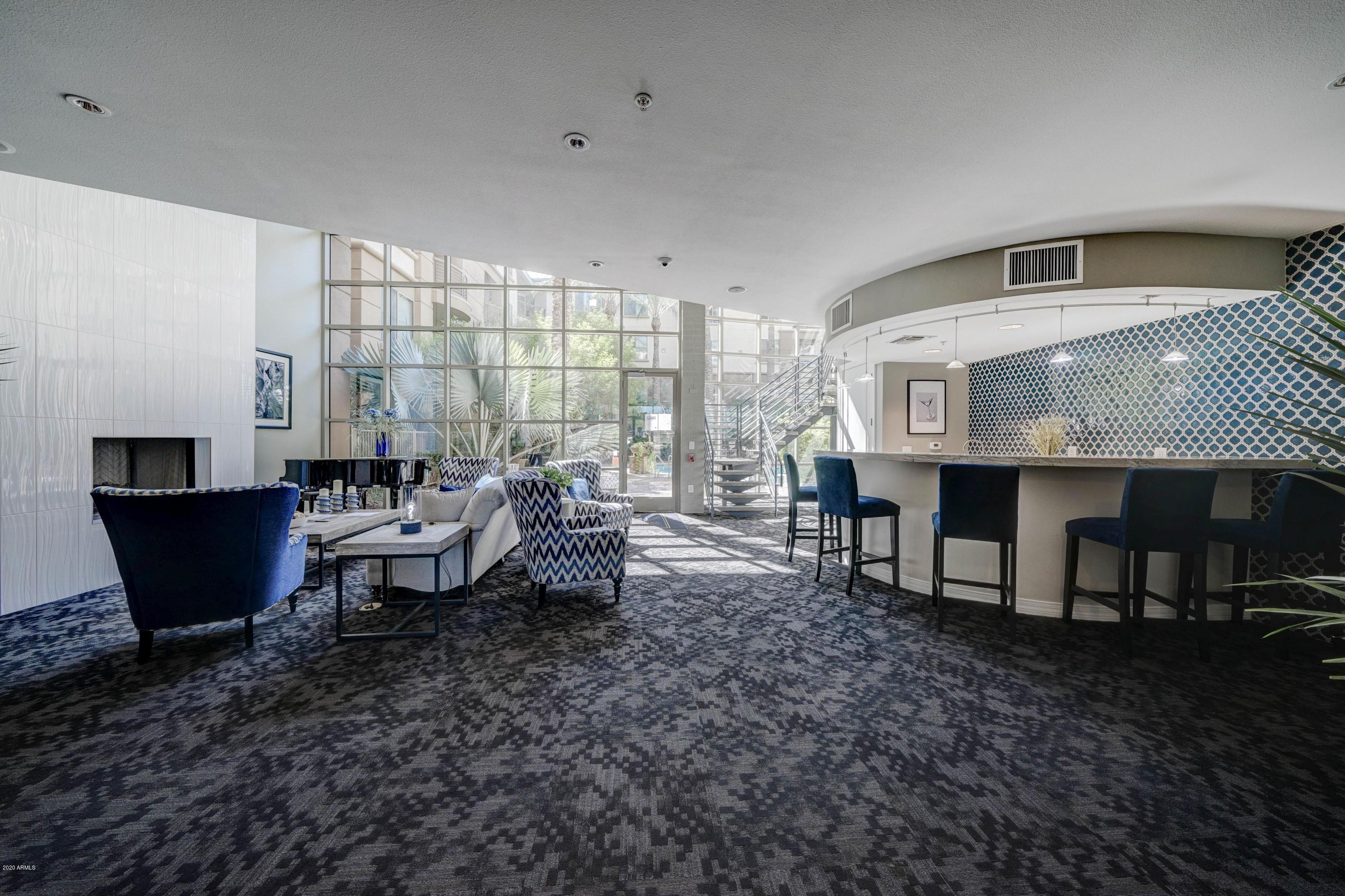 Upgraded, split bedroom floor plan within gated community offering resort style living. Each bedroom has an attached full bath and walk-in closet. Fantastic amenities include: 3 pools with one heated in the wintertime, 24 hr bi-level fitness center, on-site security, heated spa, media lounge, conference room, business center and more. This beautiful condo has Granite countertops with under mount sinks, custom tiled flooring throughout, 9ft ceilings, contemporary white cabinets w/glass doors. Water, sewer, trash, gas and one assigned parking on same level included in rent. Open parking is available on top of gated garage. Just minutes to Sky Arbor, Biltmore Fashion Park, Business District & Downtown Phoenix.