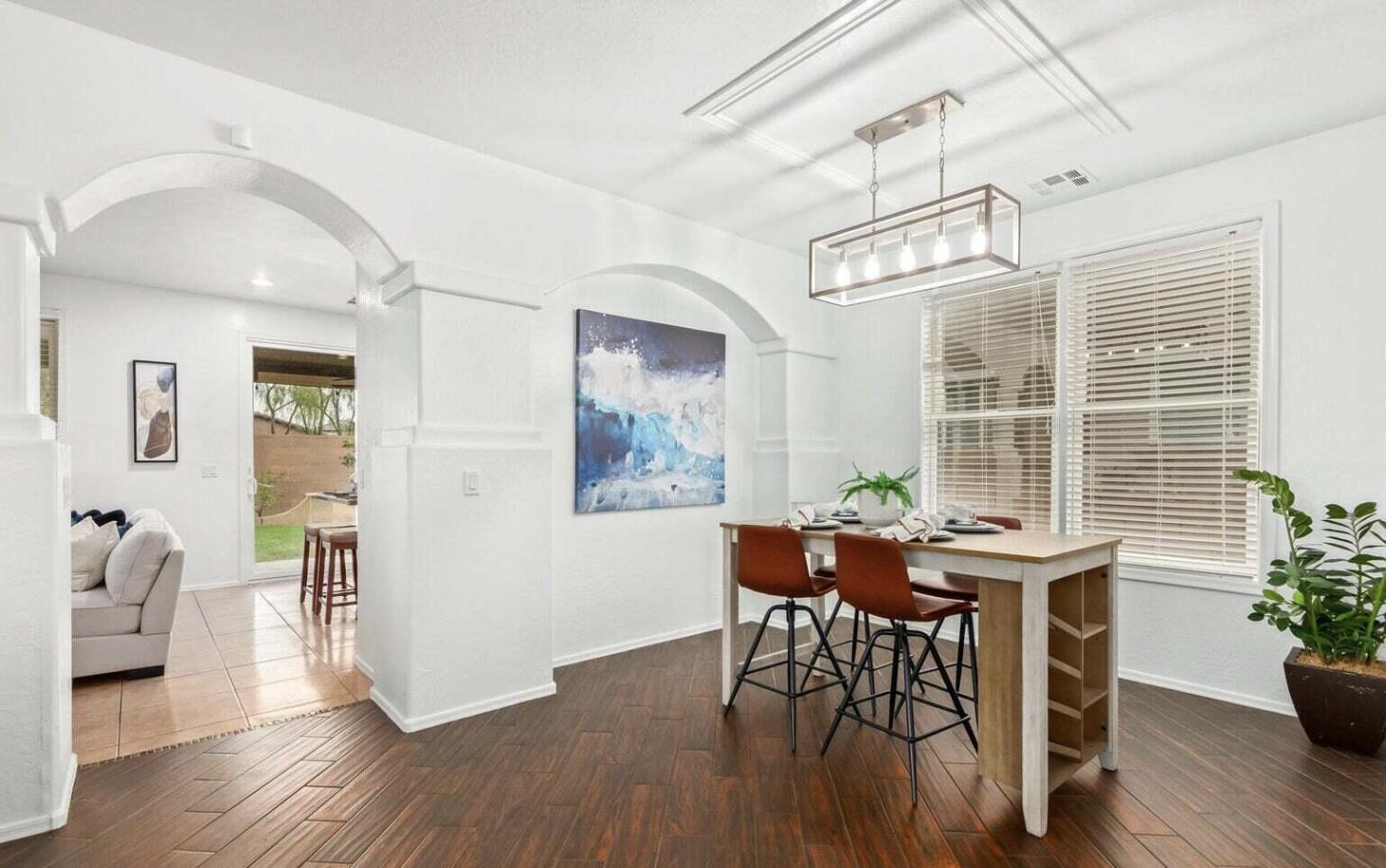 Welcome home to this spacious two-story in Surprise Farms! With 4 bedrooms, 2.5 baths, and a bonus den, theres room for everyone. Youll love the wood flooring, bright living spaces, and flexible layout. Step outside to a large backyardperfect for entertaining, pets, or simply enjoying Arizona evenings. Just minutes from great shopping and dining, this home offers both convenience and charm!