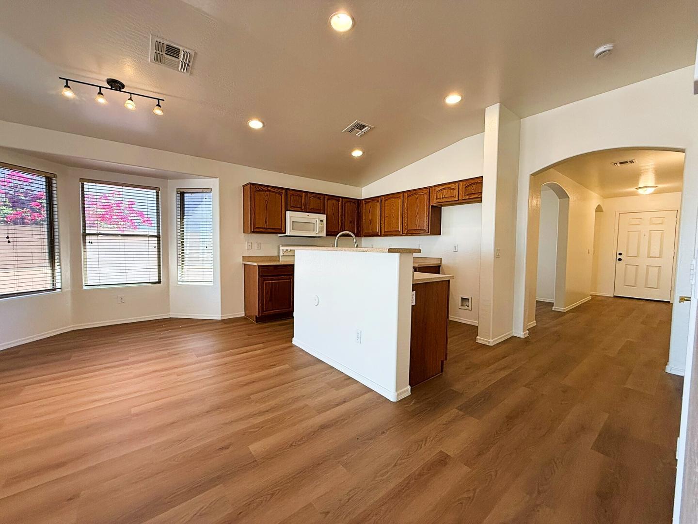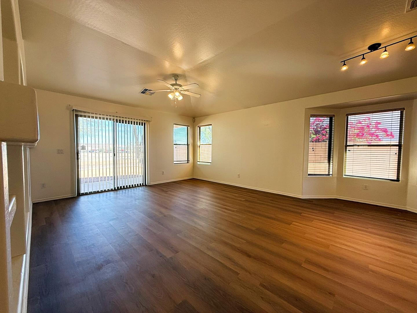 Welcome to this charming 3-bedroom, 2-bath home located in the highly desirable Centerra community in Goodyear! Featuring approximately 1,672 sq ft of comfortable living space, this single-story home offers an open layout with an eat-in kitchen, dedicated living area, and versatile office/den spaceperfect for working from home or extra living flexibility. Enjoy a low-maintenance desert front yard and a backyard with both desert and grass areas, plus a covered patio ideal for relaxing or entertaining. Conveniently located near parks, schools, shopping, and quick access to the I-10, this home offers the perfect blend of comfort and convenience. Dont miss out on this great opportunity!