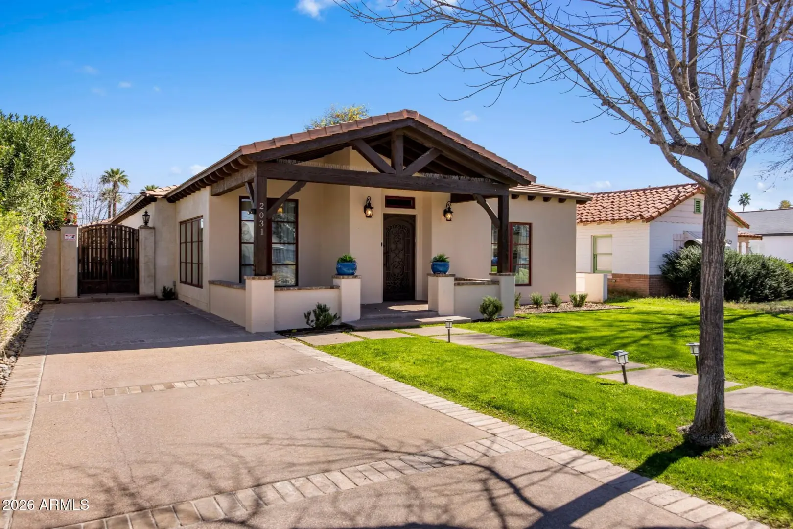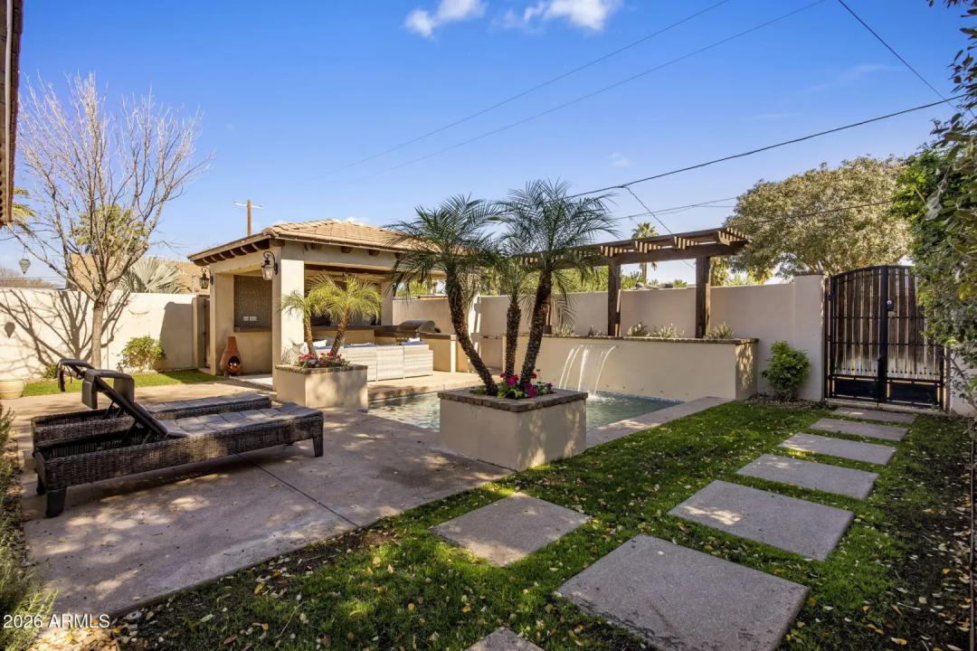 Custom-built by a local builder as his personal residence, this home blends modern 21st-century upgrades with the tree-lined charm of the Fairview Place Historic District. The single-level split floor plan offers 3 bedrooms and 3 bathrooms, with a kitchen featuring a large island that opens to generous living spaces. Wide sliding glass doors off the dining area fully retract into the walls for seamless indoor-outdoor living. The primary suite includes a spacious bathroom, dual sinks, and an expansive walk-in closet. Outside, enjoy multiple entertaining spaces including a ramada with mounted TV, built-in propane grill, sink, misting system, and inviting pool with waterfall. Located in Midtown Phoenix, just minutes from Encanto Park, Roosevelt Row, light rail, hospitals, and freeway access.