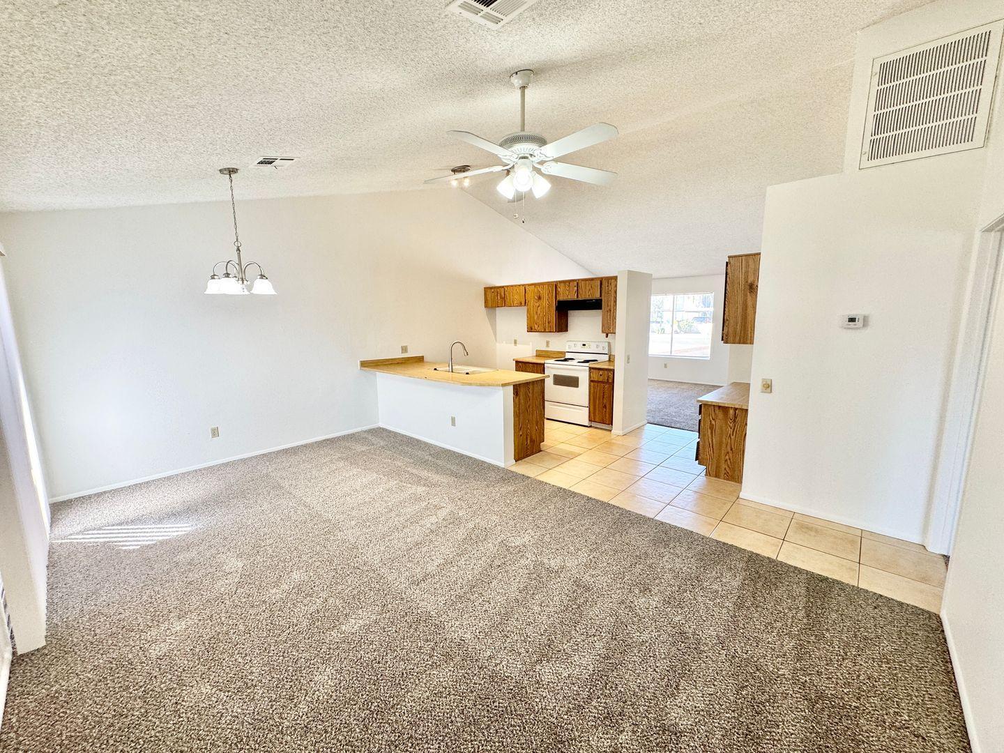 Discover this refreshed an clean 2-bedroom, 2-bath home in Phoenix, AZ, featuring fresh interior and exterior paint and new carpet throughout. The open layout is enhanced by vaulted ceilings and a covered patio for outdoor enjoyment. Practical conveniences include a one-car garage, low-maintenance landscaping, and the advantage of NO HOA. Thoughtfully updated and move-in ready, this property offers comfortable, easy-care living.