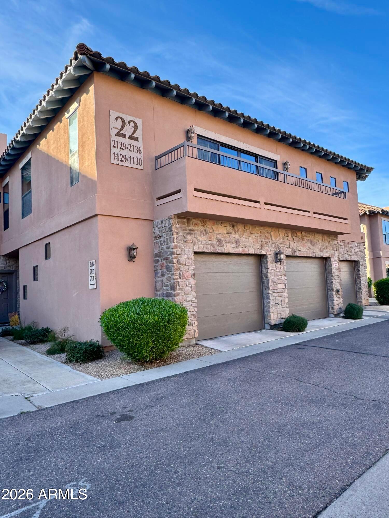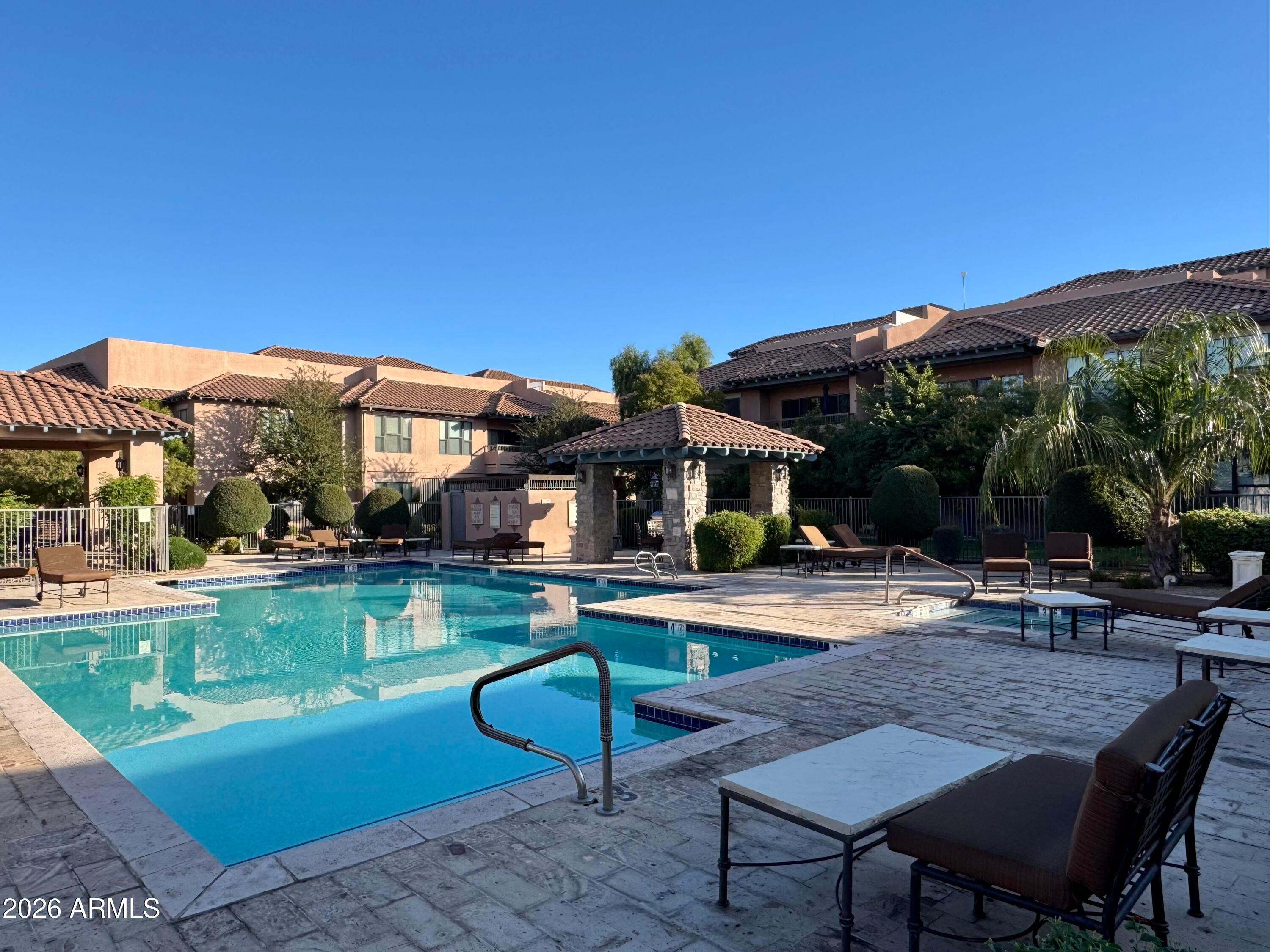 Situated in the gated community of La Verne in Desert Ridge, this 2-bedroom, 2-bath condo offers an open, light-filled floor plan. The kitchen features granite countertops and stainless-steel appliances, and the unit includes a washer and dryer as well as an attached 2-car garage. Enjoy plenty of natural light throughout the home. The community offers two pools and spas and is conveniently close to Desert Ridge, Loop 101 & Hwy 51, Mayo Clinic, and more.