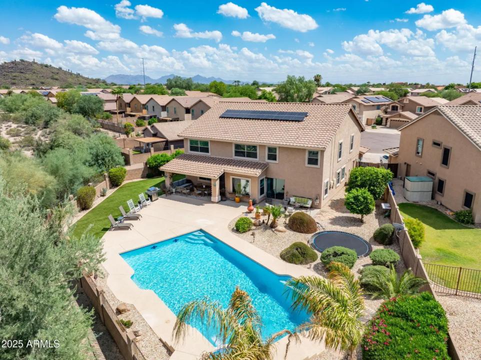 Offering expansive mountain views and privacy, this is one of the best lots in the community! This beautifully maintained, original-owner home features a resort-style backyard with a sparkling pool and spa, perfect for relaxation or entertaining. The spacious floor plan includes a downstairs primary suite, while upstairs you'll find four large bedrooms with walk-in closets, with a possible upstairs primary ensuite, 2 full baths, plus a versatile loft. The heart of the home is the expansive kitchen, complete with granite countertops, stainless steel appliances, and abundant storage throughout. Additional highlights include a 3-car garage, north / south facing cul-da-sac lot, and tons of storage.