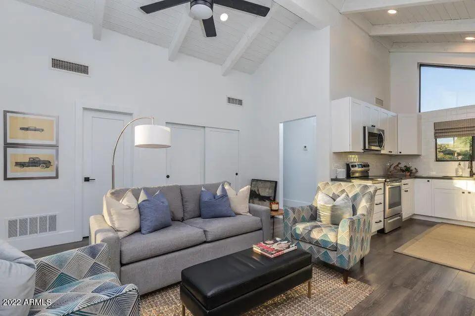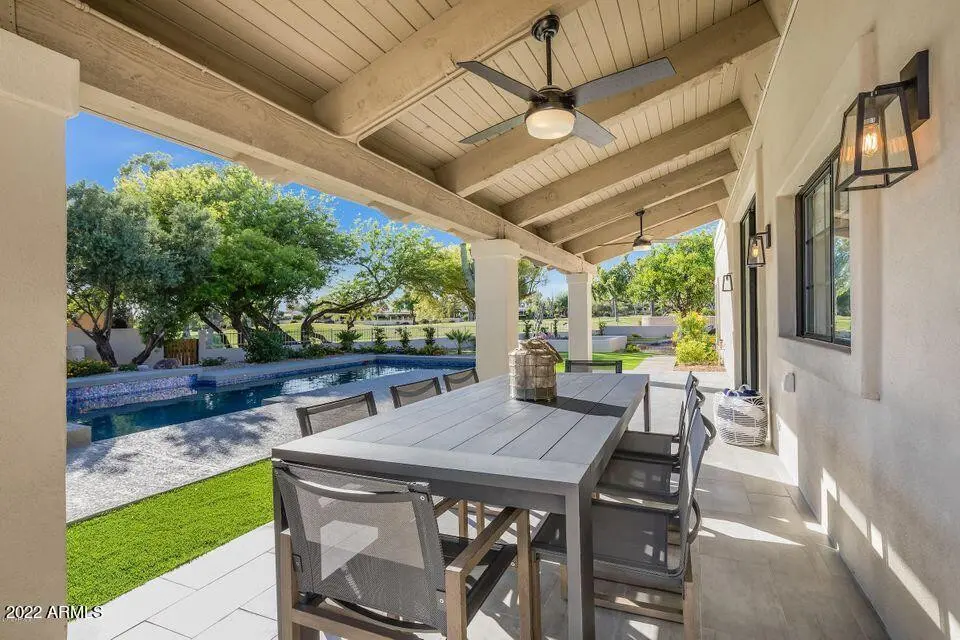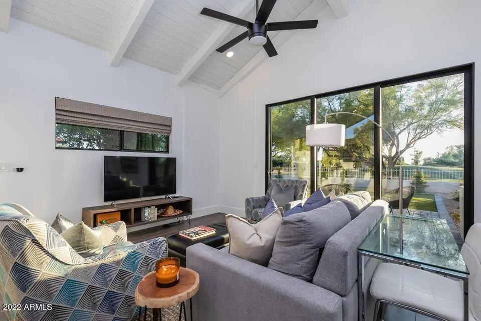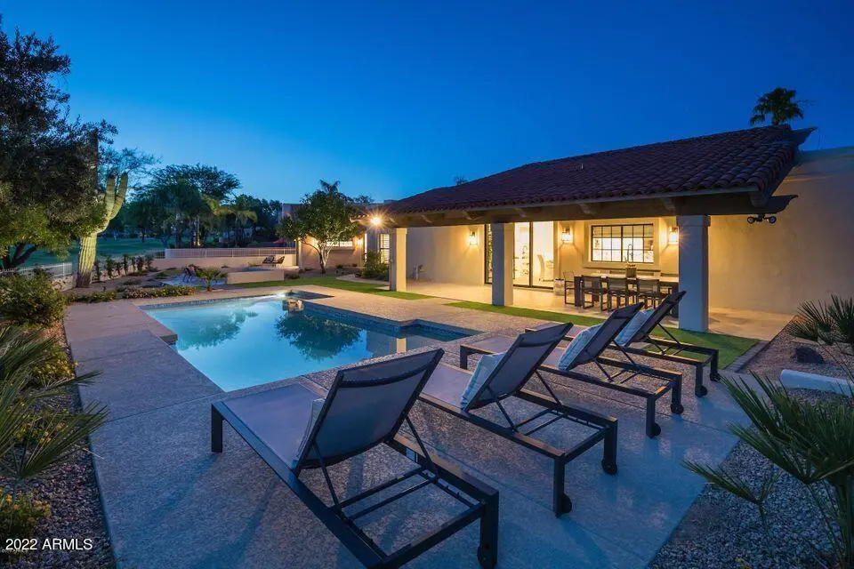 The ultimate retreat awaits you in this updated and highly upgraded furnished rental home with separate guest house in gated Pinnacle Peak Country Club Estates now available for discerning tastes. Offering golf course views from the professionally designed backyard with pool & spa, this incredible home flows with clean, contemporary finishes throughout including hard wood flooring, wood beam vaulted ceilings, premium appliances, quartz counters & much more. Ask about availability and seasonal rates of 6 month rental term or longer.