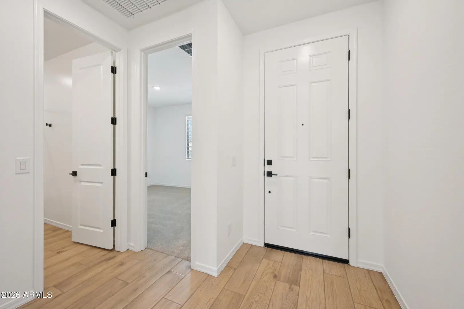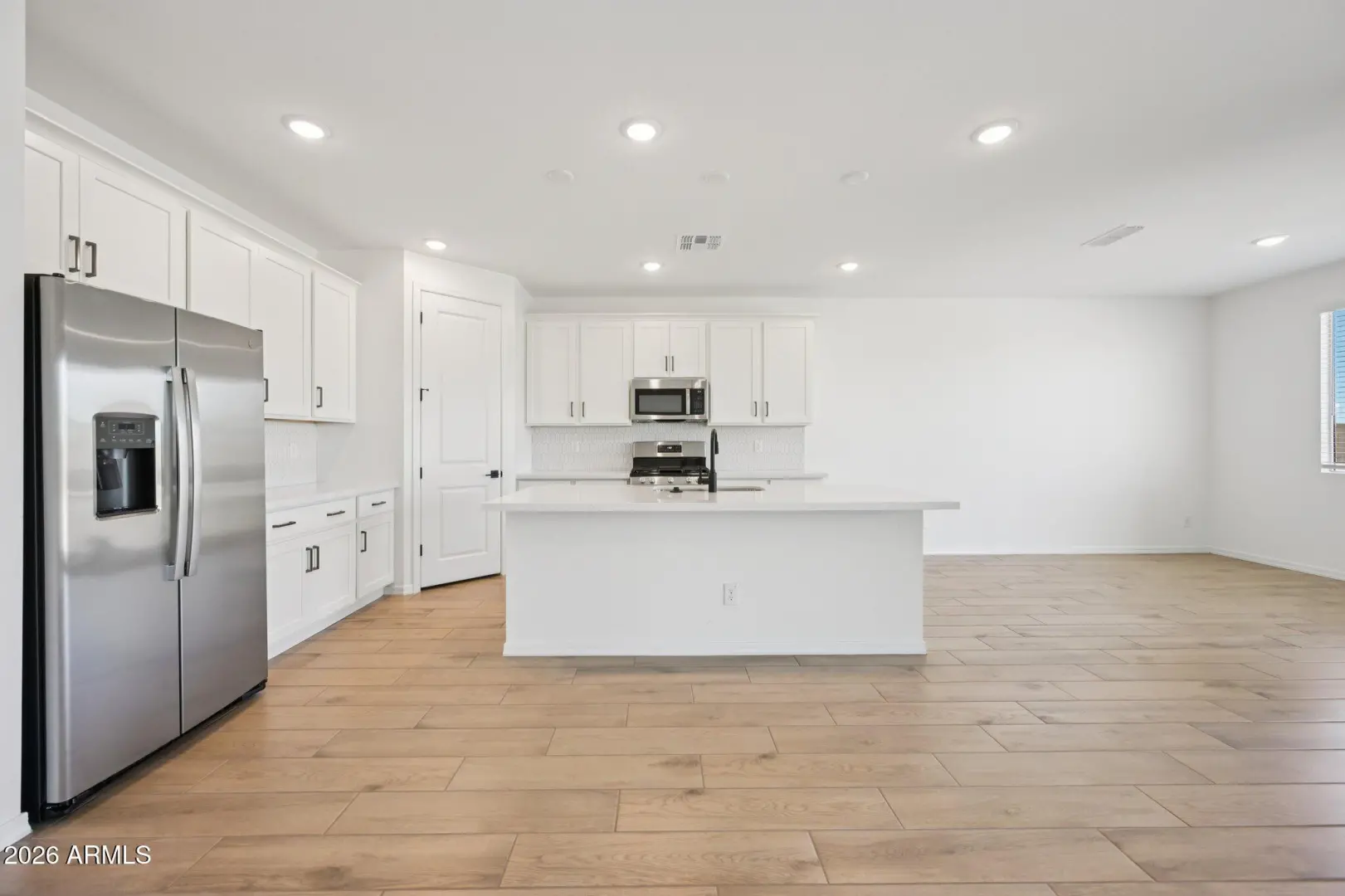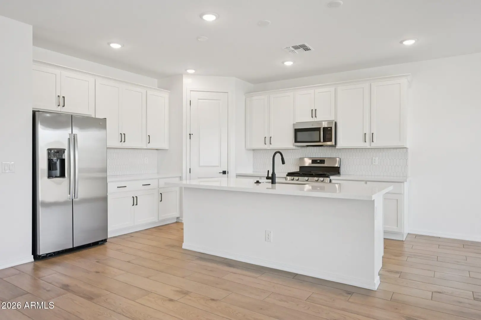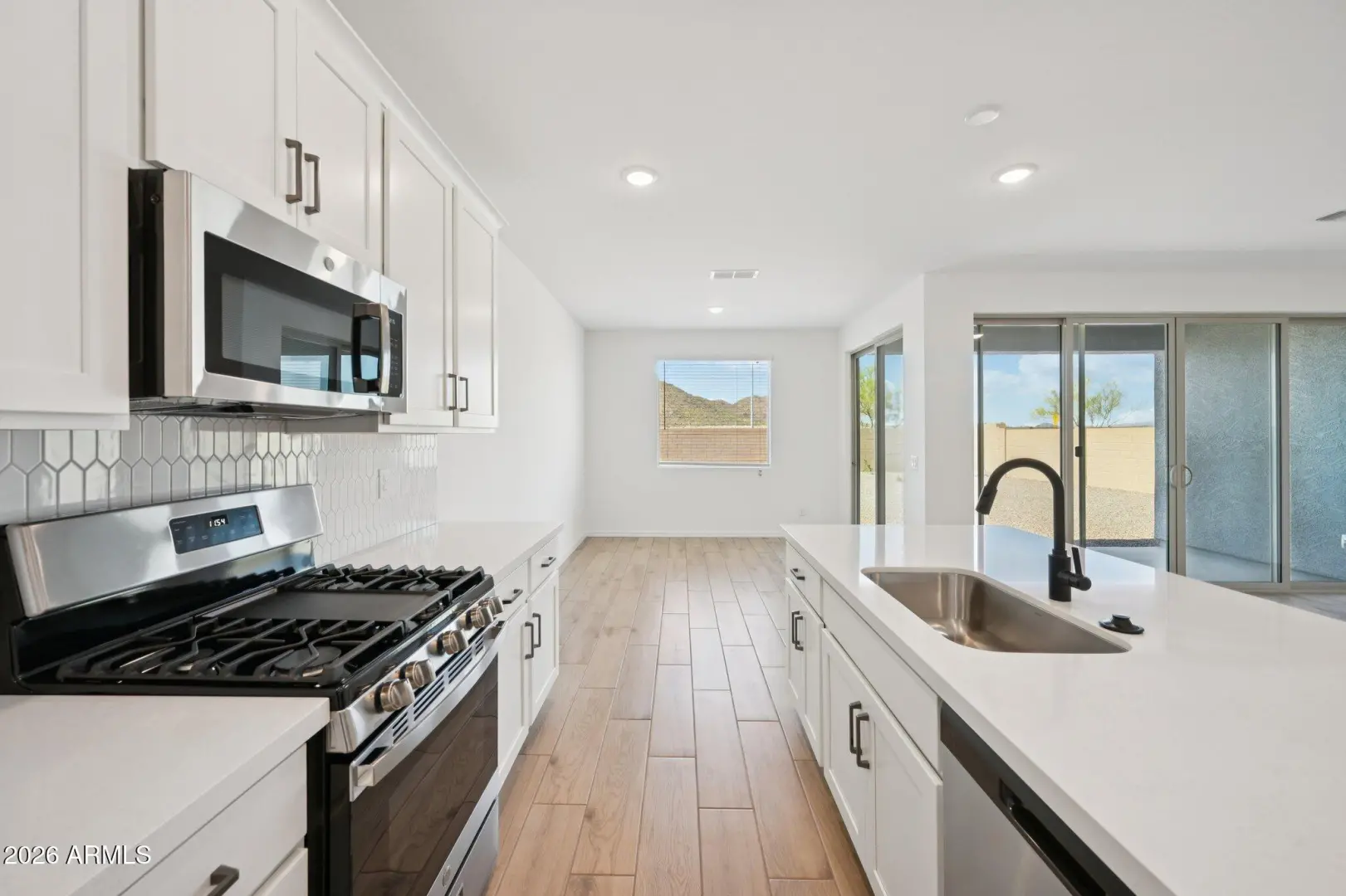 Welcome to the Larkspur. This stunning single-level home in The Retreat at Aloravita features 3 bedrooms, Den, 2.5 bathrooms, and a spacious open-concept layout. The gourmet kitchen boasts stainless steel appliances, quartz countertops, a large island, and stylish cabinetry, flowing seamlessly into the bright dining and great room. The luxurious primary suite offers a walk-in closet and spa-like bath. Enjoy indoor/outdoor living with a covered patio and 4 panel center slider. Included refrigerator, washer/dryer, and blinds make this home move-in ready! Located in a desirable community near top-rated schools, shopping, dining, and scenic hiking trails.