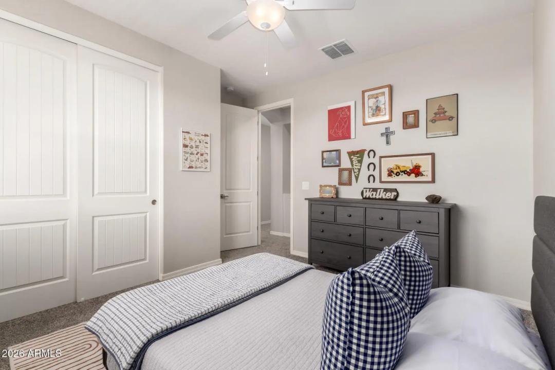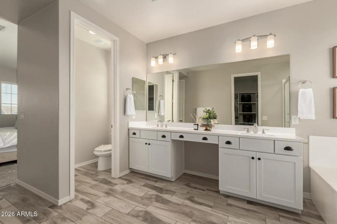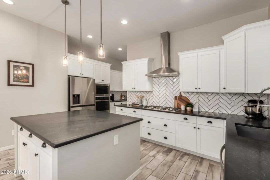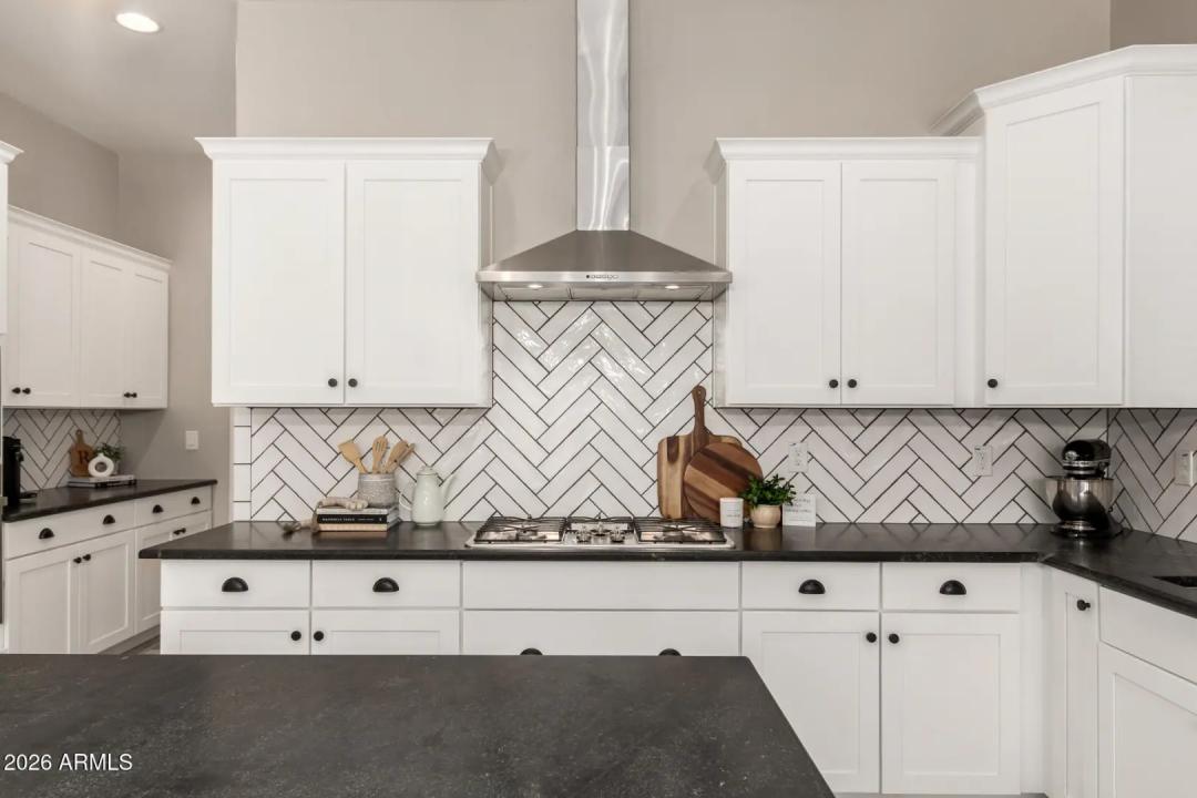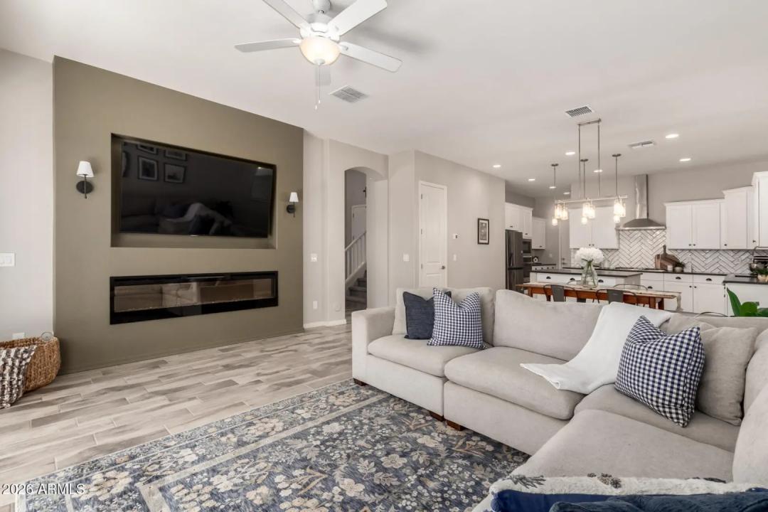 Get ready to fall in love! This gorgeous home in the upscale master planned community of Cooley Station is what you've been searching for. Open and bright floor plan features many upgrades set on a premium lot with no neighbors behind for exceptional privacy. Gourmet kitchen offers upgraded quartz slab countertops and island, subway tile backsplash, stainless appliances and custom hood, 5 burner gas stove, coffee bar, upgraded cabinets and hardware that flows seamlessly to the dining and living spaces. Main level includes a large home office or game room space, cozy fireplace, wood-like tile plank floors, upgraded lighting and two tone paint throughout. The primary suite is a true retreat, offering a cozy sitting area -could be a second home office.