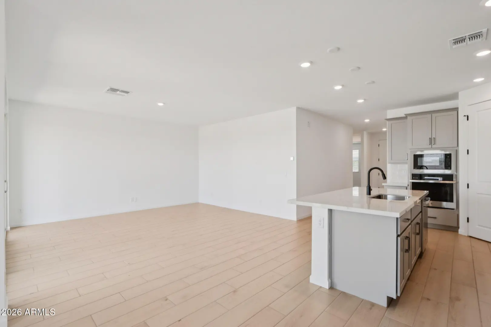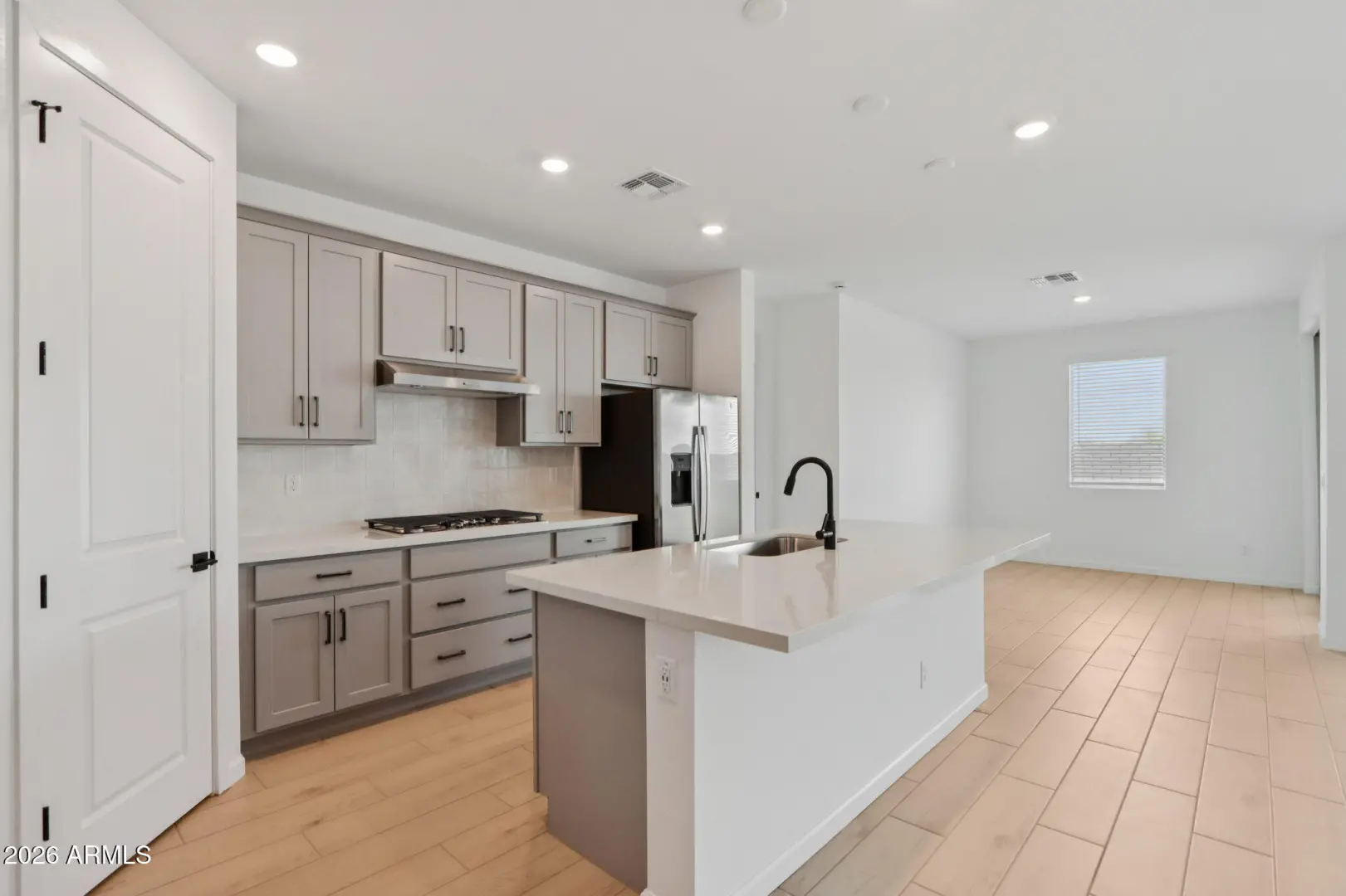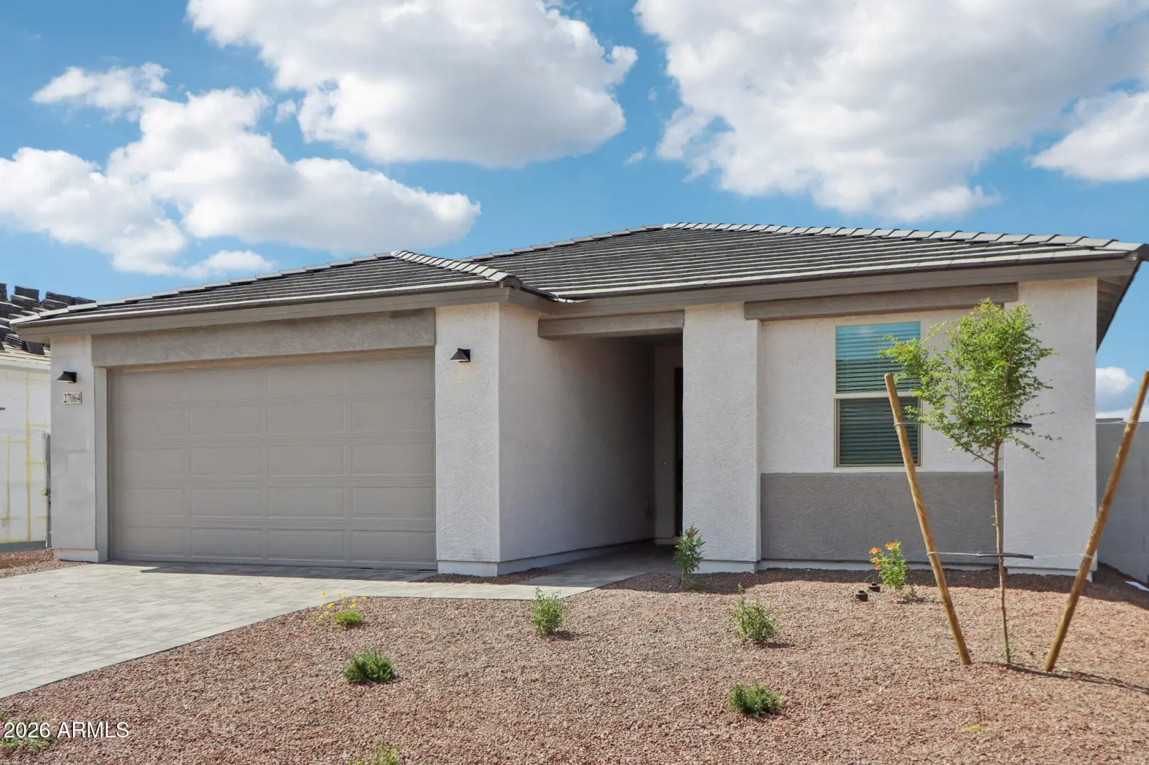This stunning Marigold floor plan offers 1,777 square feet of living space with 3 bedrooms, 2 baths, a Den, and a 2-car garage with a garage door opener. The home features our popular Modern Desert exterior and 8-foot interior doors throughout. The kitchen showcases an Artisan interior collection with a beautiful backsplash, grey 42-inch upper cabinets, stainless steel appliances, and eye catching quartz countertops. The home also includes wood like plank tile flooring, white sand quartz and oval sinks in the bathrooms, and light gray carpeting in the bedrooms. Enjoy a 4-panel center sliding glass door, 2-inch white horizontal faux-wood blinds, a water softener loop system, and a driveway with pavers. Additional conveniences include an washer and dryer and pre-wiring for pendant