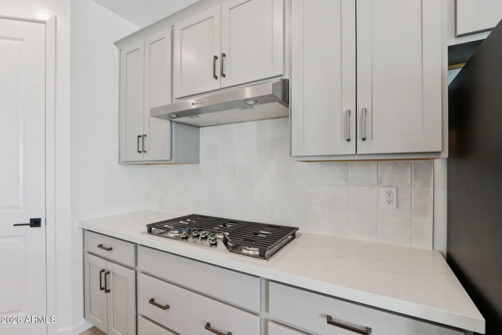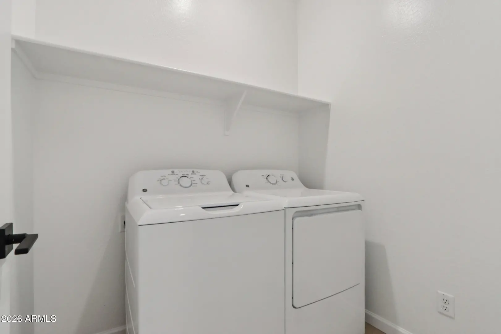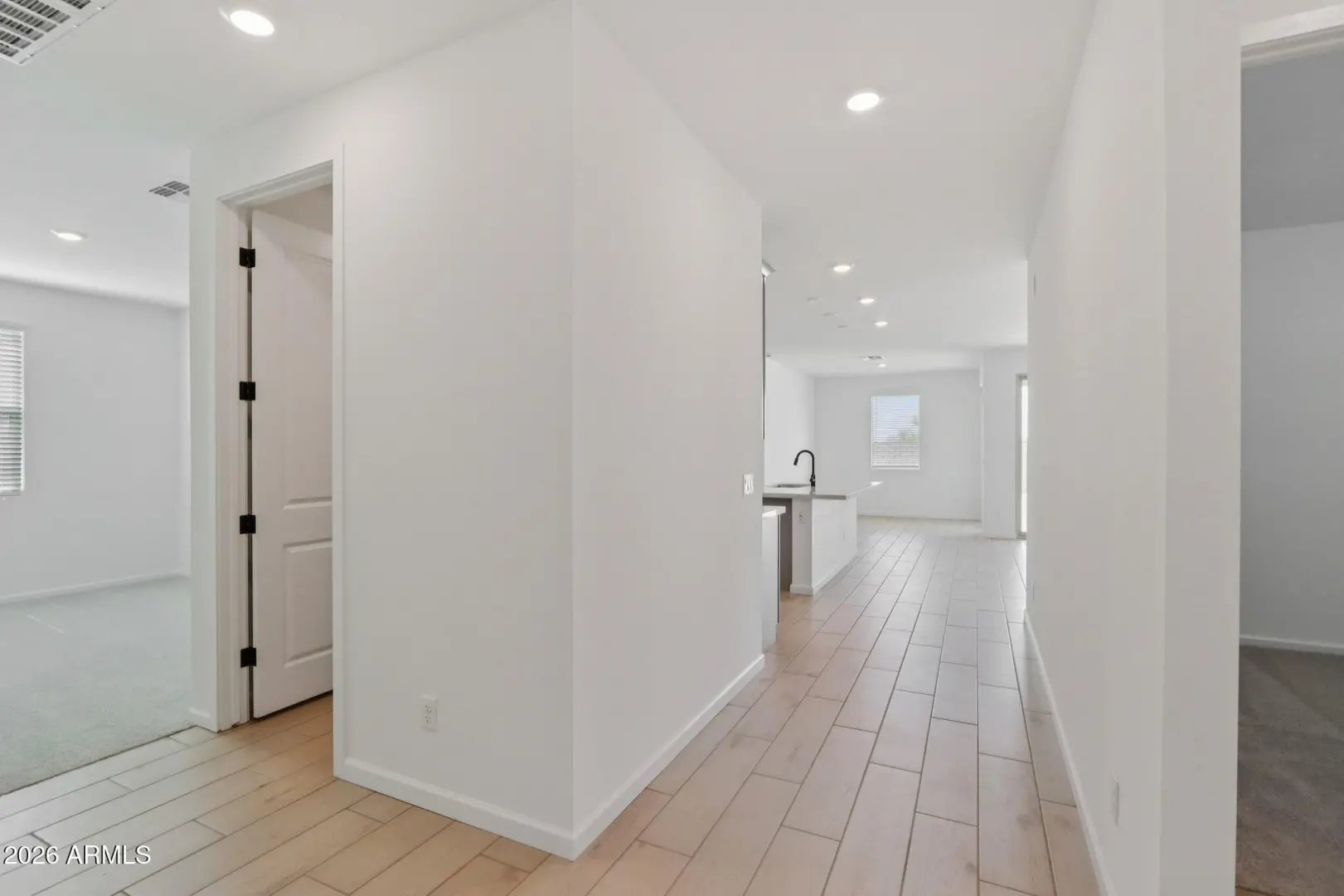 This stunning Marigold floor plan offers 1,777 square feet of living space with 3 bedrooms, 2 baths, a Den, and a 2-car garage with a garage door opener. The home features our popular Modern Desert exterior and 8-foot interior doors throughout. The kitchen showcases an Artisan interior collection with a beautiful backsplash, grey 42-inch upper cabinets, stainless steel appliances, and eye catching quartz countertops. The home also includes wood like plank tile flooring, white sand quartz and oval sinks in the bathrooms, and light gray carpeting in the bedrooms. Enjoy a 4-panel center sliding glass door, 2-inch white horizontal faux-wood blinds, a water softener loop system, and a driveway with pavers. Additional conveniences include an washer and dryer and pre-wiring for pendant
