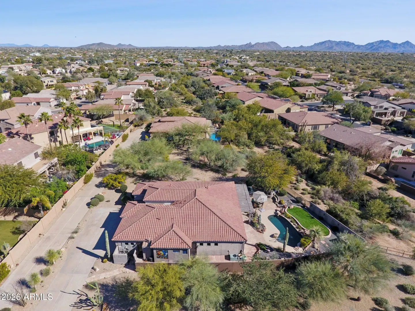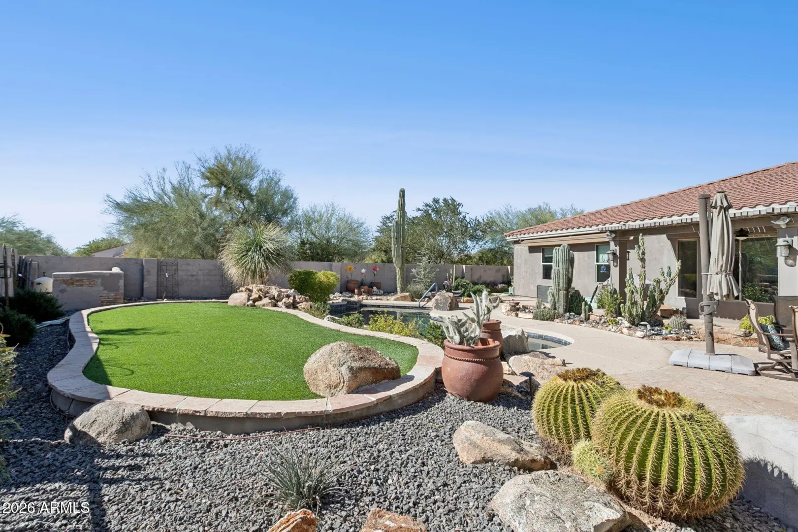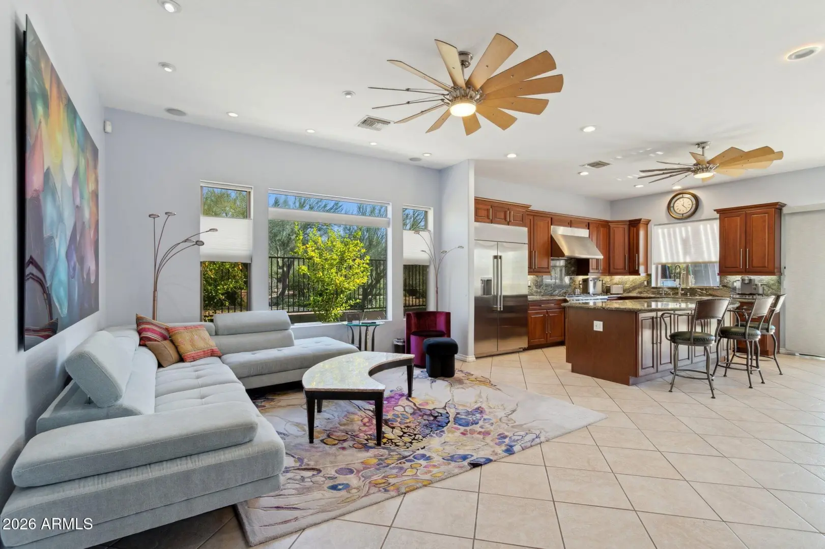 Designed with space, flexibility, and privacy in mind, this beautifully appointed single-level home is ideal for large family or multi-generational living and has been thoughtfully designed with exclusive interior upgrades. The open floor plan offers generous gathering spaces that flow effortlessly for everyday living and entertaining. The chef's kitchen anchors the home with ample workspace and storage, opening seamlessly to the main living areas. A dedicated media room is perfect for movie nights, while guests can relax and connect throughout the rest of the home. There is also ample room on the property to expand the garage, offering flexibility for additional vehicles, storage, or specialty needs. Step outside to a true backyard retreat. Backing to a desert wash with no common walls,