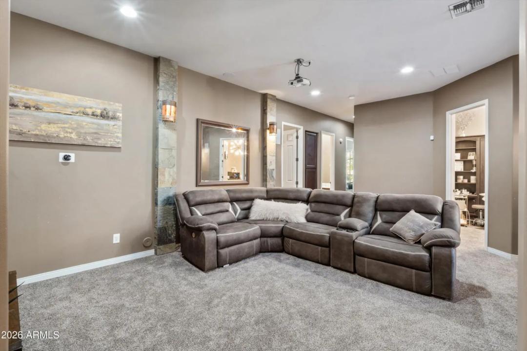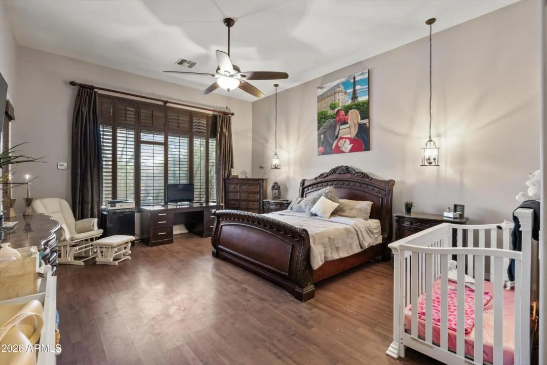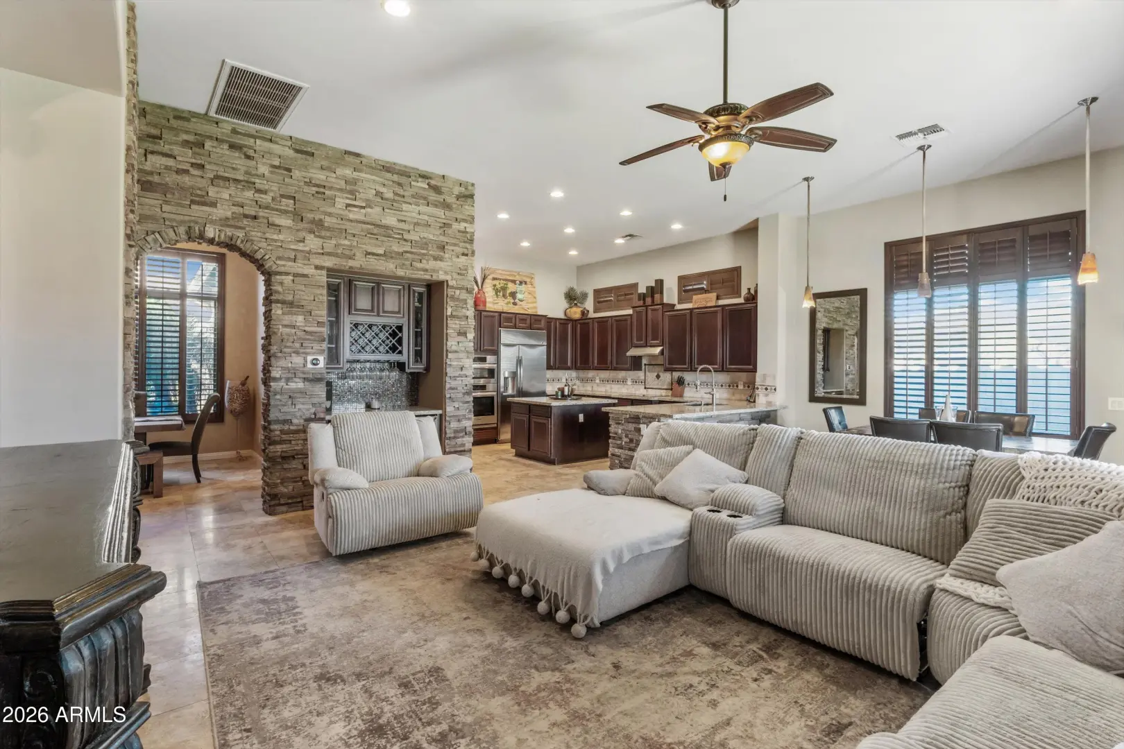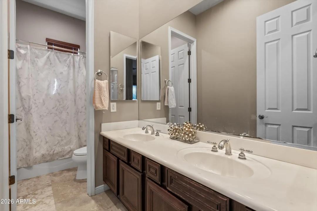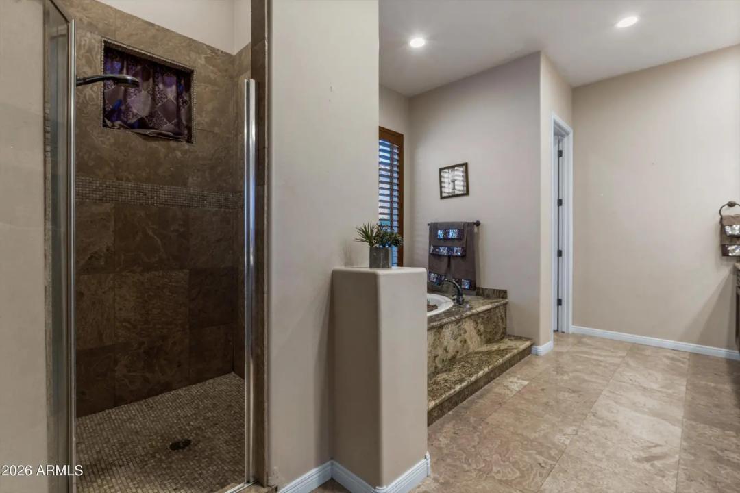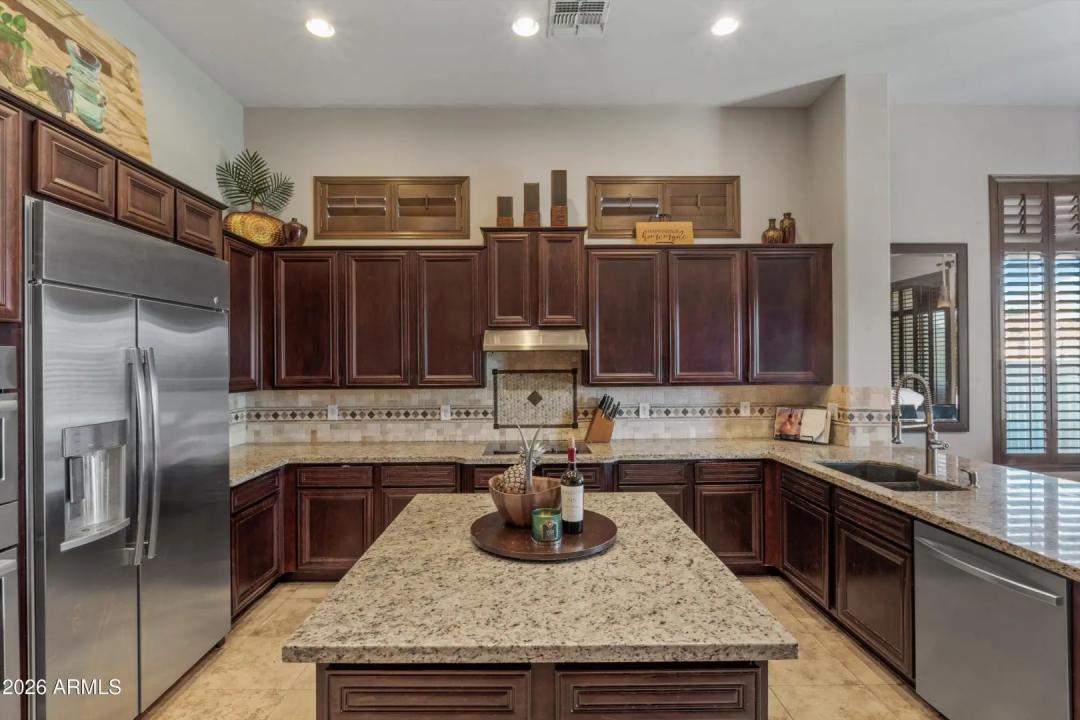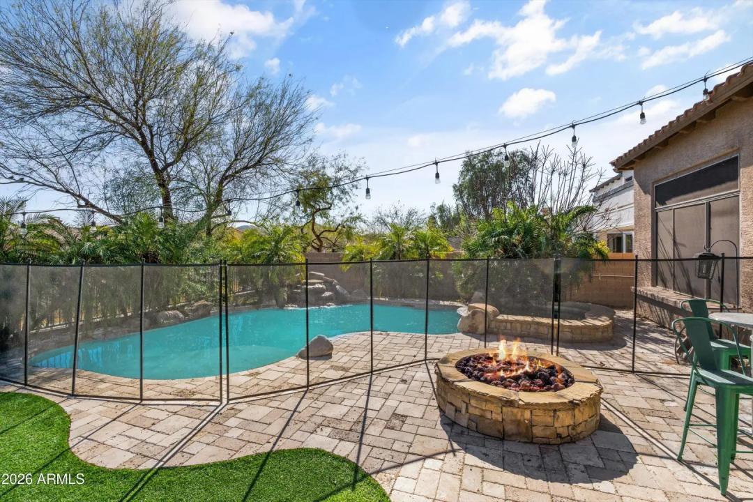 Welcome to this exceptional Toll Brothers' designed home in the sought-after Sonoron Foothills neighborhood. Boasting 4 bedrooms, including an attached ensuite casita with separate entrance, this spacious 3,374 sq. ft. home with 3.5 baths has something for everyone! The heart of the home is the gourmet kitchen, complete with stainless steel appliances, granite countertops, & ample maple cabinetry flowing seamlessly into the family room & formal dining room. The spacious primary suite with a large tub & beautiful walk-in shower is perfect for relaxation and unwinding. Situated on a corner lot with & backing up to a walking path, this home offers the perfect amount of privacy. Enjoy your private backyard oasis complete with a sparkling pool, travertine pavers, fire pit, built-in BBQ and