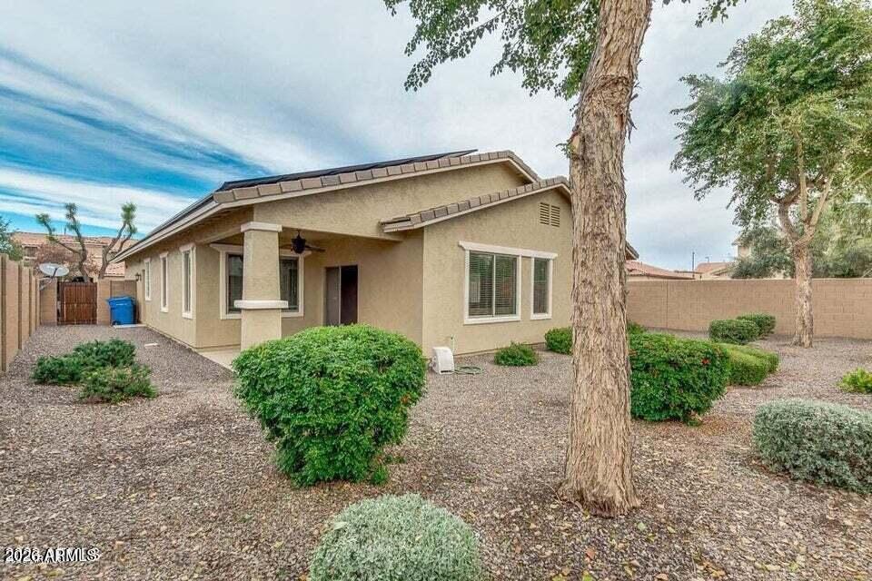 SOLAR INCLUDED & offsets SRP usage to the base monthly fee, avg $20/mo*. Rare find! BEAUTIFUL single-story, SPLIT FLOOR plan located in SEVILLE. This CORNER LOT home features 3 bedrooms and 2 baths with 20'' tile in all the right places. NO carpet, new flooring in bedrooms. The kitchen is highly upgraded, new microwave, faucet, & granite countertops, a walk-in pantry, upgraded cabinets, tile backsplash, stainless steel appliances, a large center island, and plenty of lighting. Large open living area has built-in cabinets and perfect for entertaining. Master bedroom features two walk-in closets, shower, tub and dual sinks. Low maintenance landscaping front and back. Home located close to school! Highly upgraded washer and dryer included.