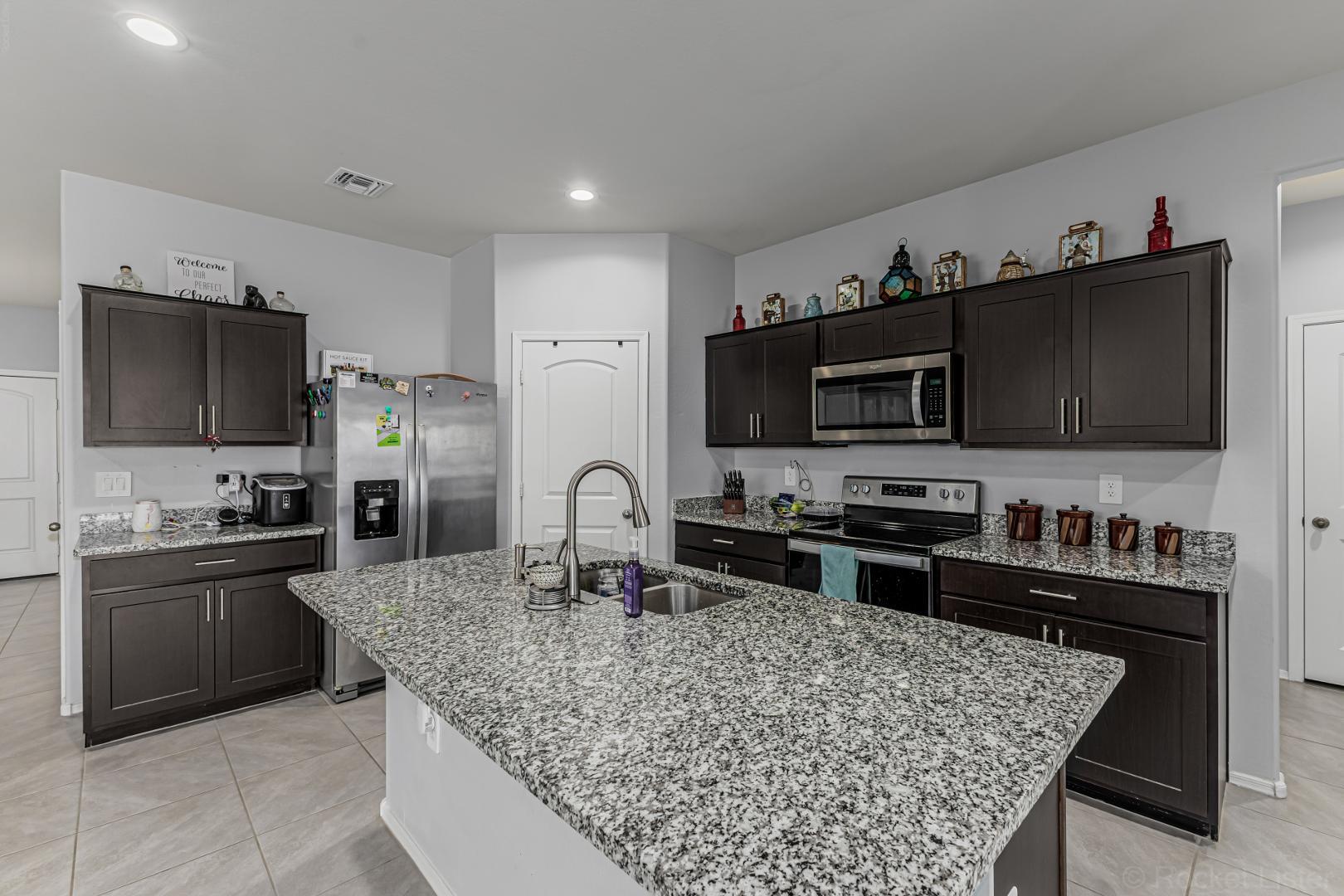 Well-maintained 5-bedroom, 3-bath home available for long-term lease in Maricopa. This spacious home offers an open-concept kitchen with granite countertops and stainless steel appliances, ideal for comfortable everyday living. The layout includes a versatile loft, perfect for a home office, media room, or additional living space. The oversized primary suite features dual vanities, a walk-in shower, and a large closet. Enjoy a covered back patio and low-maintenance outdoor space, along with a 2-car garage for added convenience.