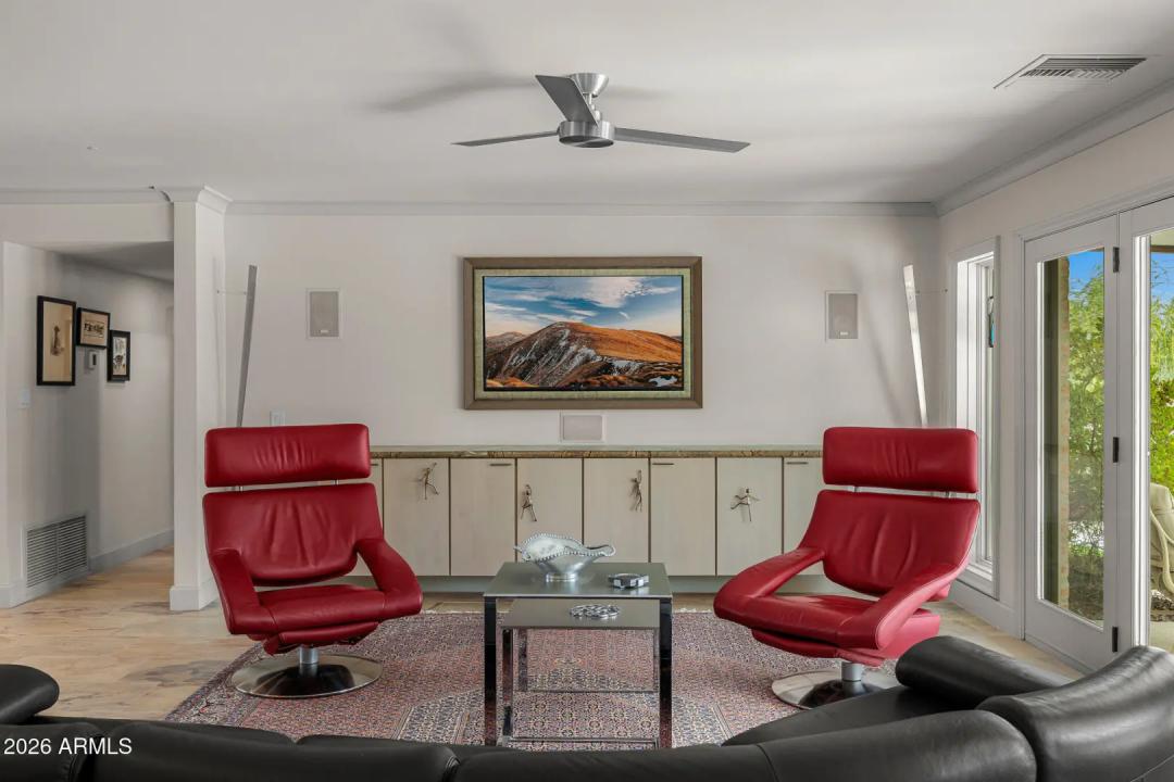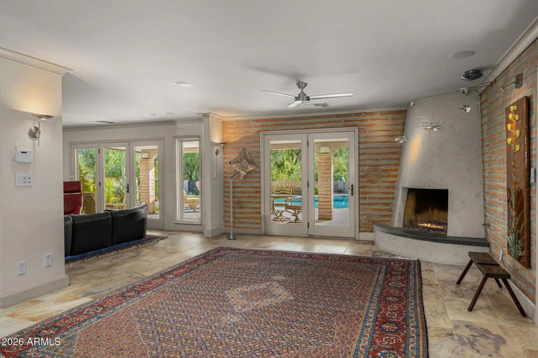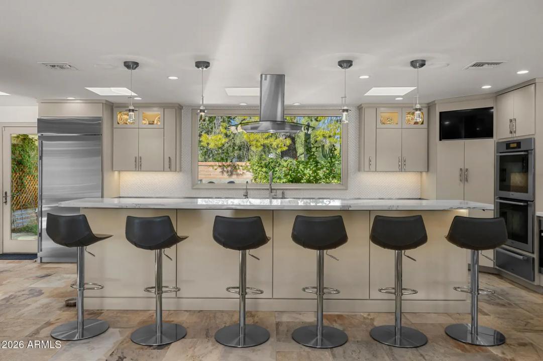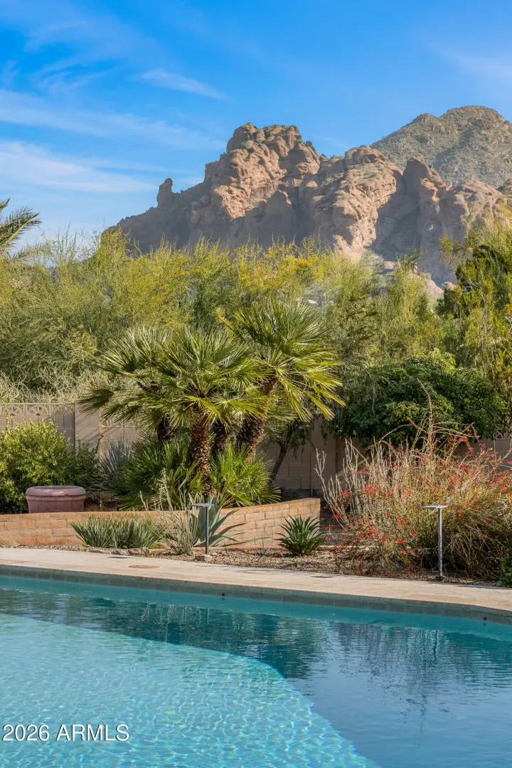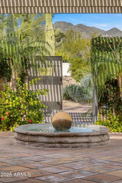 Tucked within the heart of Paradise Valley, this refined Southwestern Modern residence offers a serene blend of luxury and relaxed elegance, centered around a tranquil courtyard and soothing water features that create a true private oasis. Designed with effortless flow, the split floor plan highlights a stunning, newly updated primary suite, a true designer showcase, while thoughtfully curated interiors invite both comfort and sophistication. The chef's kitchen is a masterpiece of form and function, featuring professional grade design and top-tier appliances, including three ovens, a Teppanyaki side plate, warming drawers, and an integrated espresso machine. Entertaining is effortless with a generous dining room, multiple courtyards and patios, and a beautifully appointed detached casita