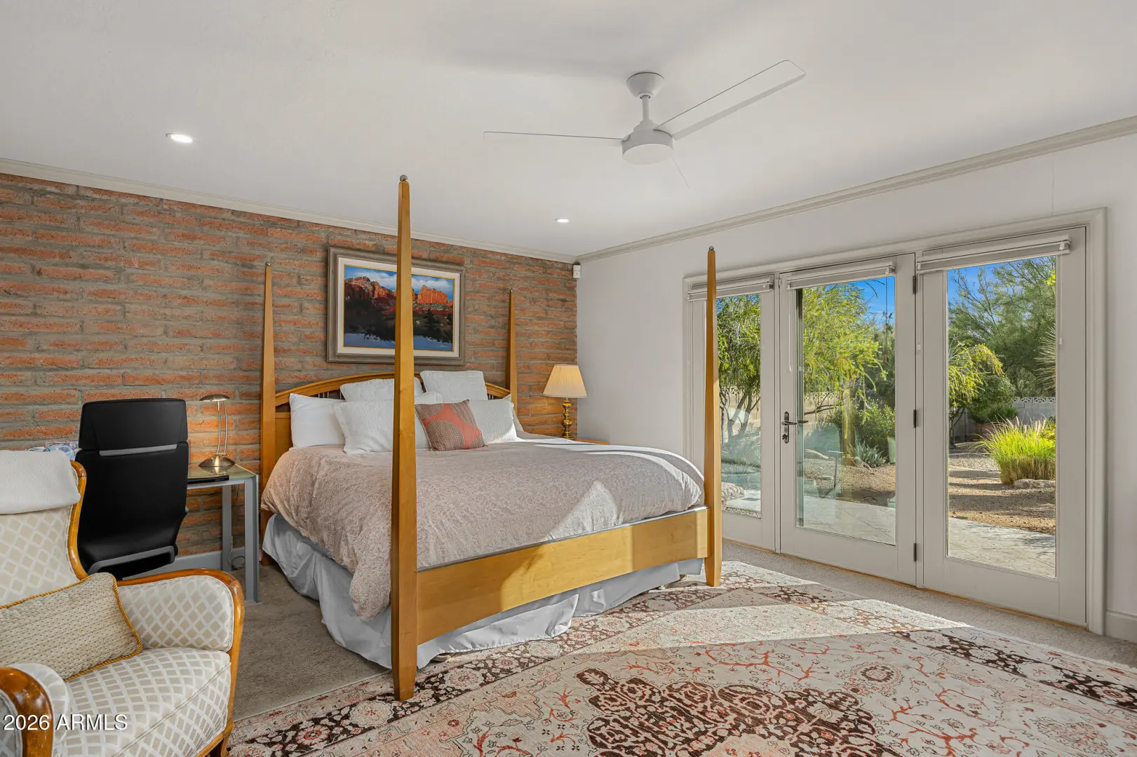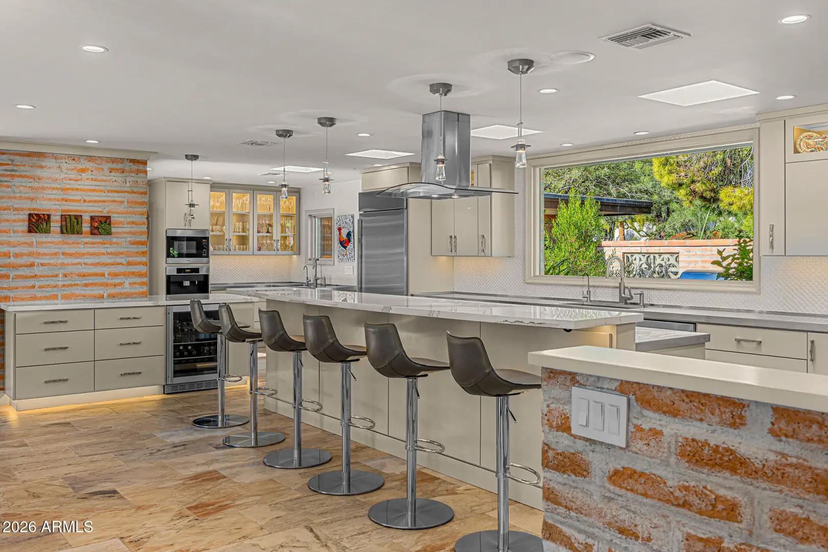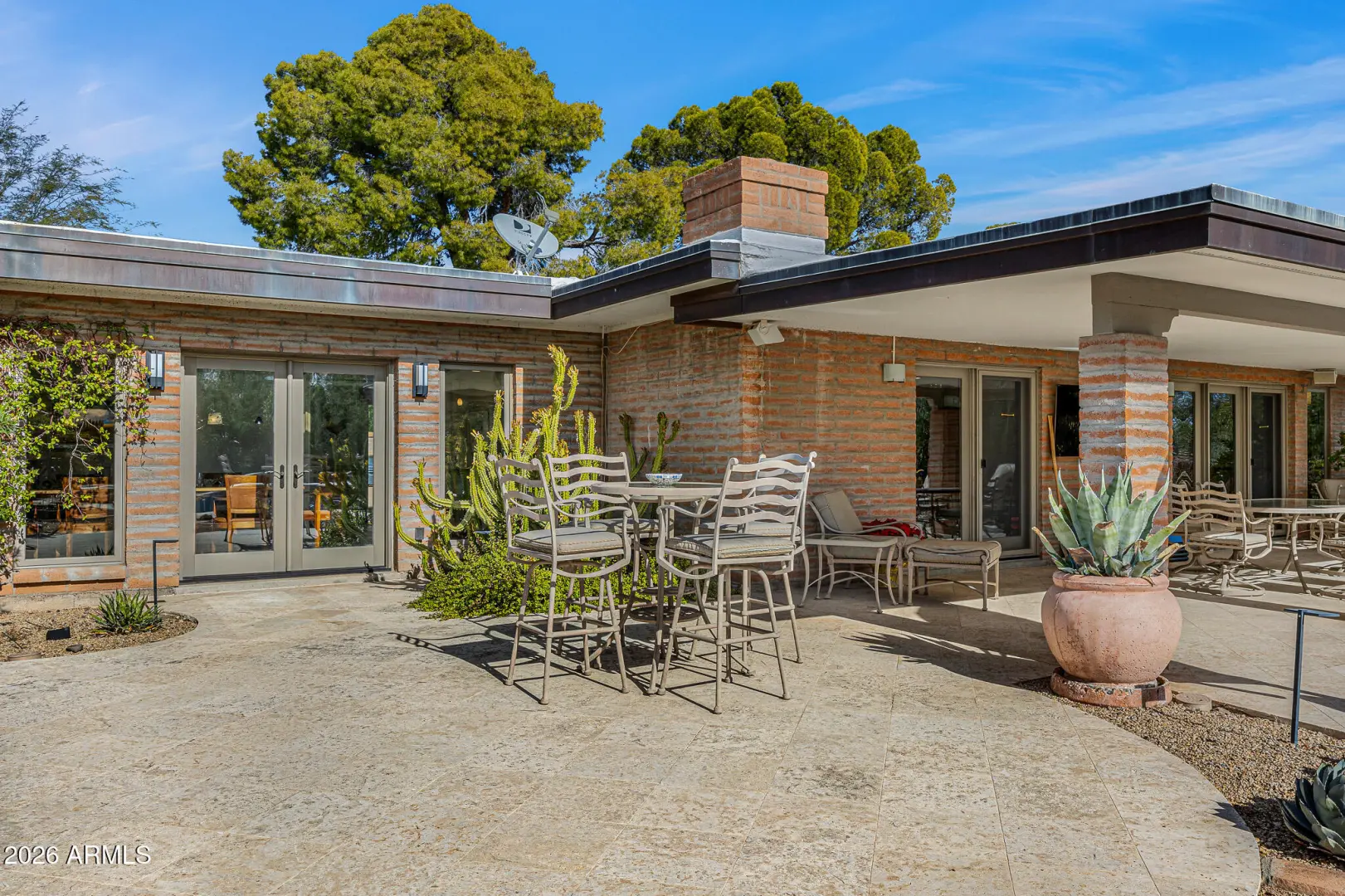 Tucked within the heart of Paradise Valley, this refined Southwestern Modern residence offers a serene blend of luxury and relaxed elegance, centered around a tranquil courtyard and soothing water features that create a true private oasis. Designed with effortless flow, the split floor plan highlights a stunning, newly updated primary suite, a true designer showcase, while thoughtfully curated interiors invite both comfort and sophistication. The chef's kitchen is a masterpiece of form and function, featuring professional grade design and top-tier appliances, including three ovens, a Teppanyaki side plate, warming drawers, and an integrated espresso machine. Entertaining is effortless with a generous dining room, multiple courtyards and patios, and a beautifully appointed detached casita