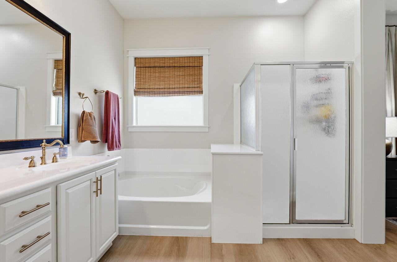 Welcome to this stunning home located in the highly desirable Morrison Ranch community in Gilbert! This spacious and upgraded property offers the perfect combination of comfort, functionality, and low-maintenance living. Step inside to find 10-foot ceilings, upgraded laminate flooring, modern countertops, and updated ceiling fans throughout. The home comes fully equipped with refrigerator, washer, dryer, and microwavemaking move-in seamless. Enjoy Arizona living at its best with your own private pool and heated spa, along with grass landscaping in both the front and backyardperfect for relaxing or entertaining. Additional features include a RO system and water softener for enhanced water quality, plus a 3-car tandem garage with overhead storage, offering plenty of space and