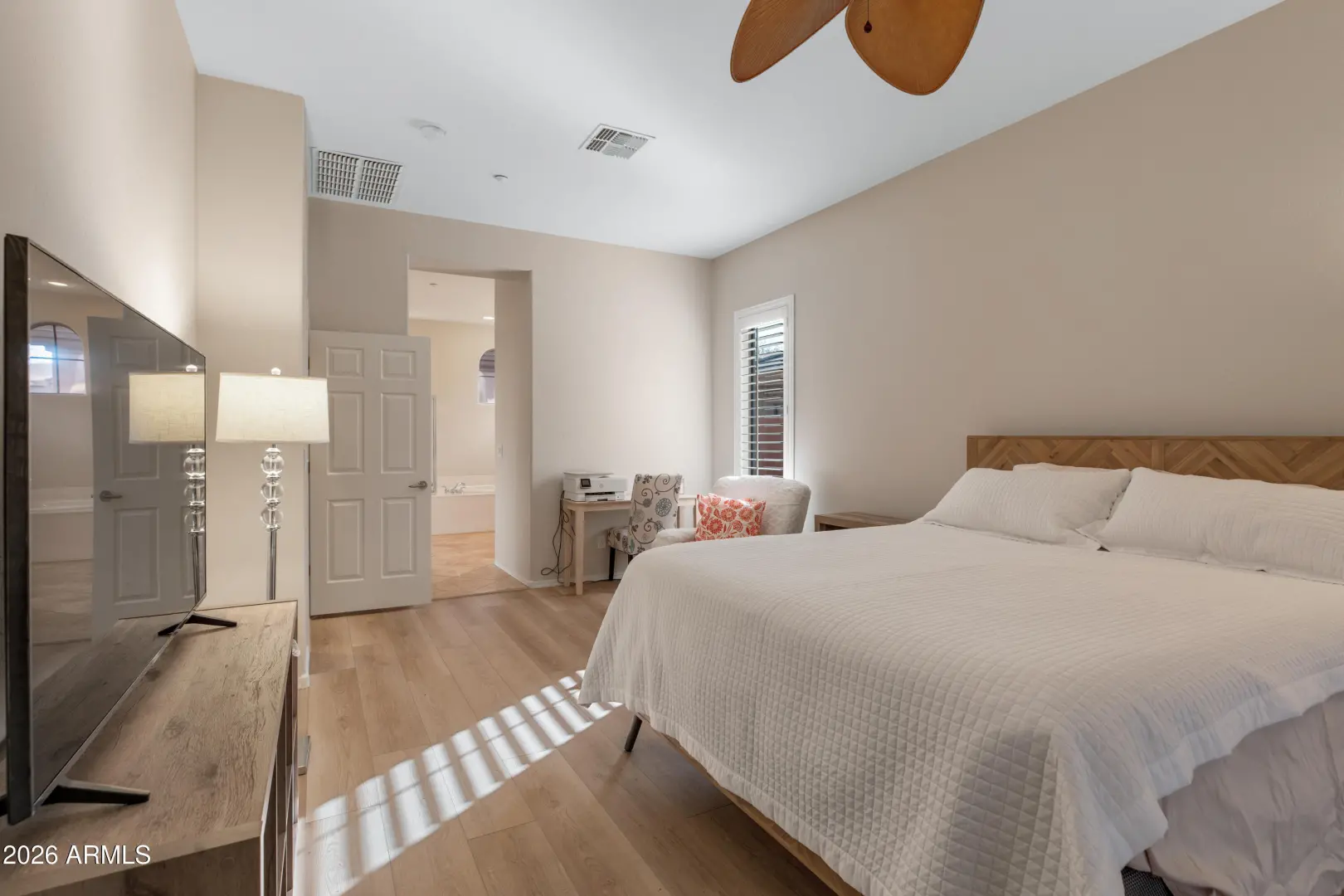 Located within the guard-gated Anthem Country Club this unfurnished 4-bedroom, 3.5-bath residence offers privacy, flexibility, and an exceptional desert setting. The well-designed floor plan includes a private detached CASITA with a full bathroom, ideal for guests, a home office, or multigenerational living. The main home features light-filled living spaces, an open-concept layout, and generously sized bedrooms. The primary suite offers a private retreat with an en-suite bath and ample closet space. Enjoy a low-maintenance outdoor area suited for relaxing or entertaining in a quiet, serene environment. Conveniently located near shopping, dining, hiking trails, and freeway access.