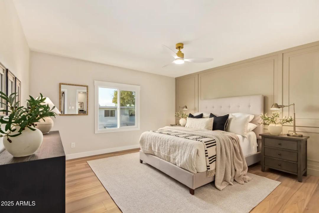 Experience luxury living in this masterfully remodeled Arcadia condo. Reimagined with meticulous craftsmanship, the interior features bespoke paneling, quartz countertops, 42'' upper cabinets, new GE kitchen appliances, brand-new flooring, custom closets, premium doors, and energy-efficient windows. Every detail reflects intentional, high-end design—not a flip. Perfectly situated near Camelback Mountain, Papago Park, Arcadia Park, and minutes from Old Town Scottsdale, Sky Harbor Airport, SR-51, and Loop 202. You're also moments from premier dining, boutiques, cafés, and other vibrant attractions in both Arcadia and Biltmore.