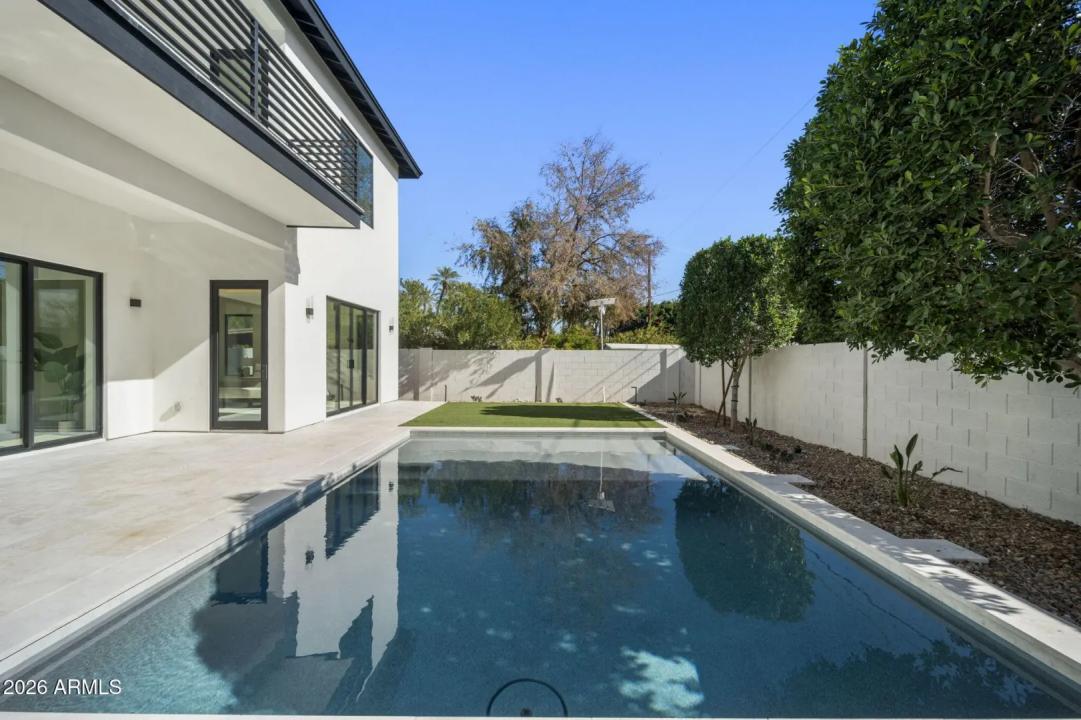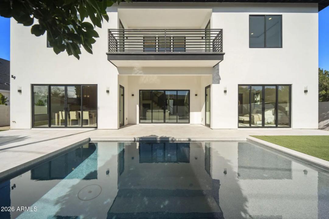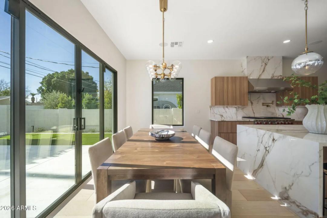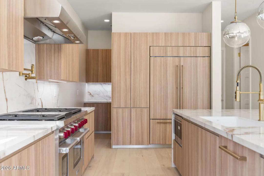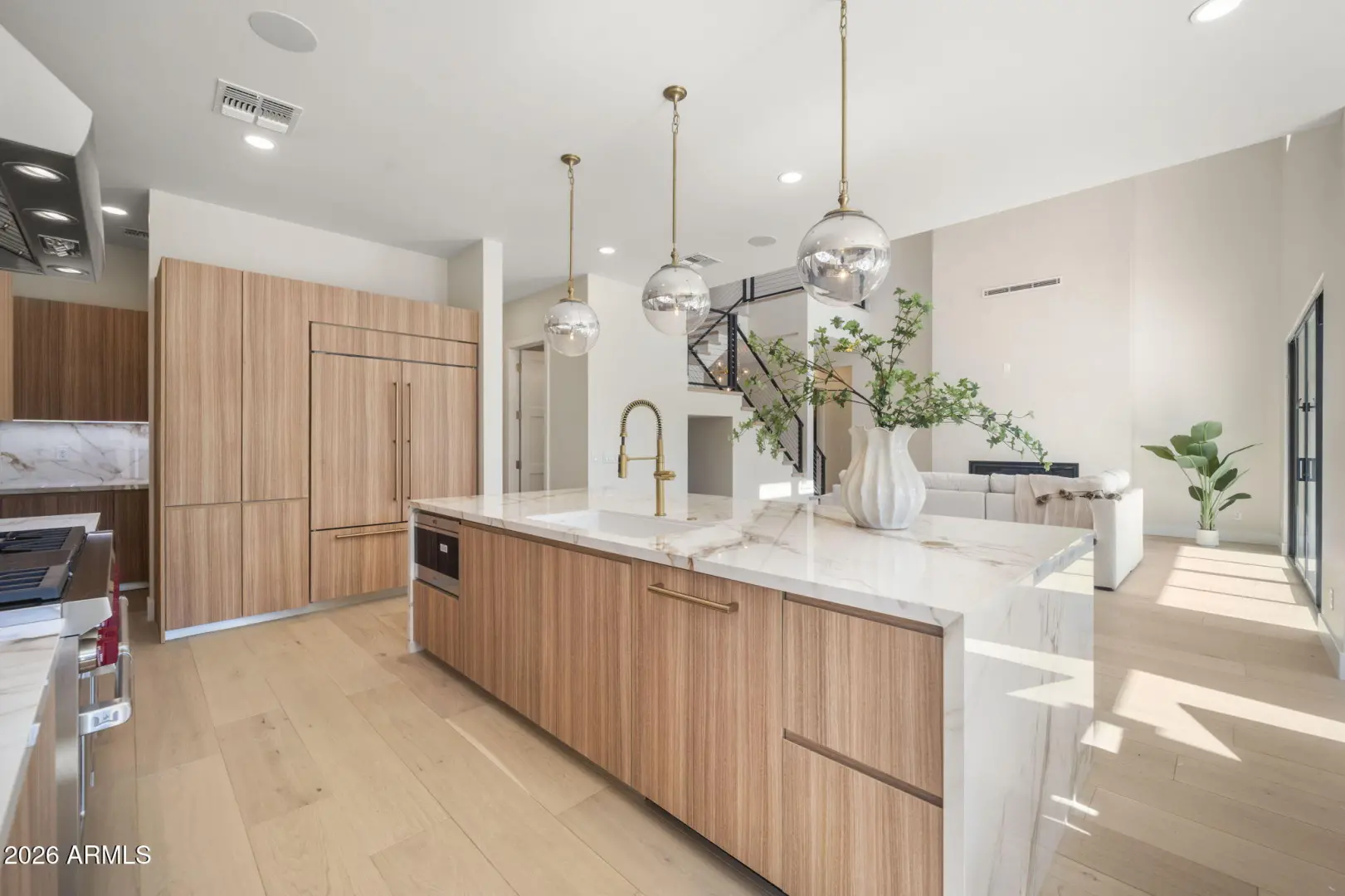 A striking new-construction contemporary in the heart of Arcadia Lite, designed for the way people actually live—bright, open, and effortlessly dialed-in. From the curb, clean white stucco is warmed by a statement wood-clad volume, a glass-panel garage door, and a sleek upper-level terrace that sets the tone before you even step inside. The interior delivers a true wow-factor with a soaring double-height great room, wide-plank flooring, and walls of glass that pull the backyard into everyday life. The kitchen is the centerpiece: an oversized waterfall island, warm modern cabinetry, professional-grade gas range with pot filler, and globe pendants that make the space feel equal parts designer and functional—perfect for entertaining without feeling formal. Out back, enjoy a private