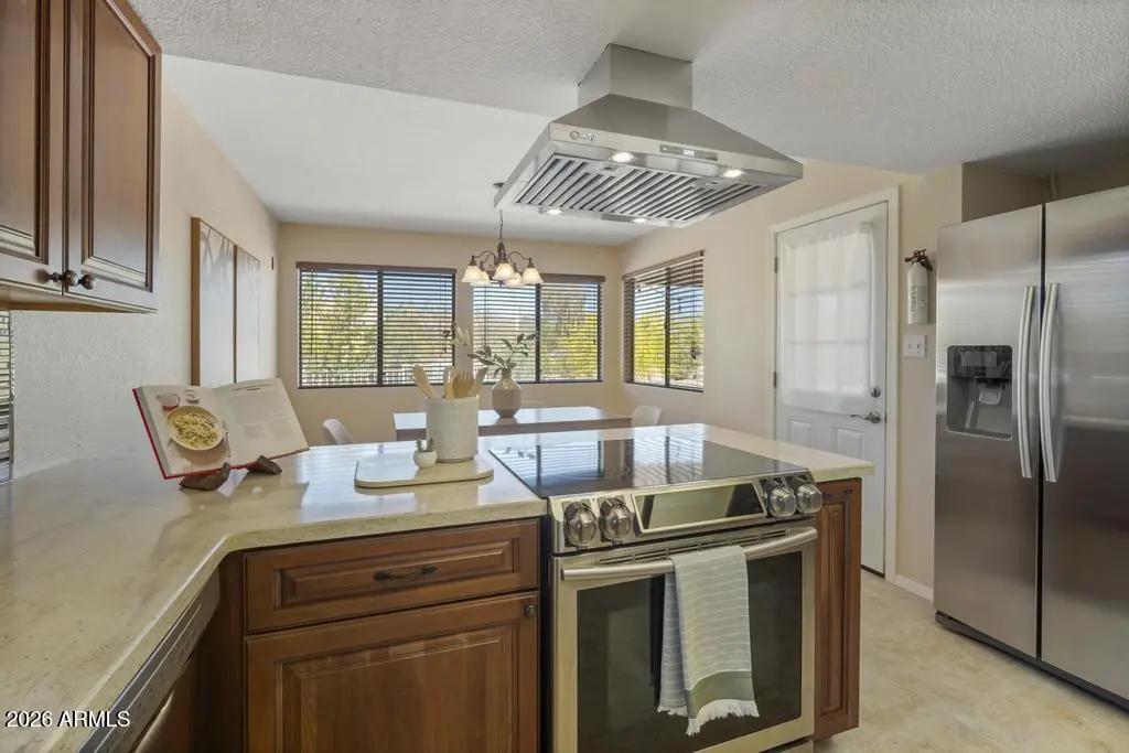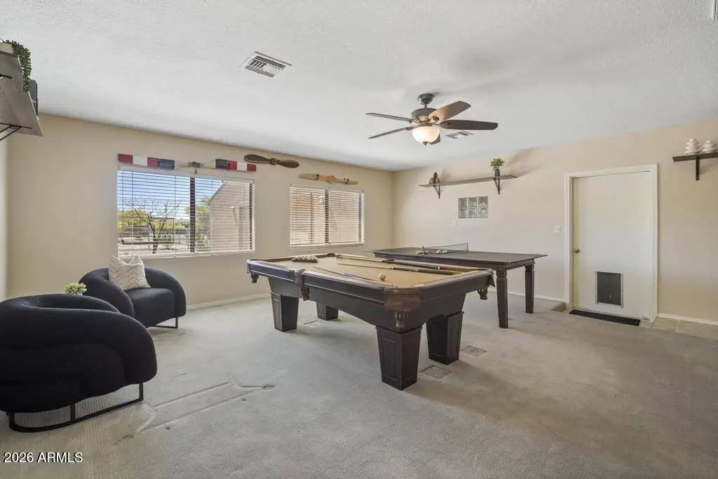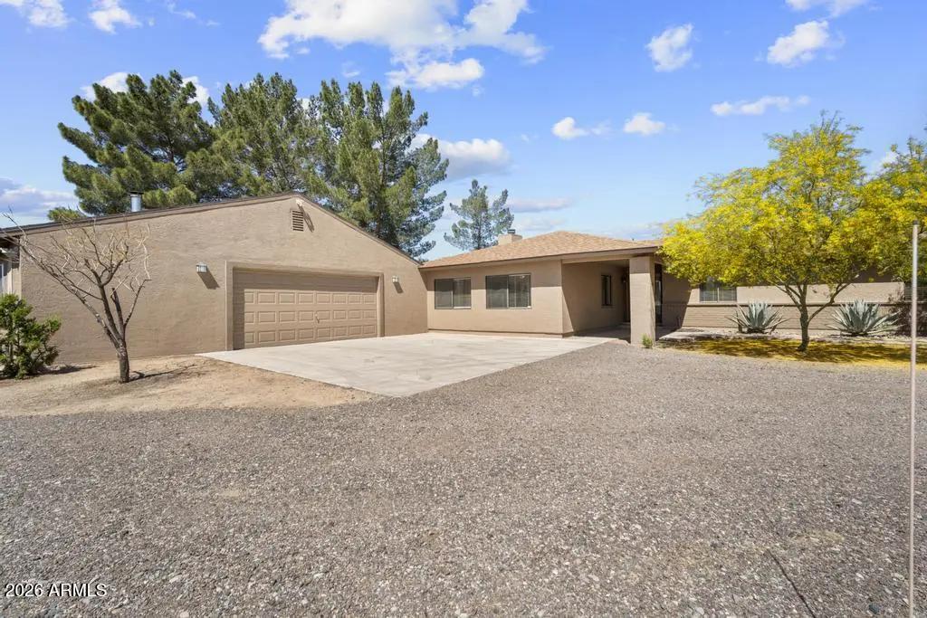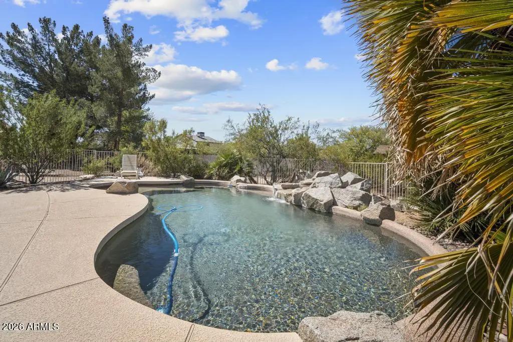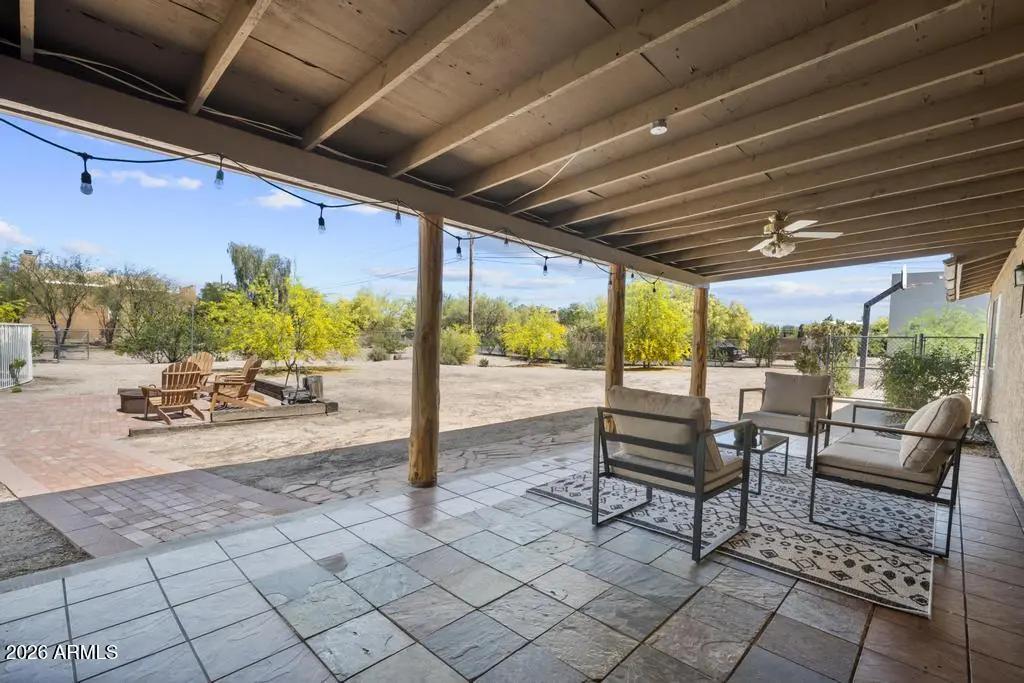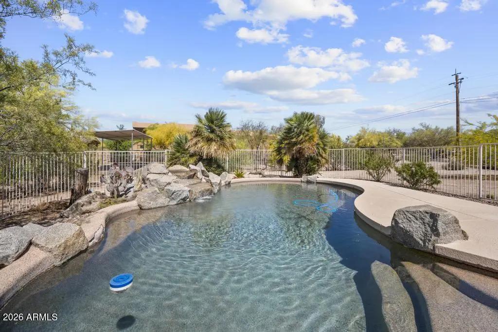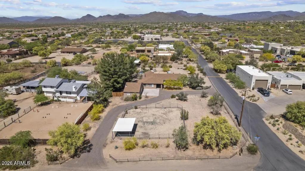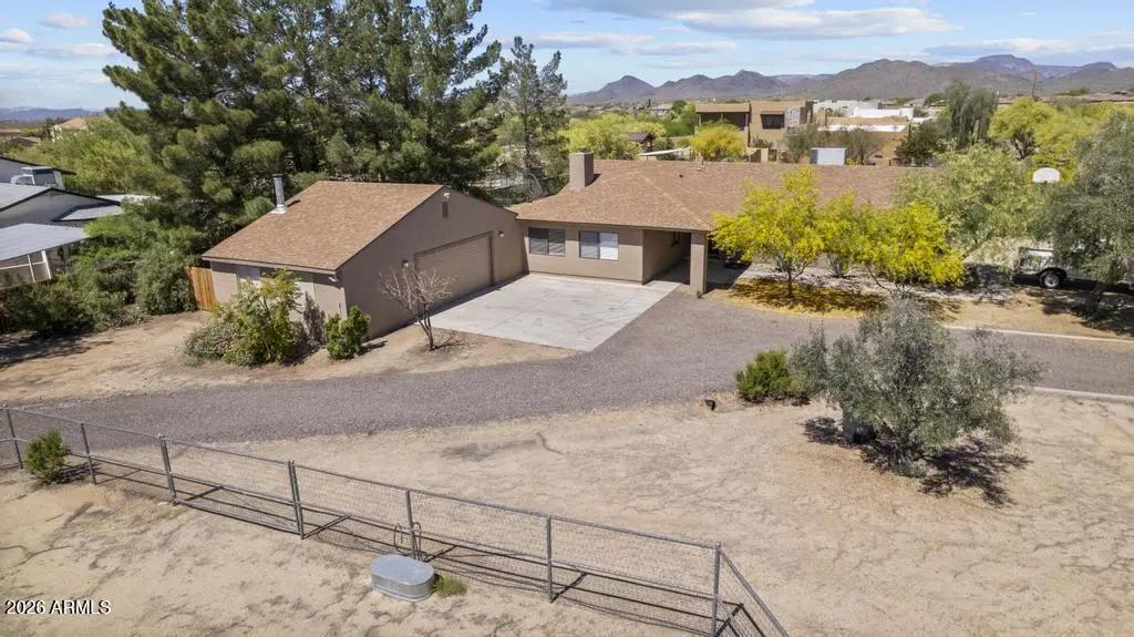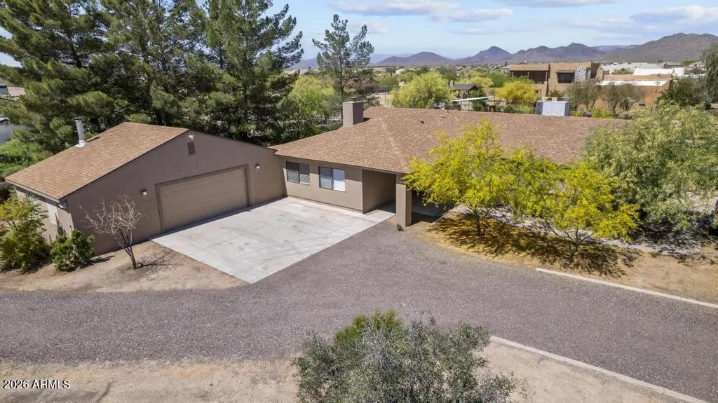Welcome to this exceptional Cave Creek retreat situated on over an acre in an unbeatable location. Inside, enjoy a remodeled kitchen featuring all-new custom cherry cabinetry, stainless steel appliances, an electric stove and oven with statement hood, and a charming breakfast nook with views of the backyard. The family room is warm and inviting with a wood-burning fireplace, perfect for cozy desert evenings. A massive bonus game room offers endless flexibility—ideal for entertaining, a home gym, media room, or additional living space. The primary bedroom includes a walk-in closet, and both bathrooms have been tastefully remodeled. The exterior has been freshly painted and the property truly shines outdoors. The expansive lot features a covered patio, basketball court, fire pit,
