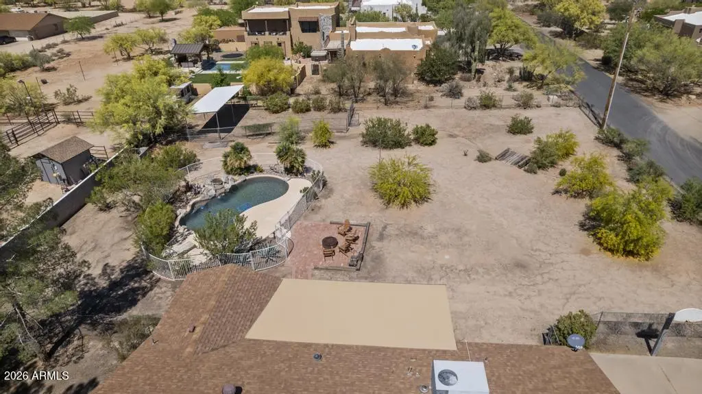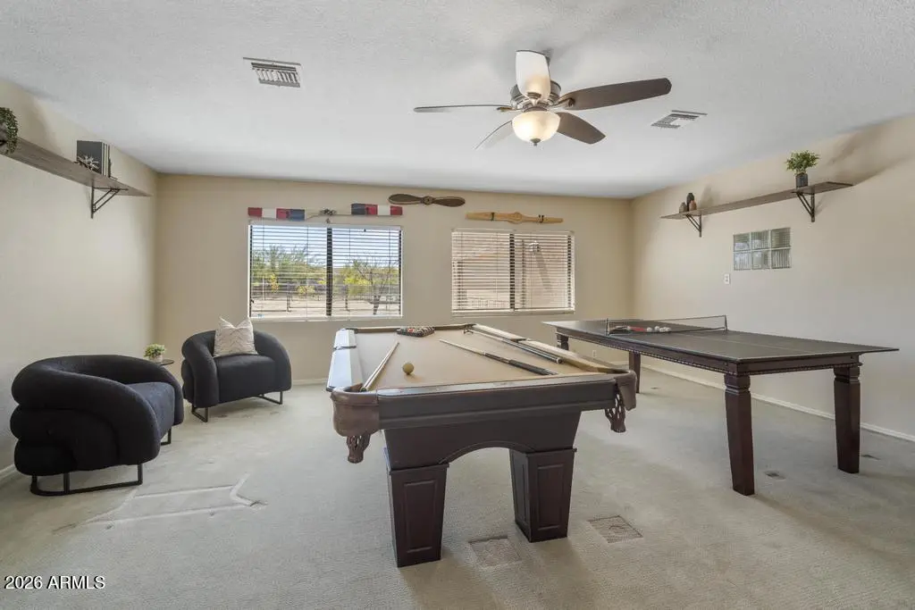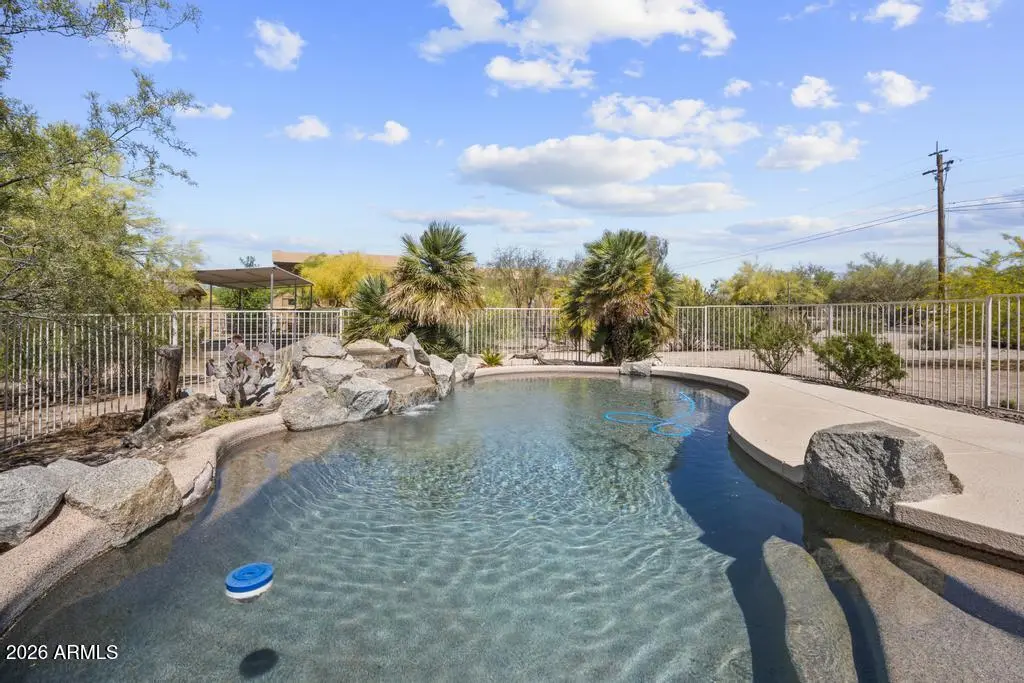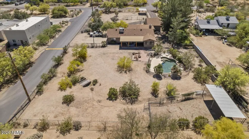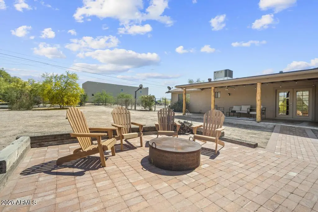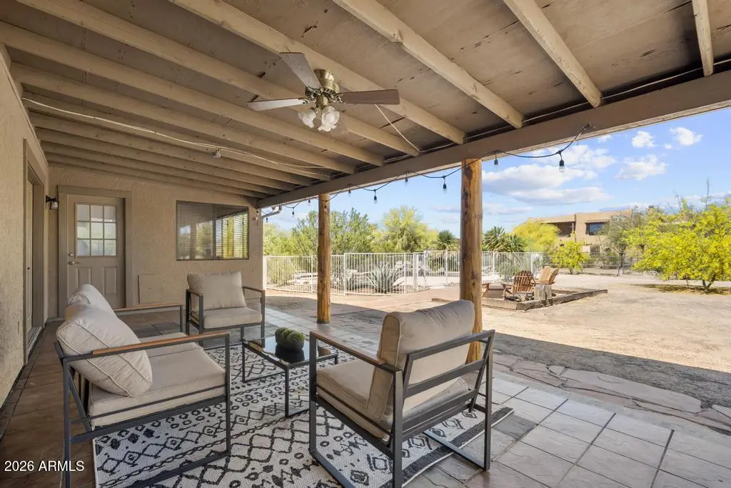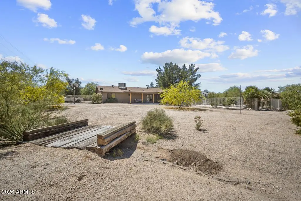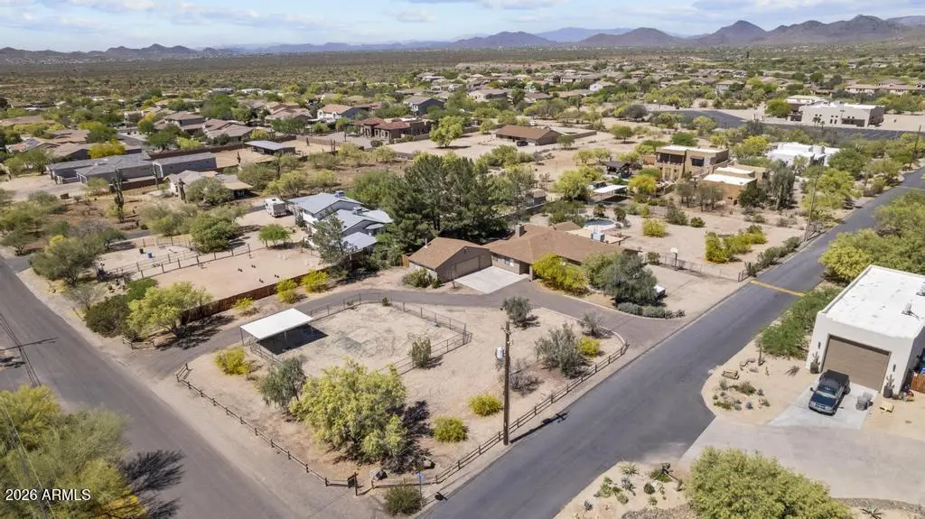 Welcome to this exceptional Cave Creek retreat situated on over an acre in an unbeatable location. Inside, enjoy a remodeled kitchen featuring all-new custom cherry cabinetry, stainless steel appliances, an electric stove and oven with statement hood, and a charming breakfast nook with views of the backyard. The family room is warm and inviting with a wood-burning fireplace, perfect for cozy desert evenings. A massive bonus game room offers endless flexibility—ideal for entertaining, a home gym, media room, or additional living space. The primary bedroom includes a walk-in closet, and both bathrooms have been tastefully remodeled. The exterior has been freshly painted and the property truly shines outdoors. The expansive lot features a covered patio, basketball court, fire pit,