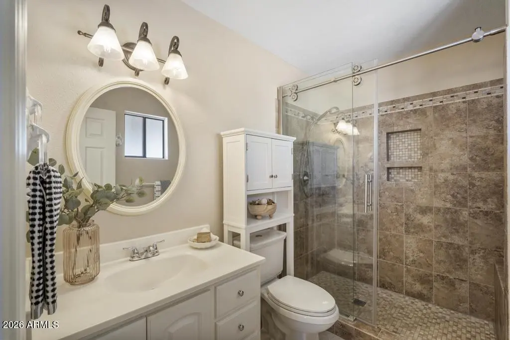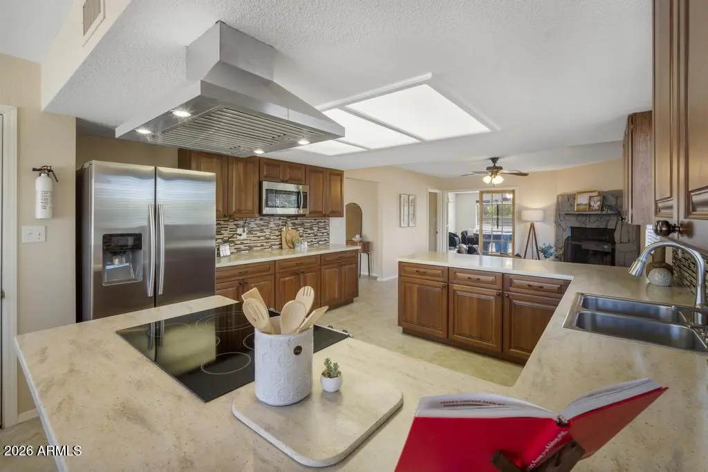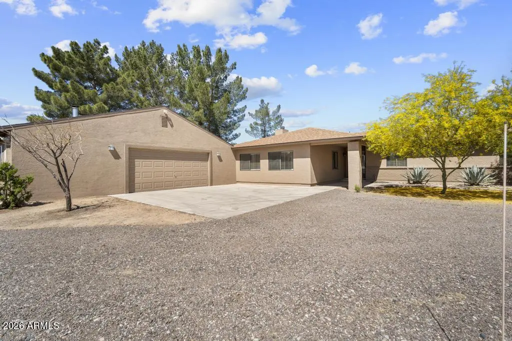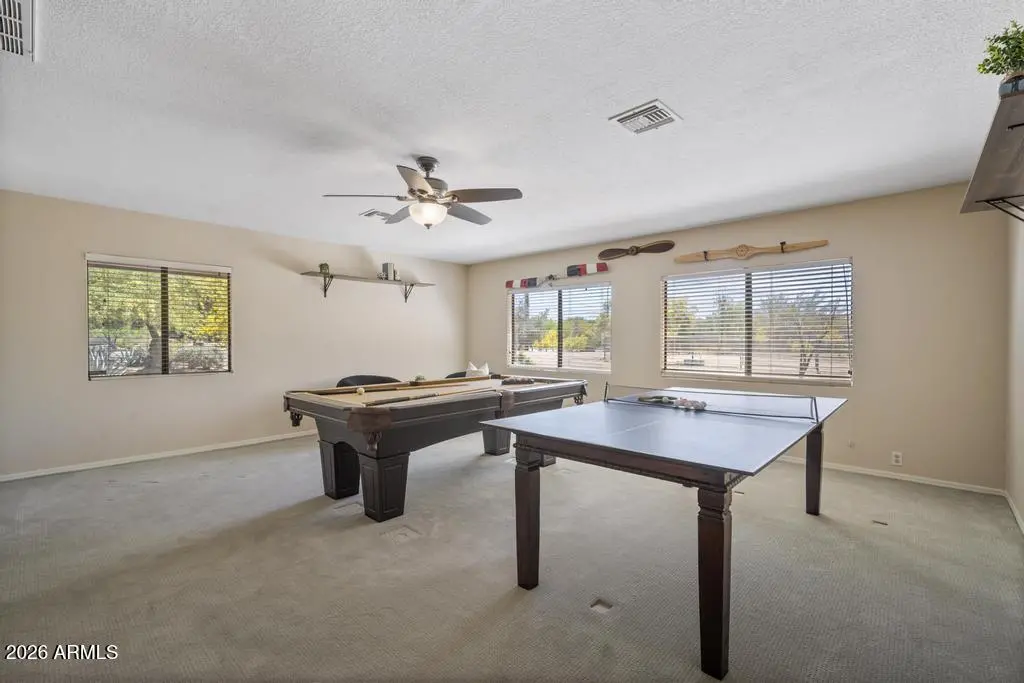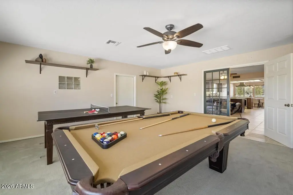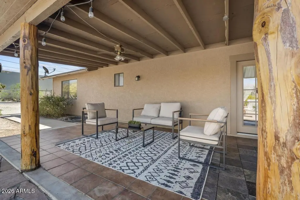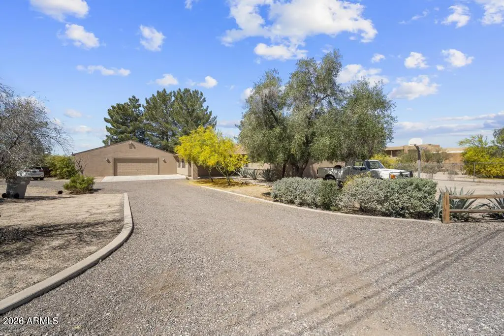 Welcome to this exceptional Cave Creek retreat situated on over an acre in an unbeatable location. Inside, enjoy a remodeled kitchen featuring all-new custom cherry cabinetry, stainless steel appliances, an electric stove and oven with statement hood, and a charming breakfast nook with views of the backyard. The family room is warm and inviting with a wood-burning fireplace, perfect for cozy desert evenings. A massive bonus game room offers endless flexibility—ideal for entertaining, a home gym, media room, or additional living space. The primary bedroom includes a walk-in closet, and both bathrooms have been tastefully remodeled. The exterior has been freshly painted and the property truly shines outdoors. The expansive lot features a covered patio, basketball court, fire pit,