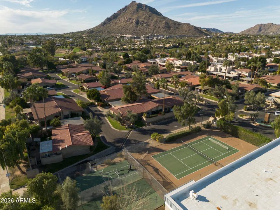 Casa del Monte is a 24-hour guard-gated community set near Camelback Mountain at the crossroads of Paradise Valley, Arcadia, and Old Town Scottsdale, offering an exceptional location and lifestyle. Behind the gates, this resort-style enclave is known for its classic Scottsdale charm, multiple pools, tennis and sports courts, fitness facilities, and lock-and-leave living. This beautifully maintained 2-bed, 2-bath single-level townhome features comfortable living spaces and thoughtful updates, ideal for full-time living or a second home. Designed for low-maintenance living. The location is unmatched, just moments from the Phoenician Resort, Scottsdale Fashion Square, top dining, nearby golf, Camelback Mountain hiking, and Old Town art district and entertainment.