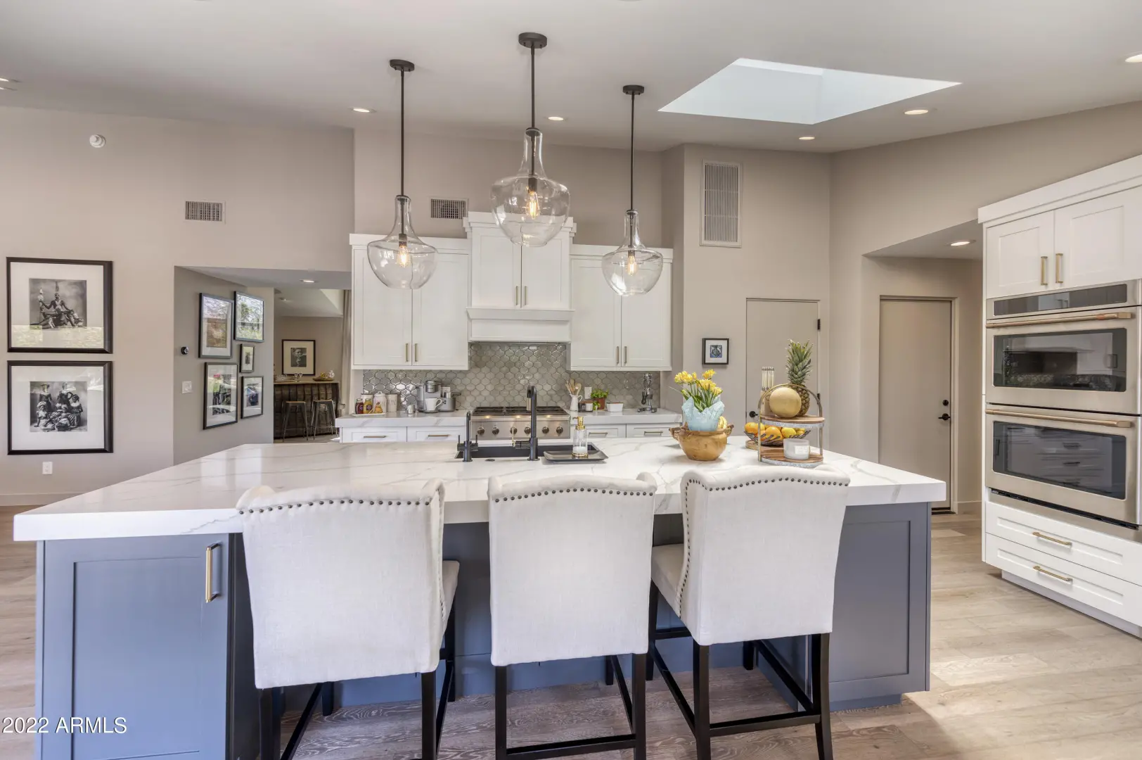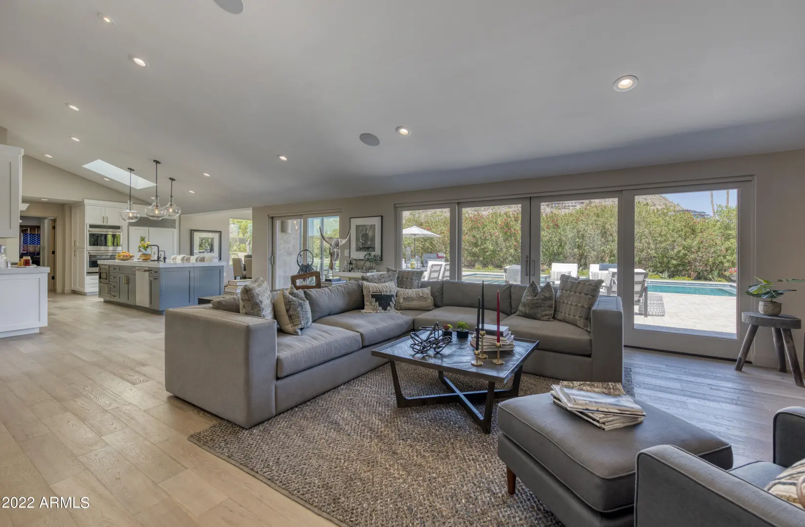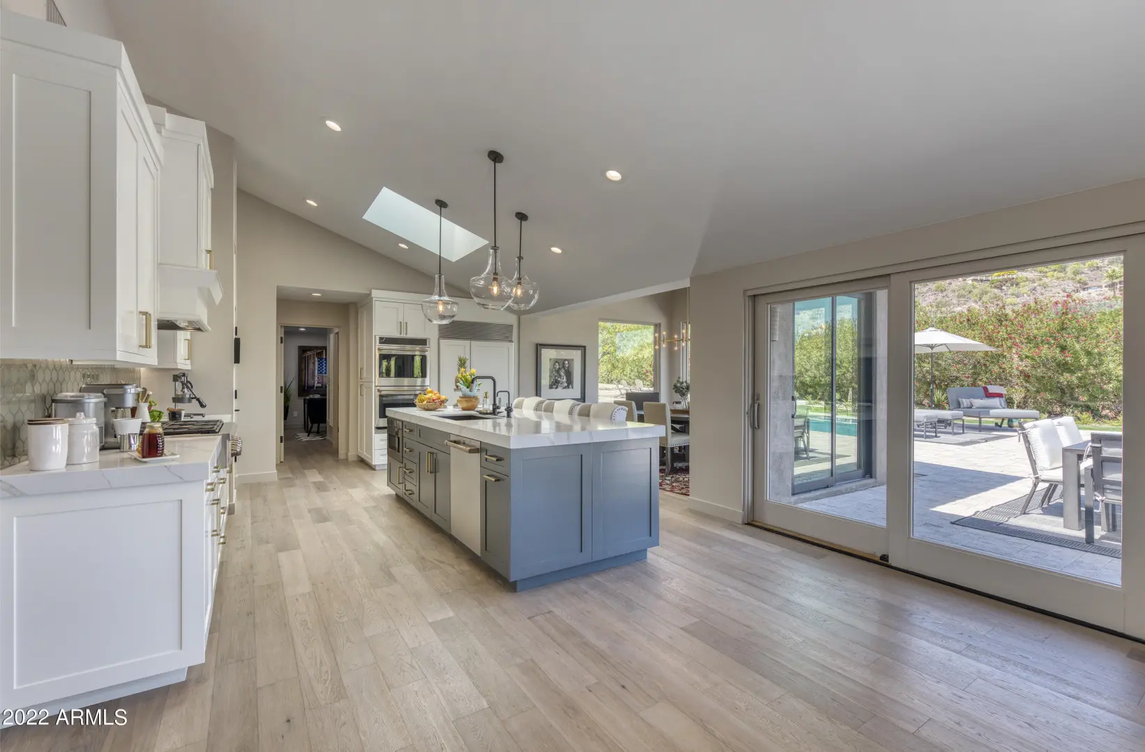 This exquisite contemporary ranch has been fully remodeled from top to bottom and inside out with impeccable style and extraordinary attention to detail. Every room is overflowing with unique finishes and great taste. It takes only one stroll through the home to realize that you've arrived somewhere truly special. The island kitchen is flawless with custom cabinetry, GE Cafe and Subzero appliances, double ovens and more than enough room to prep, serve and entertain. The family room has a stunning wood accent wall, gas fireplace and floor to ceiling picture windows overlooking the gorgeous backyard.