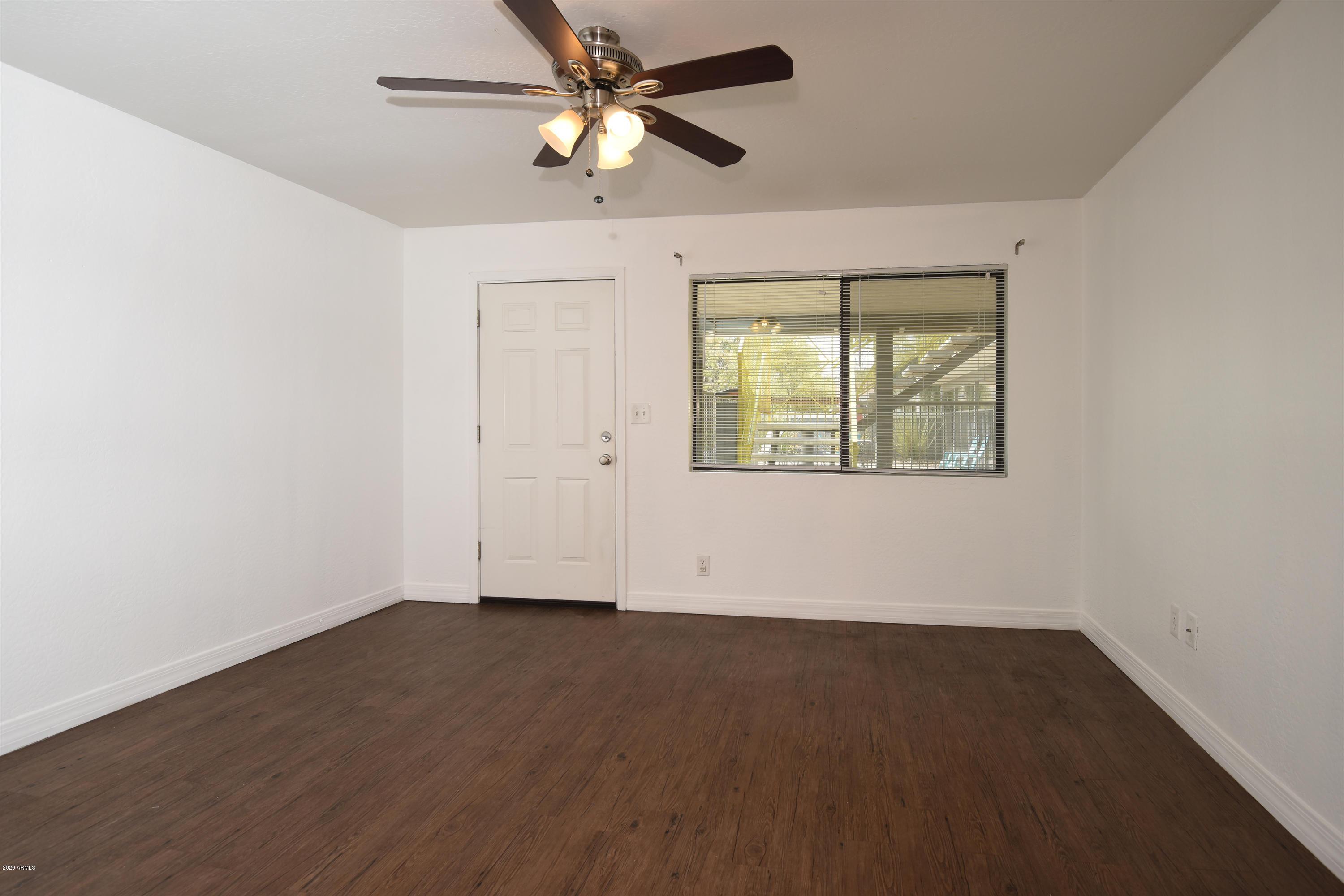 Move-in ready nicely updated two-bedroom apartment located in the Uptown Area at 5th Street and Camelback. No neighbors above this section of the building. This spacious apartment is just minutes from Uptown Plaza with great dining and shopping, the Biltmore Fashion Park and downtown Phoenix. This apartment features updated kitchen cabinets, granite counter tops, tile back splash with deco band, kitchen sink, garbage disposal, nickel satin faucets, stainless steel appliances (gas stove, refrigerator, built in microwave, dishwasher) durable vinyl plank flooring, nickel satin lighting, ceiling fans in living room and bedrooms. The bathroom has also been updated nicely. Ground floor unit next to pool. This is a small 9 unit complex. NO PETS. Laundry on Premises.