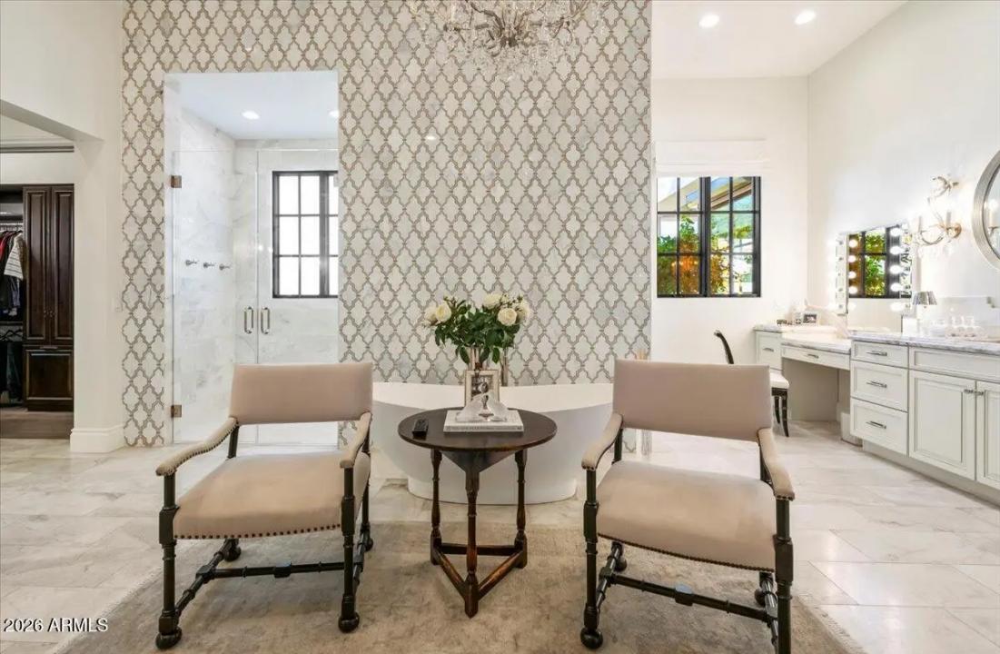 This private gated modern mediterranean inspired estate is absolutely spectacular. Custom built by Regal American, the pristine attention to detail and authentic european design elements makes it one of the most spectacular estates in all of Paradise Valley. The sleek architecture and chic design combine elegance and comfort, while incorporating contemporary elements and maintaining a sense of luxury and sophistication. Meticulous attention to detail elevates the overall quality of each room including the island kitchen that features exquisite custom cabinetry and a wolf/subzero appliance package. The stunning great room is the center of the home and has a floor to ceiling fireplace providing an excellent backdrop. The bar/game room has a full wet bar, plenty of room for a pool table,
