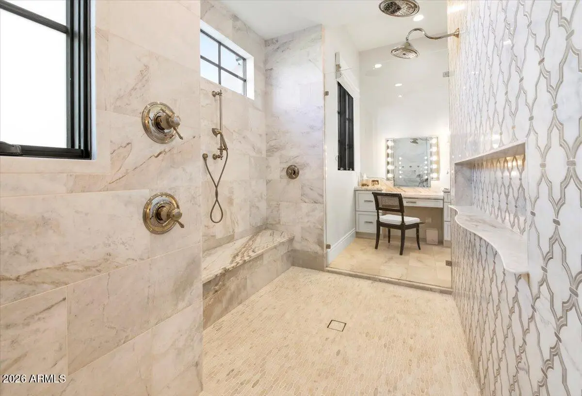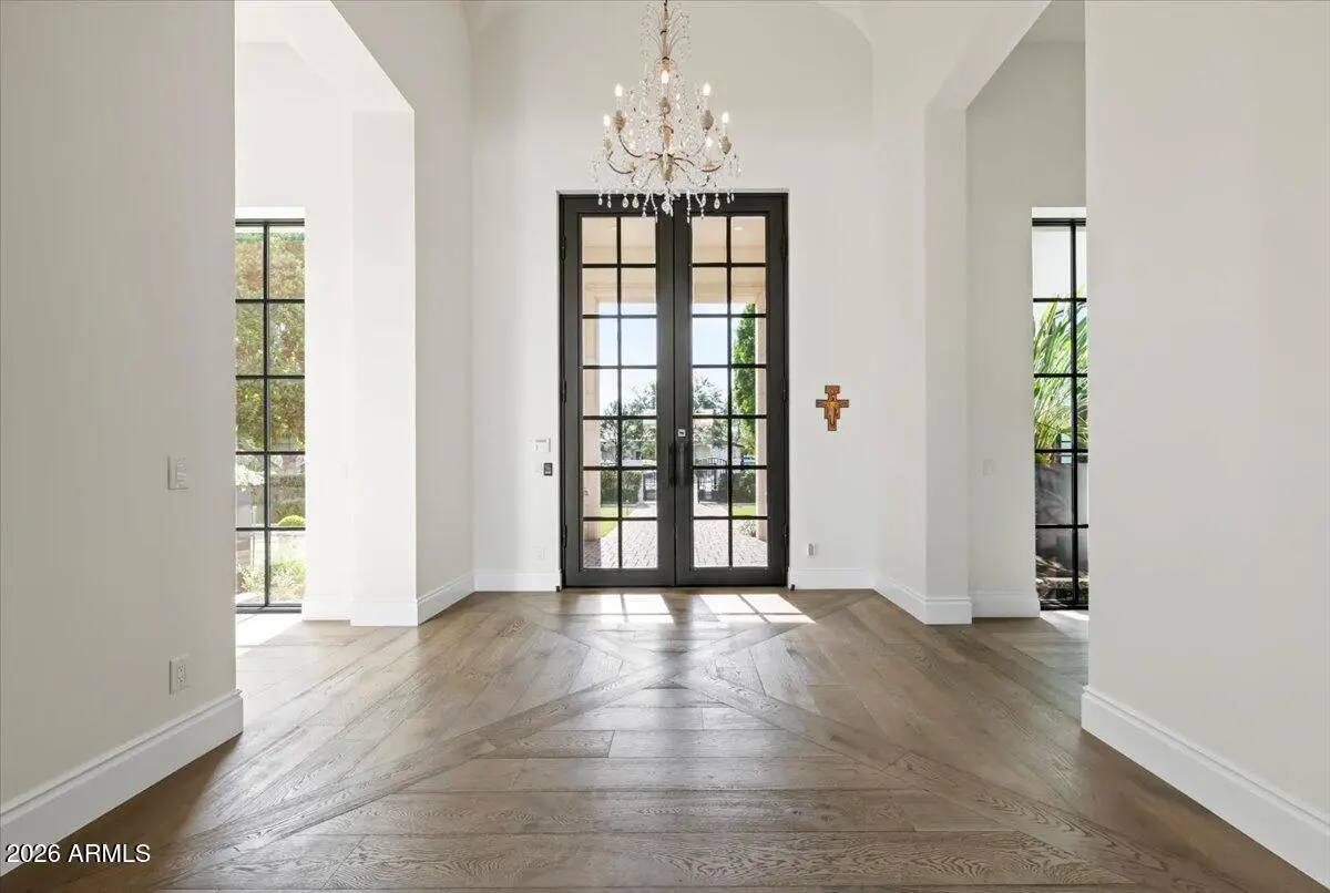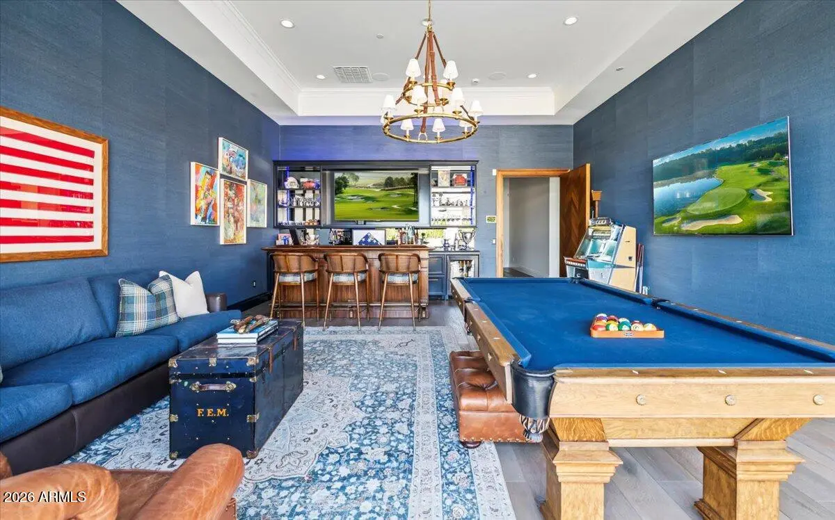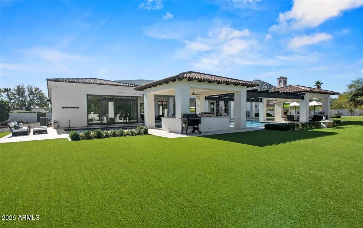 This private gated modern mediterranean inspired estate is absolutely spectacular. Custom built by Regal American, the pristine attention to detail and authentic european design elements makes it one of the most spectacular estates in all of Paradise Valley. The sleek architecture and chic design combine elegance and comfort, while incorporating contemporary elements and maintaining a sense of luxury and sophistication. Meticulous attention to detail elevates the overall quality of each room including the island kitchen that features exquisite custom cabinetry and a wolf/subzero appliance package. The stunning great room is the center of the home and has a floor to ceiling fireplace providing an excellent backdrop. The bar/game room has a full wet bar, plenty of room for a pool table,