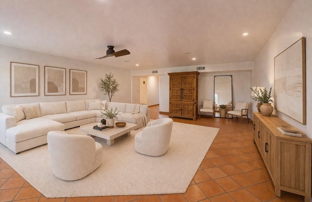 Rare Scottsdale rental on an expansive 0.79-acre lot w/pool, hot tub, RV driveway/gate/parking & no HOA! Located in a highly desirable area near restaurants, shopping & LaCamarilla tennis & gym, this property offers an uncommon amount of space, privacy & flexibility. Ideal for someone who wants more than a standard rental. The home features natural clay tile flooring T/O, multiple living areas incl formal living & dining rooms, a large open family room w/a wood-burning fireplace & expansive windows overlooking the backyard. Recent updates incl refreshed bathrooms w/new counters, sinks, mirrors, fixtures, updated lighting/ceiling fans & modernized hardware T/O creating a clean, move in ready feel while maintaining the homes character. The backyard is a standout, featuring a private