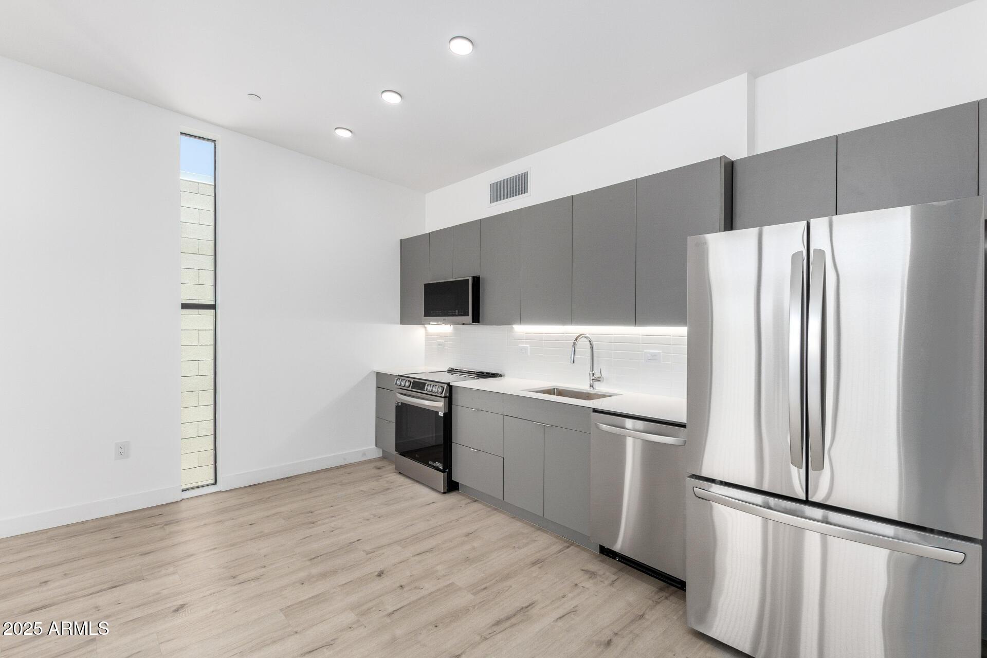 Discover elevated urban living at Willetta 15?an architecturally designed boutique community in downtown Phoenix. Each of the 15 modern residences offers high-end finishes, natural light, and smart functionality. Enjoy a sleek kitchen with dark gray flat-panel cabinets, quartz countertops, stainless steel appliances, and LED lighting. The open living area includes ceiling fans and modern lighting. Bathrooms feature slate tile, oversized vanities, and walk-in showers. Each unit has a walk-in closet, in-unit washer/dryer, and a private floating balcony. Extras: video doorbell, keyless entry, intercom gate, EV charging, and lush landscaping. Parking options: $75 covered / $40 uncovered / street parking available. Utilities: Resident pays electric to APS. Water/sewer/trash billed back