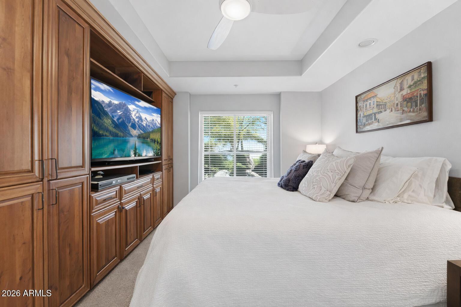 Beautiful fully furnished Golf Casita nestled privately at the back of the community, adjacent to Wildfire Golf Club. This is an incredible opportunity for resort-style living! This beautiful townhome features 3 bedrooms plus a loft and is conveniently located near Desert Ridge and across from High Street. The open-concept layout boasts custom kitchen cabinetry, high ceilings, a cozy gas fireplace, and much more! The spacious primary bedroom is conveniently located on the main level, along with the laundry room and patio. Upstairs, you'll find two generously sized bedrooms sharing a Jack & Jill bathroom, as well as a large loft complete with its own fireplace. Enjoy the north-facing balcony that offers stunning views of the golf course. The property includes 1 car garage.