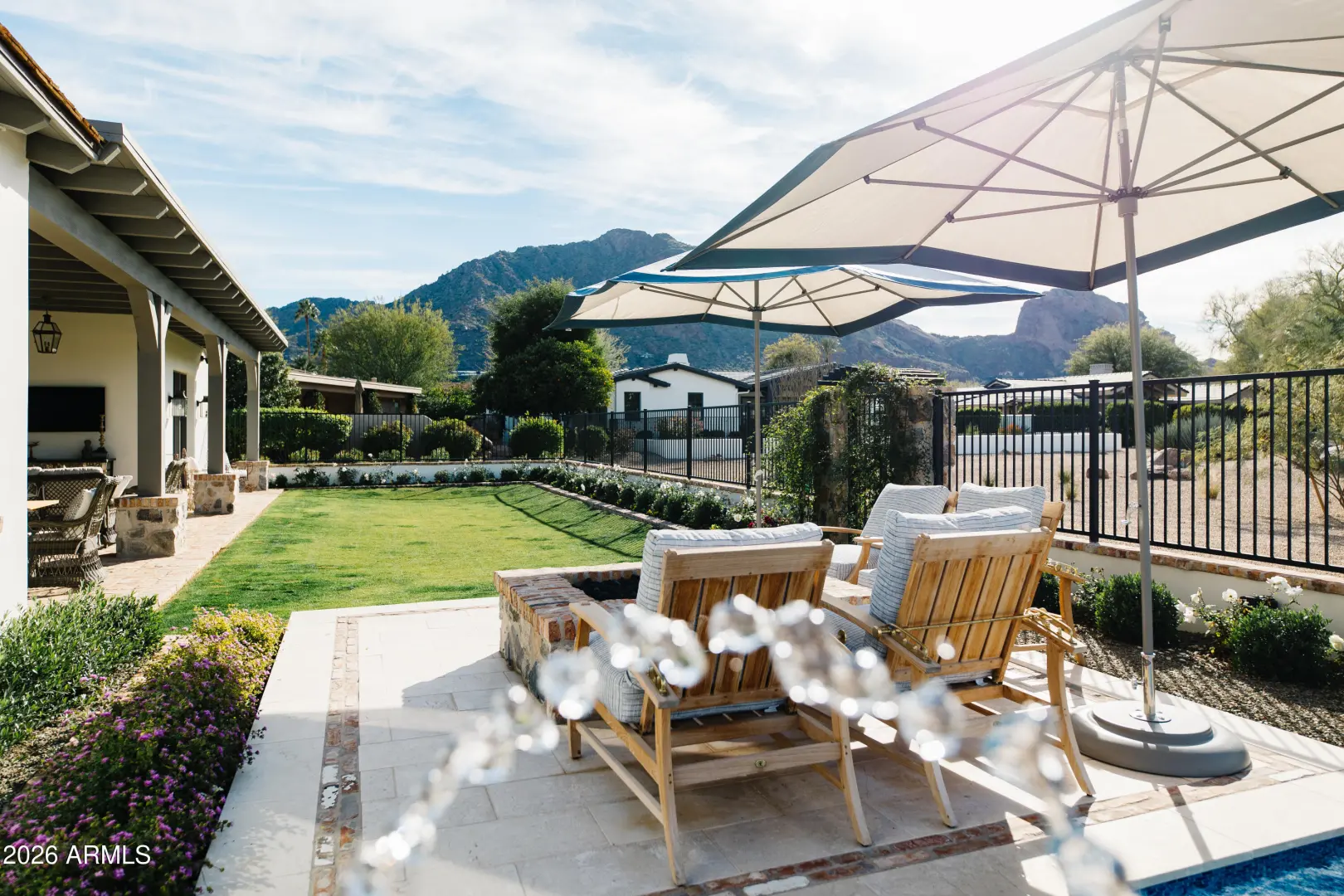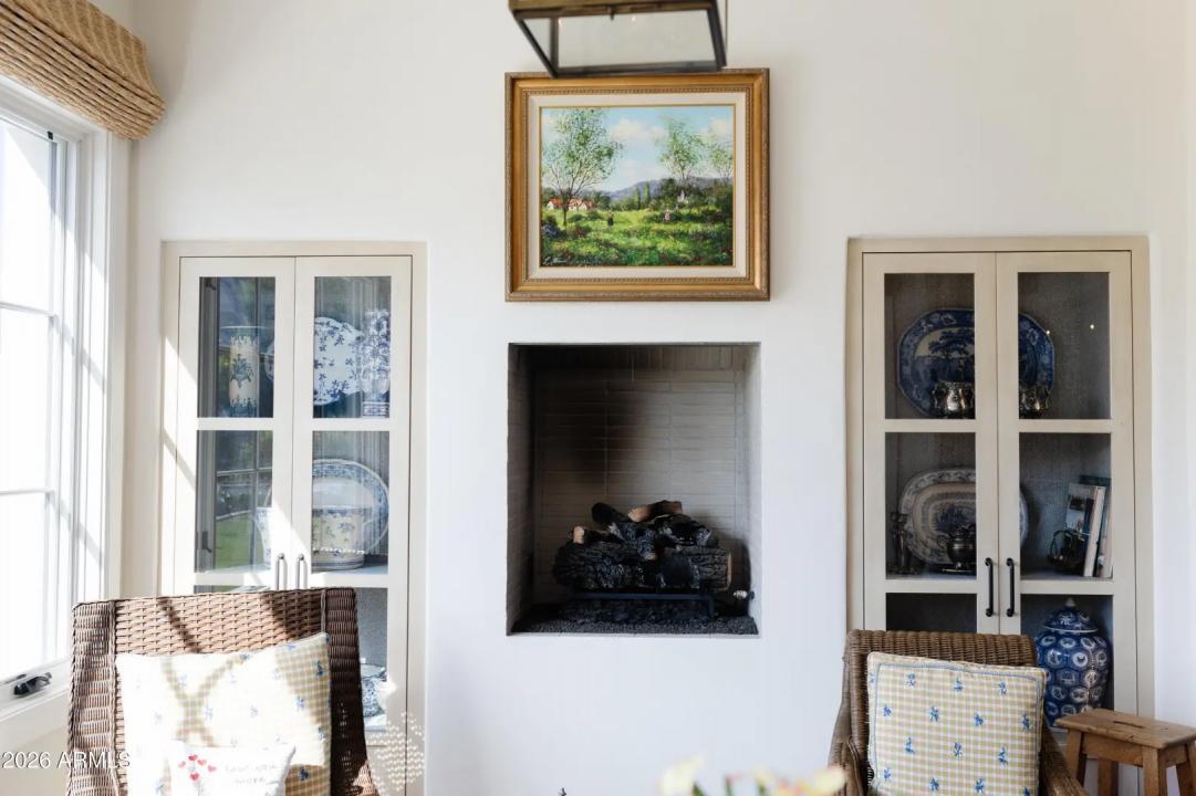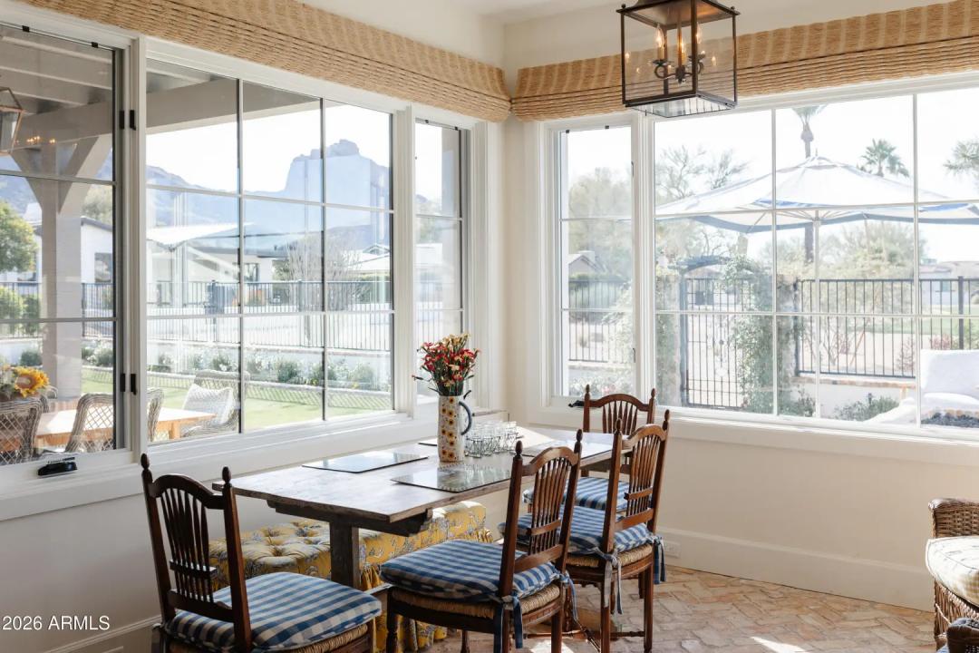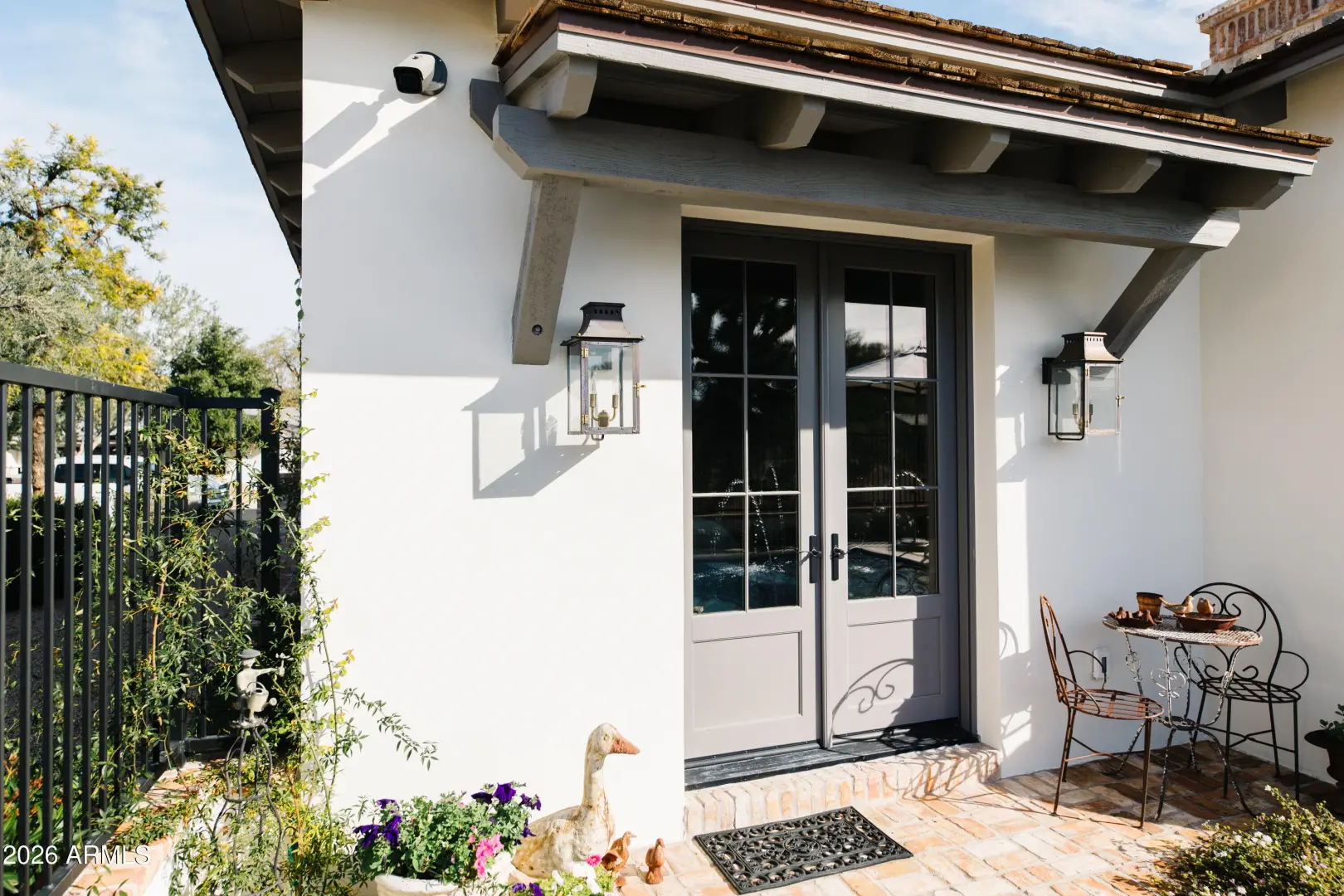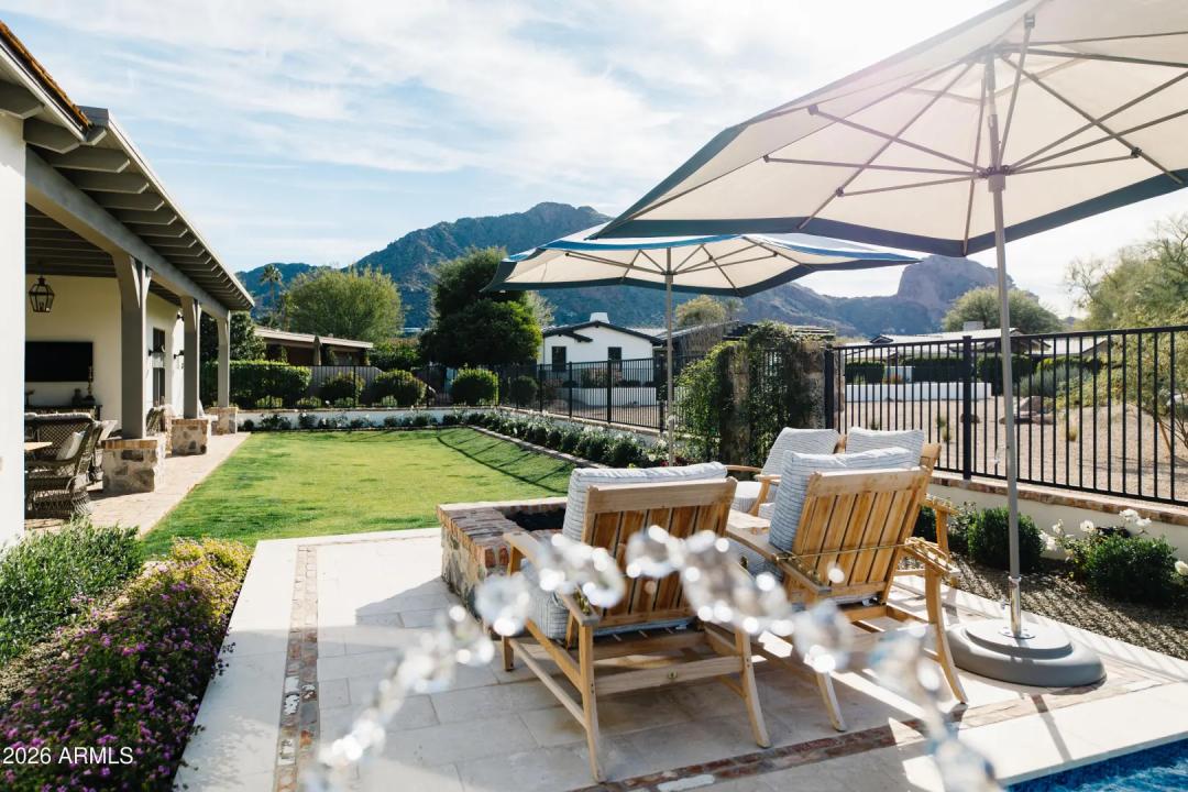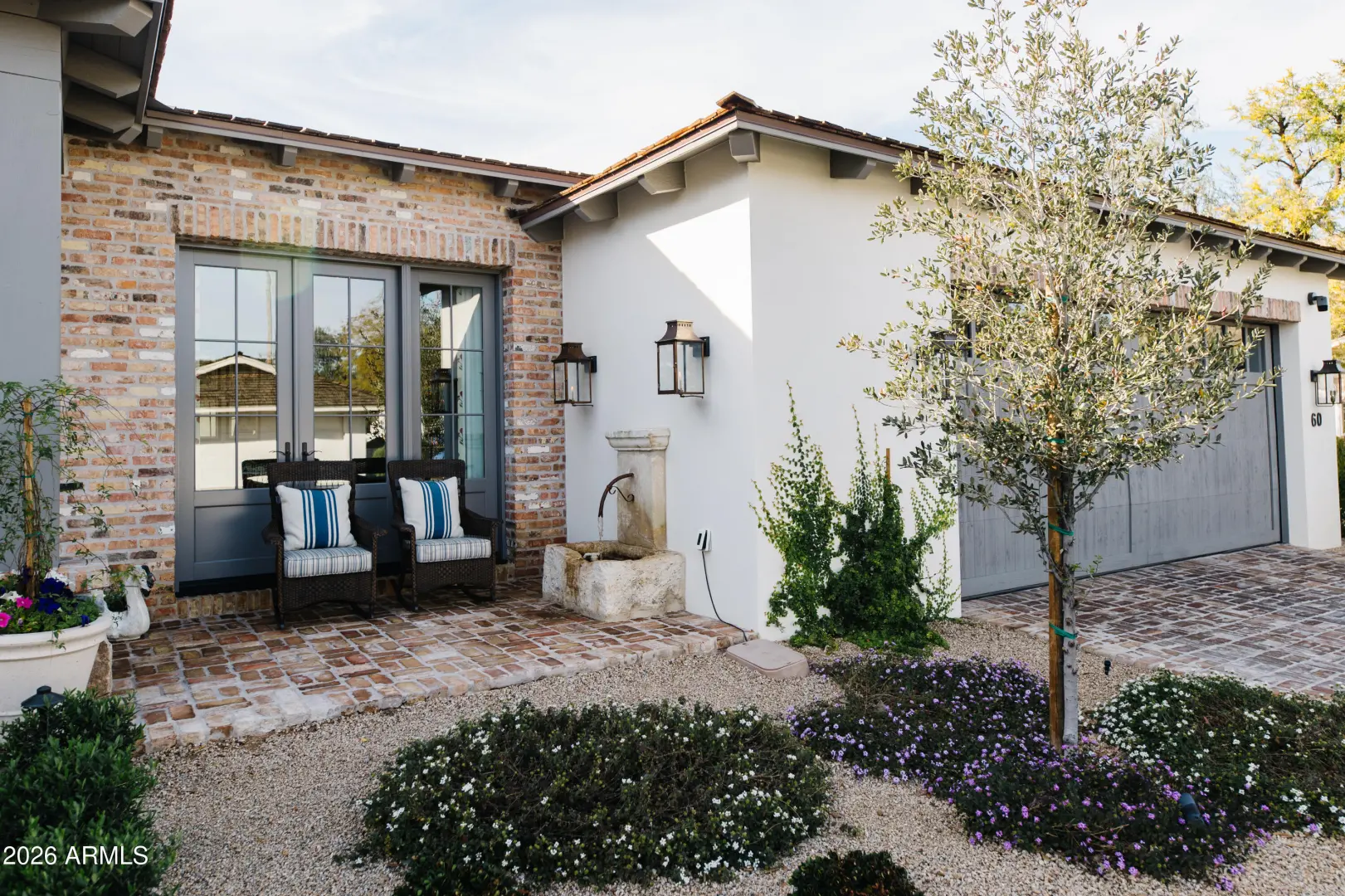 Welcome to a one-of-a-kind jewel box nestled in the gated community of Mountain Shadows East. Featuring Reclaimed beams from Quebec, Gas lanterns from New Orleans ,Chicago brick and custom cabinetry by Burdette . The layout is thoughtfully designed with a master suite, guest suite, third bedroom used as a dual office and a music room. Butlers pantry and coffee bar off open concept kitchen , a separate eating area with niche fireplace and stunning Camelback mountain views are just two examples of living well. Outside the charm continues with a welcoming front porch ,Dutch door and fountain . The deep covered back patio looking onto the pool and fire pit and open area is lush. A custom built masterpiece ,this home is a testament to craftsmanship, history and the art of fine living