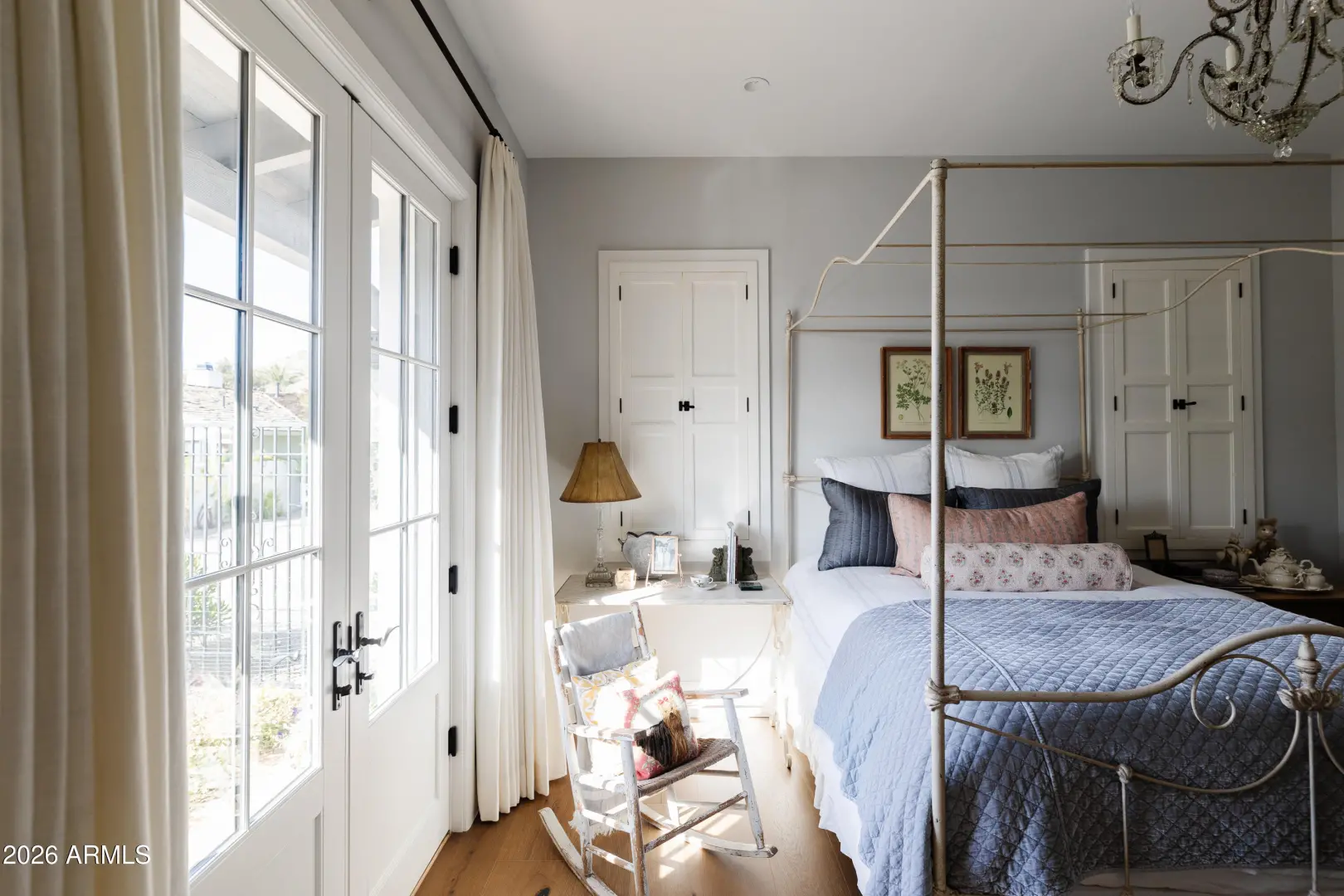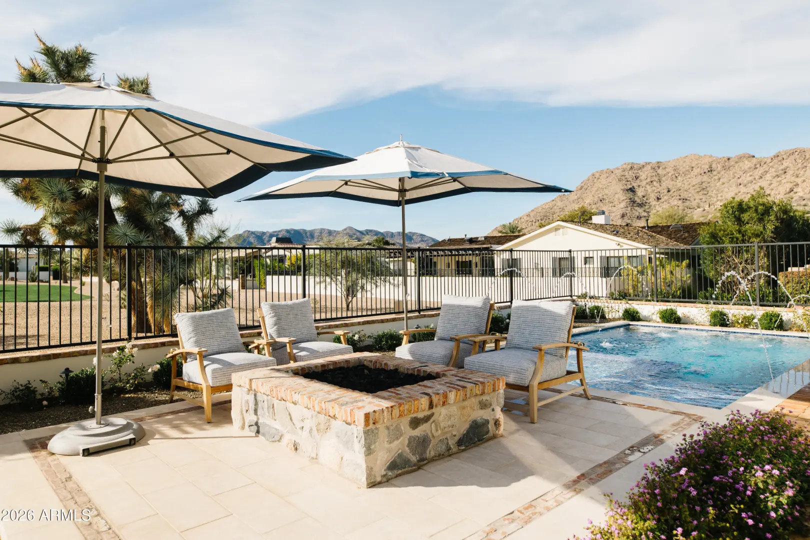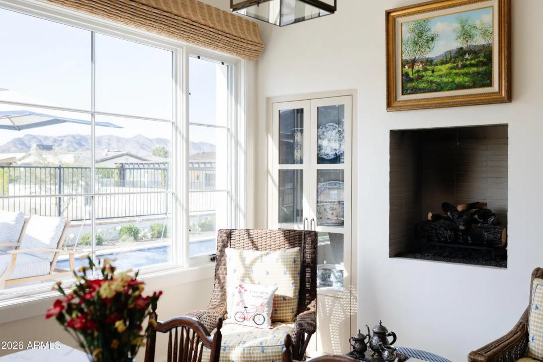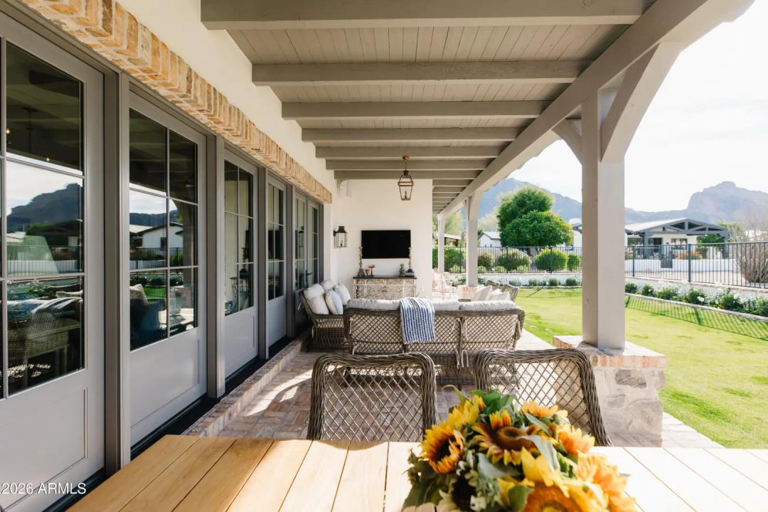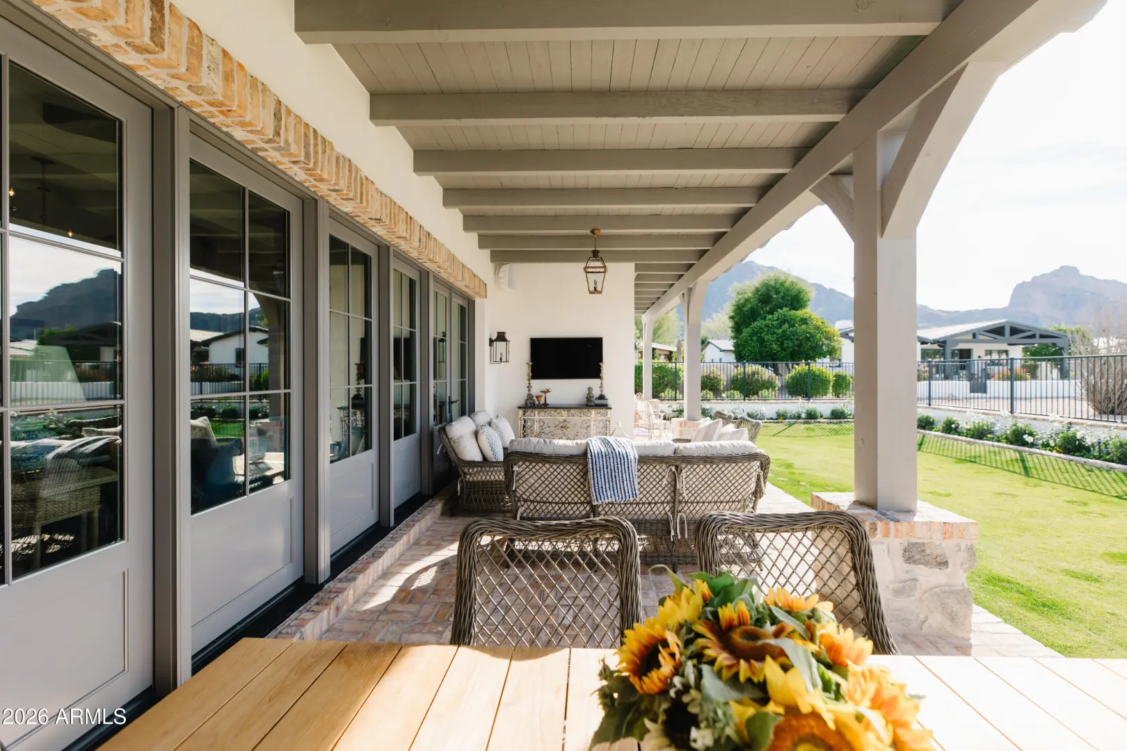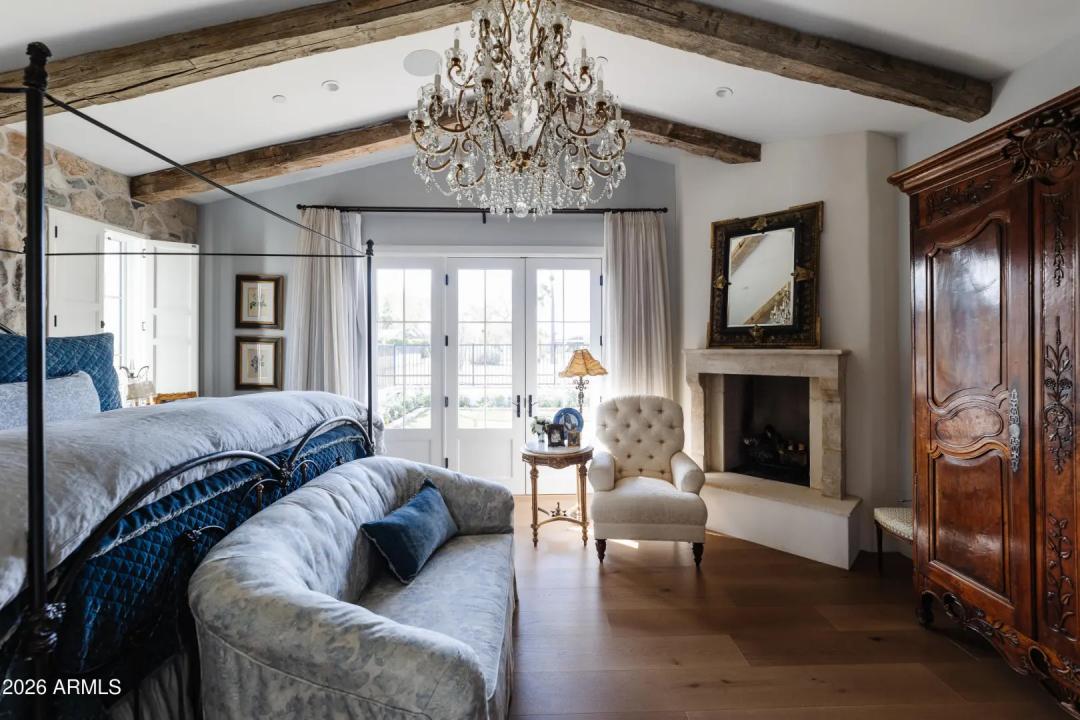 Welcome to a one-of-a-kind jewel box nestled in the gated community of Mountain Shadows East. Featuring Reclaimed beams from Quebec, Gas lanterns from New Orleans ,Chicago brick and custom cabinetry by Burdette . The layout is thoughtfully designed with a master suite, guest suite, third bedroom used as a dual office and a music room. Butlers pantry and coffee bar off open concept kitchen , a separate eating area with niche fireplace and stunning Camelback mountain views are just two examples of living well. Outside the charm continues with a welcoming front porch ,Dutch door and fountain . The deep covered back patio looking onto the pool and fire pit and open area is lush. A custom built masterpiece ,this home is a testament to craftsmanship, history and the art of fine living